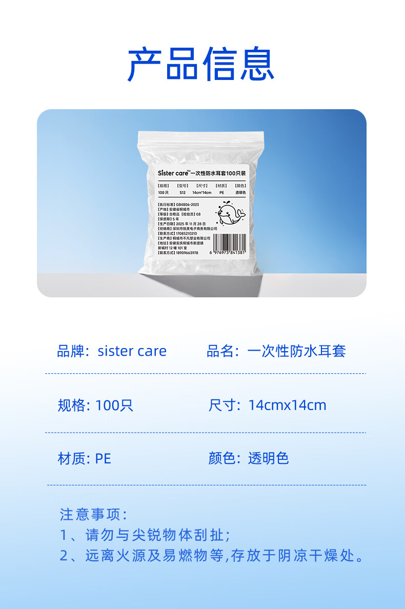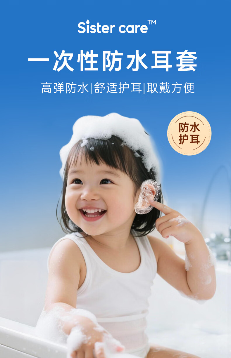 sister care婴儿洗澡防水耳套宝宝新生儿童防水耳贴护耳罩洗头防水神器100只