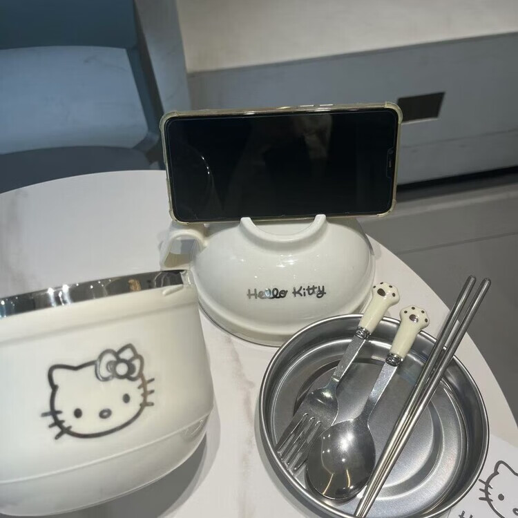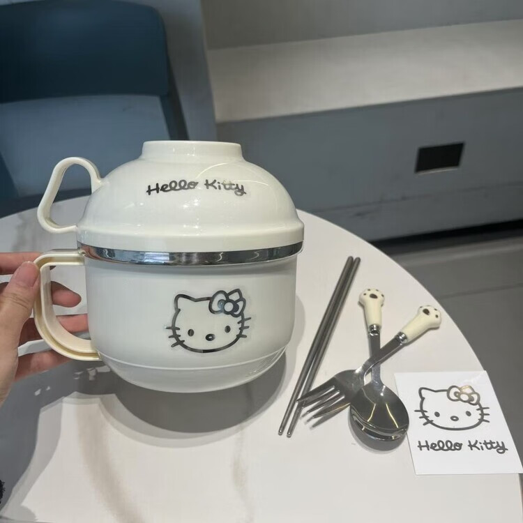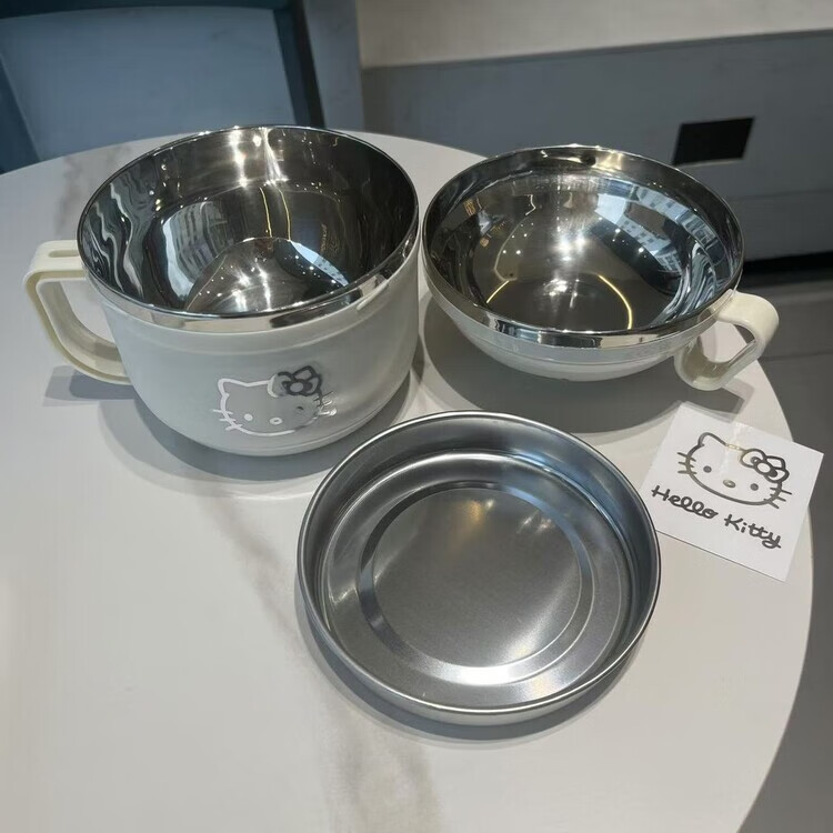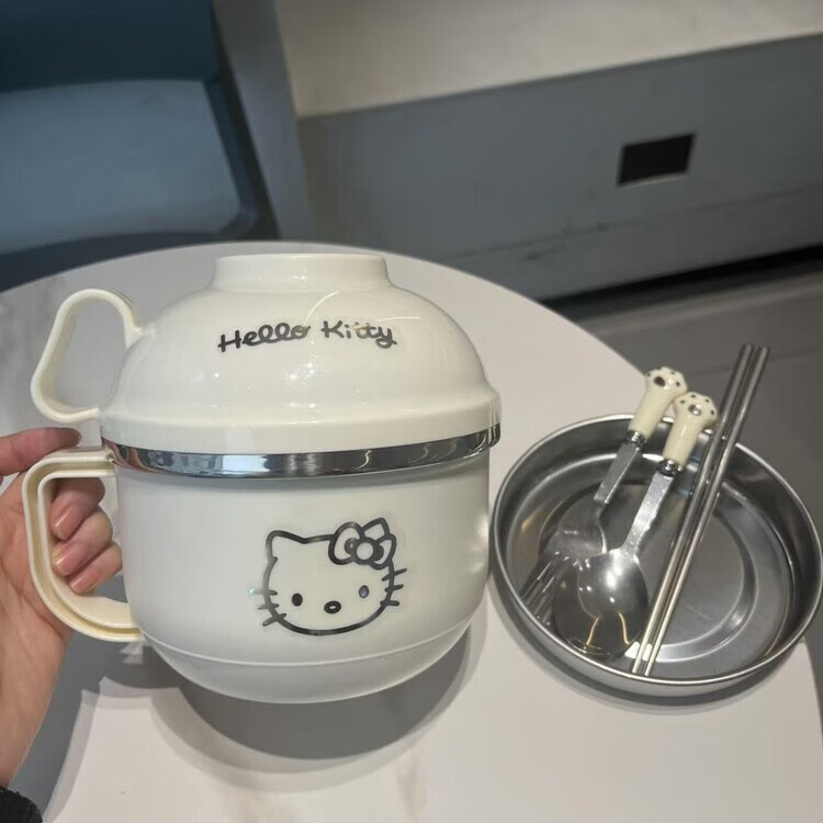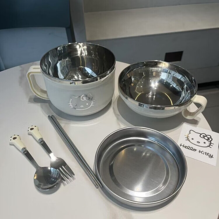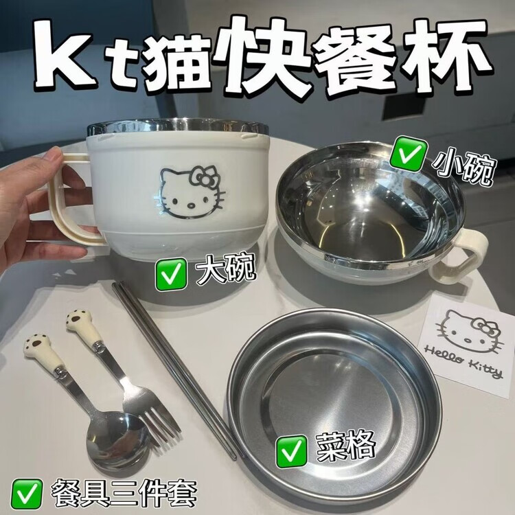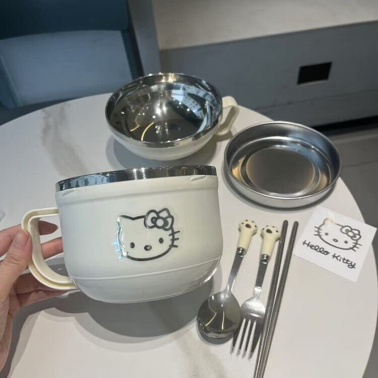 花沐禧快餐杯饭盒不锈钢碗筷一套单人耐高温便捷可爱学生用吃饭碗带餐具 201不锈钢材质 碗身+碗盖+送贴纸