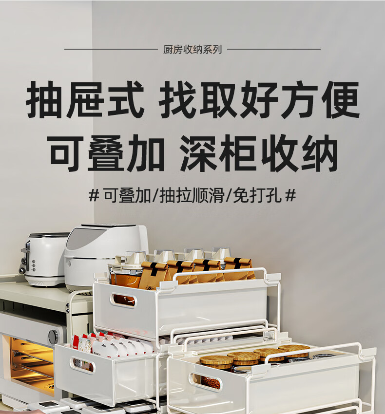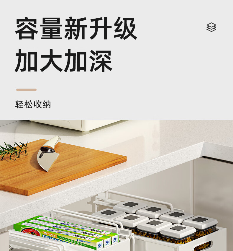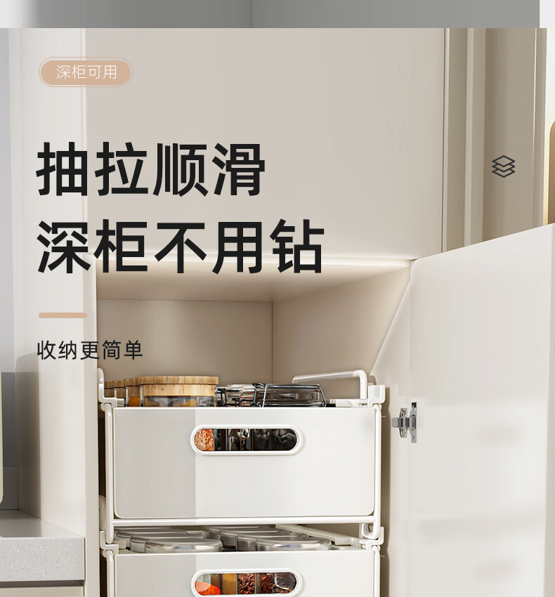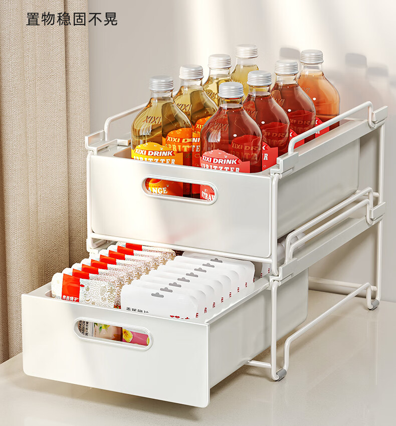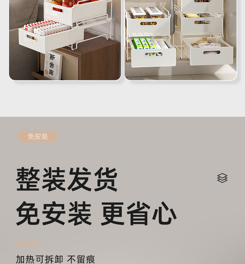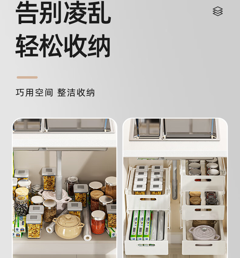 吱凡日本洗手台下水槽置物架卫生间浴室洗漱整理收纳架神器厨房免打孔 【加深柜-加大号】免安装【三层抽拉】