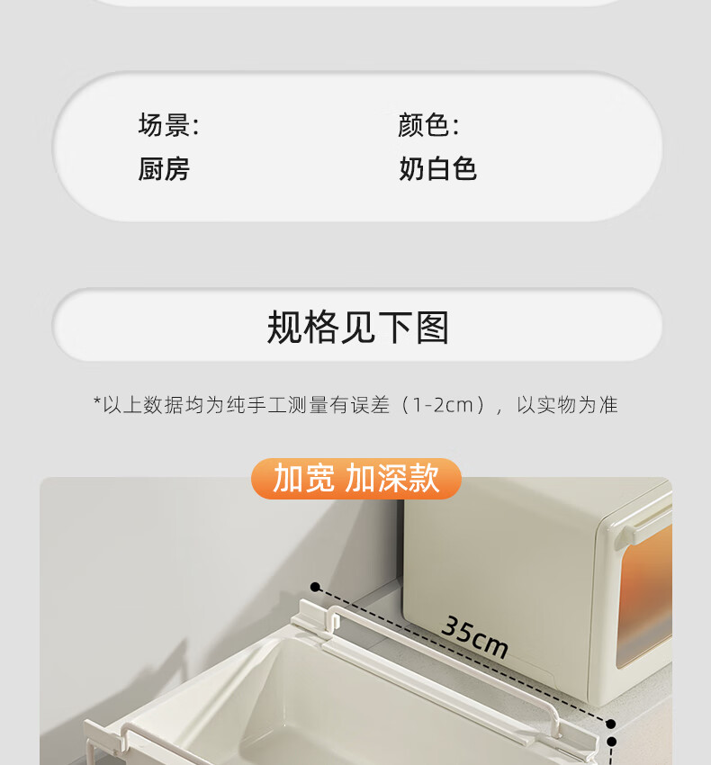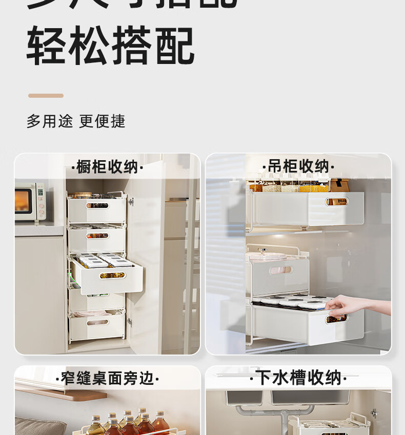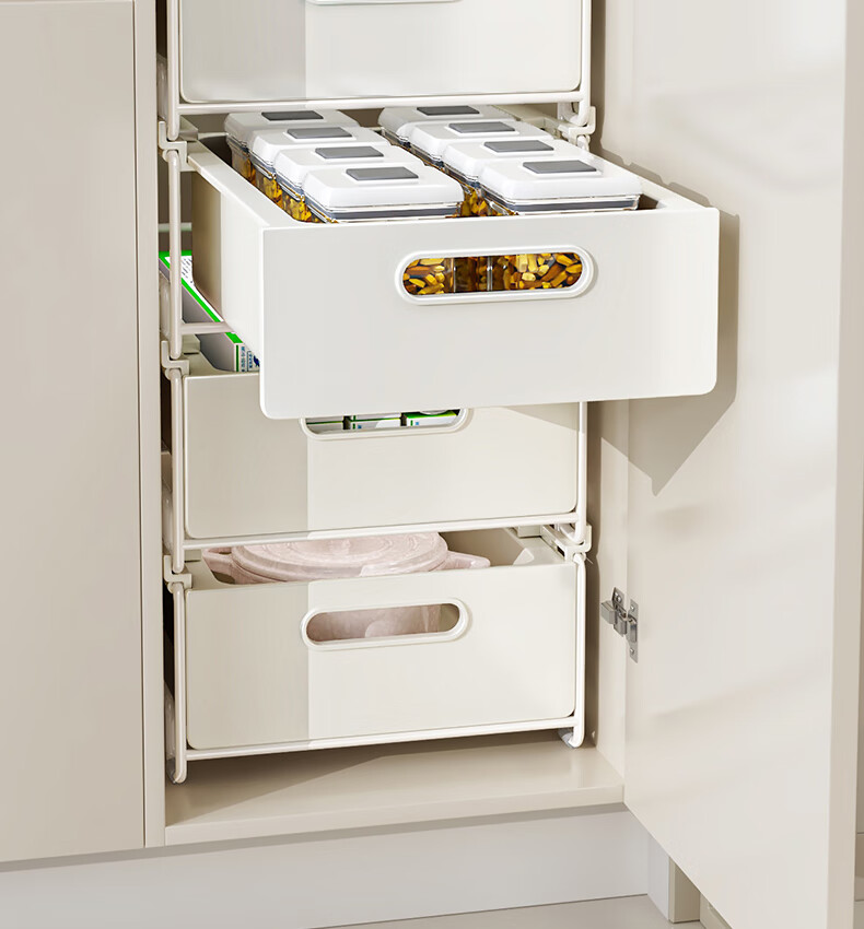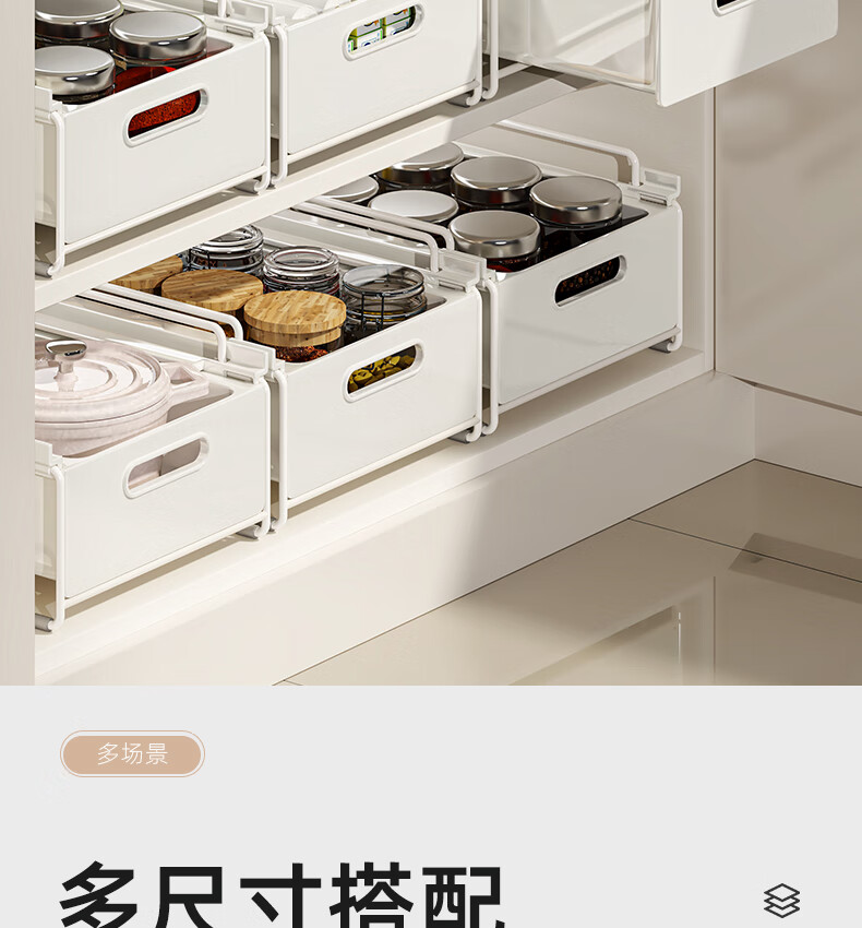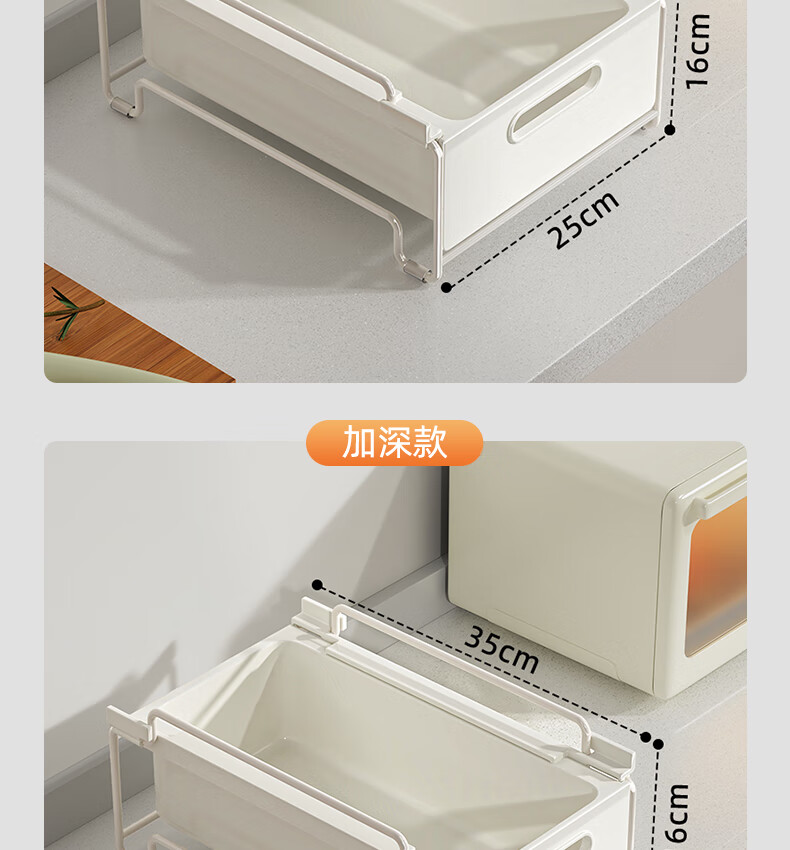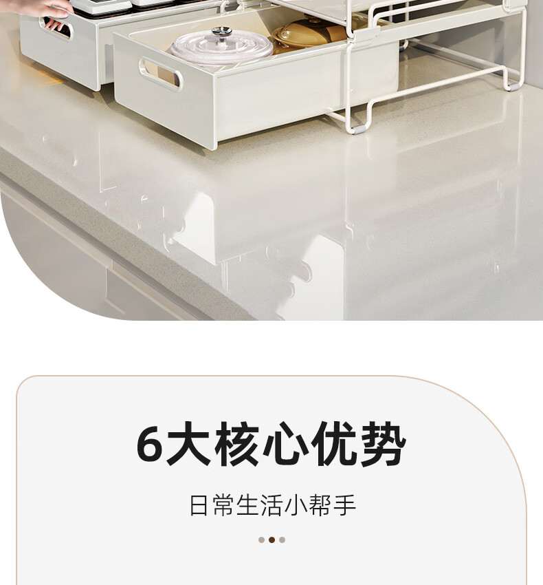 吱凡日本洗手台下水槽置物架卫生间浴室洗漱整理收纳架神器厨房免打孔 【加深柜-加大号】免安装【三层抽拉】