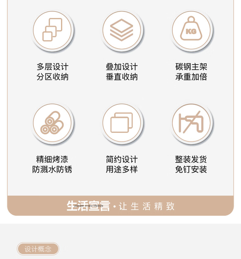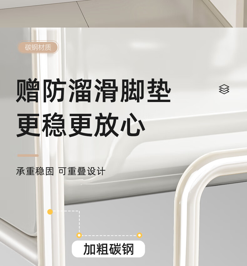 衣炫小推车置物架家用零食落地文件客厅收纳书包移动厨房果蔬菜篮架子 【升级款-米色】2层平顶(无轮) 稳定不晃