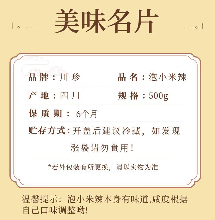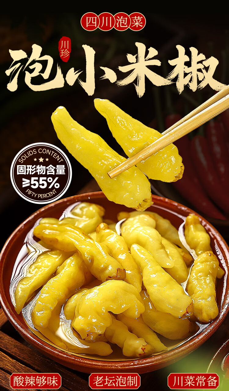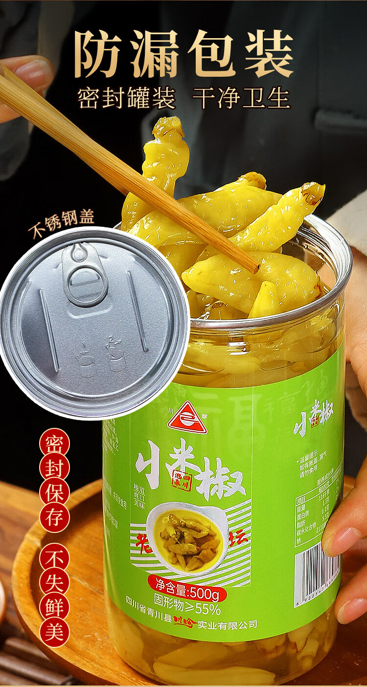 川珍 泡小米辣500g 泡野山椒小米辣椒泡椒下饭炒菜泡风爪调料泡菜
