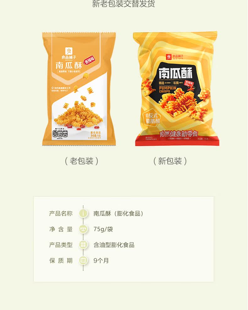 良品铺子 南瓜酥网红90后怀旧小零食休闲零食膨化小吃75g