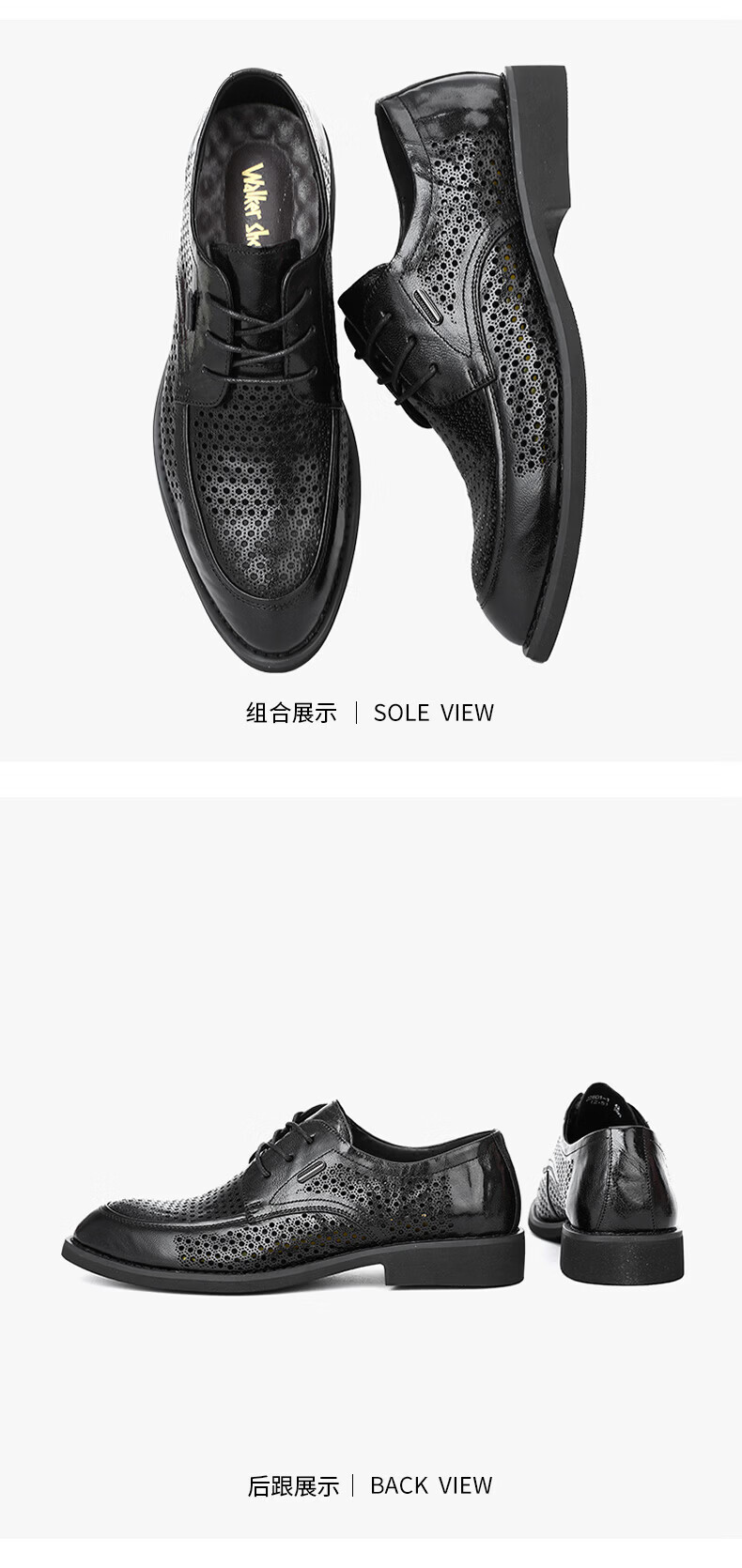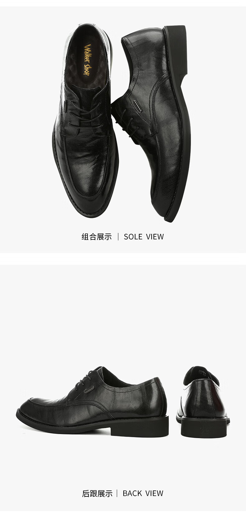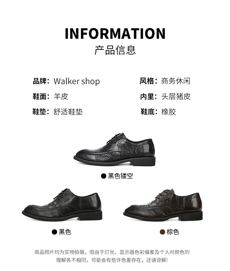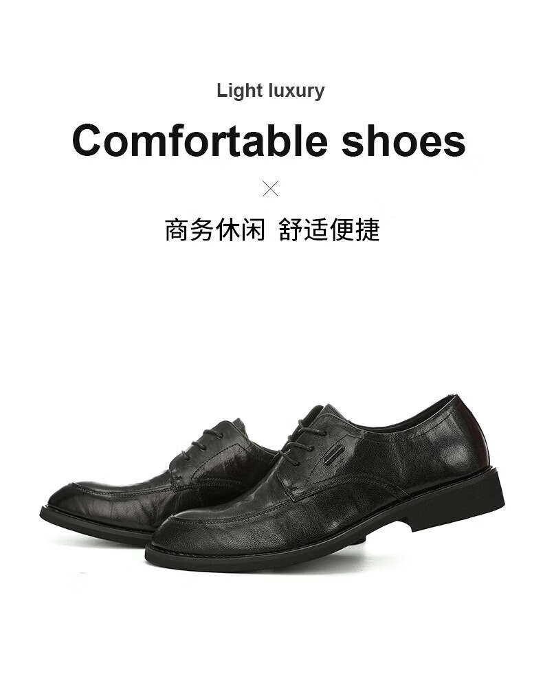 Walker Shop男士高端皮鞋男款头层软羊皮透气软底男士皮鞋内增高商务正装男鞋 高档黑色【品牌男鞋 礼盒包装】 40