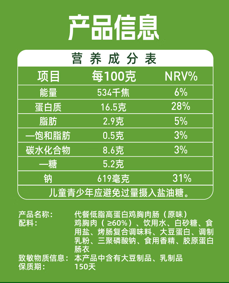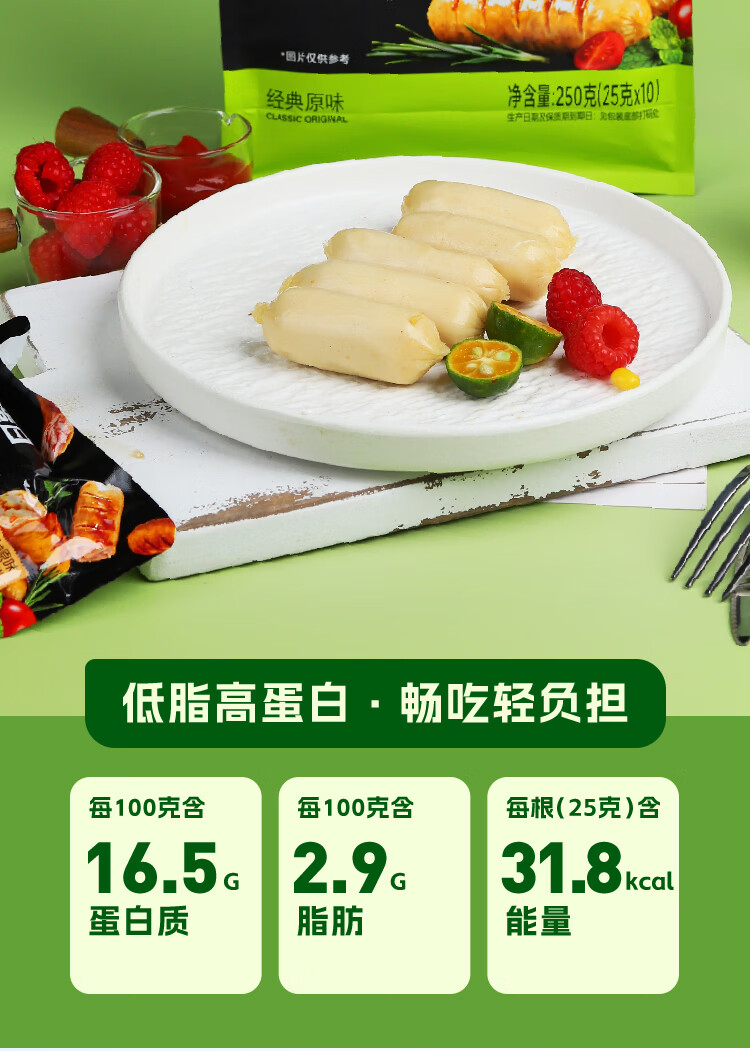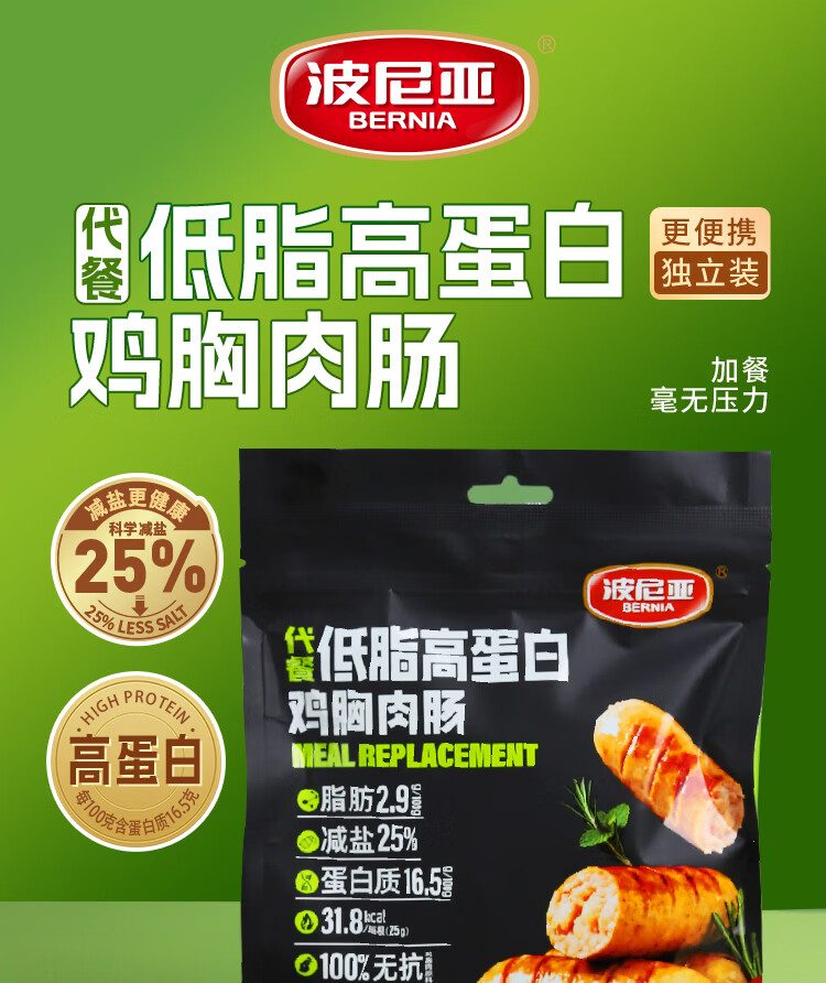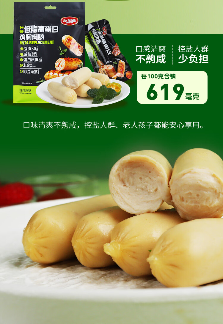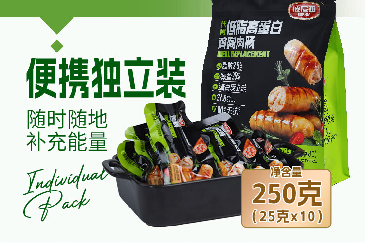 波尼亚(BERNIA)低脂高蛋白鸡胸肉肠250g 原味即食 健身轻食代餐休闲零食火腿肠 代餐低脂高蛋白鸡胸肉肠(原味)*20根