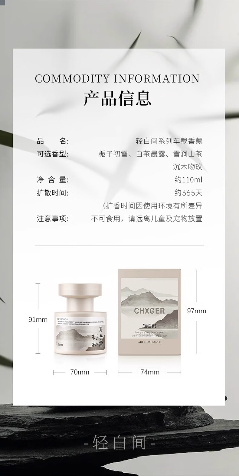 锐麦凯高山白茶车载香薰2025新款持久留香男女高级感汽车内香水摆件正品 清新白茶 110ml 1瓶
