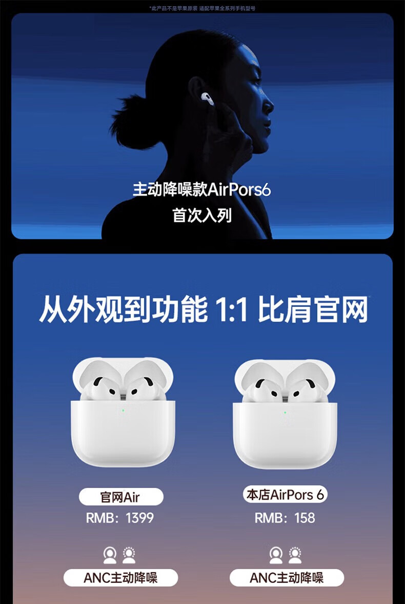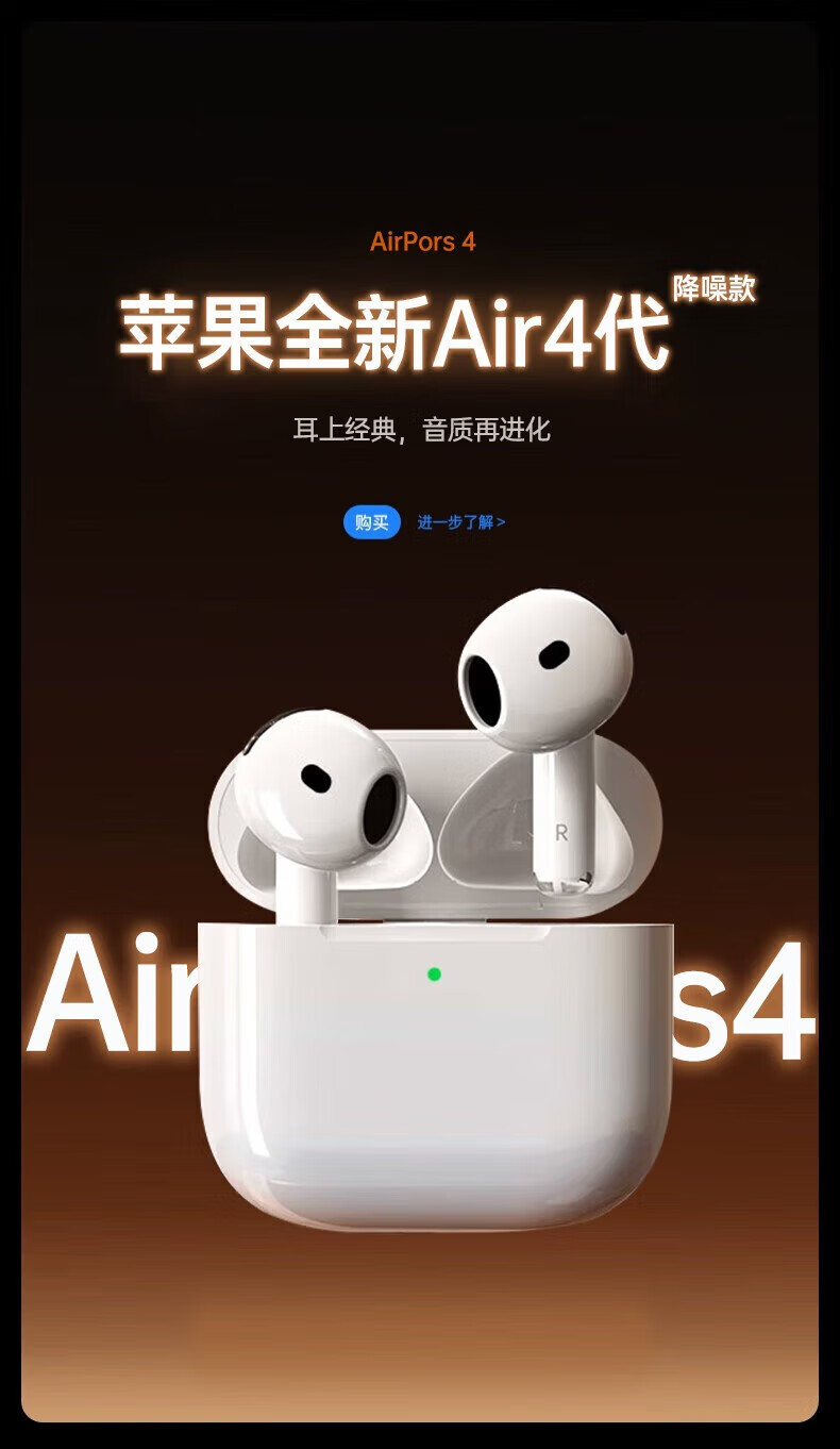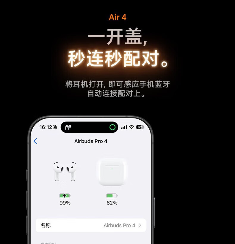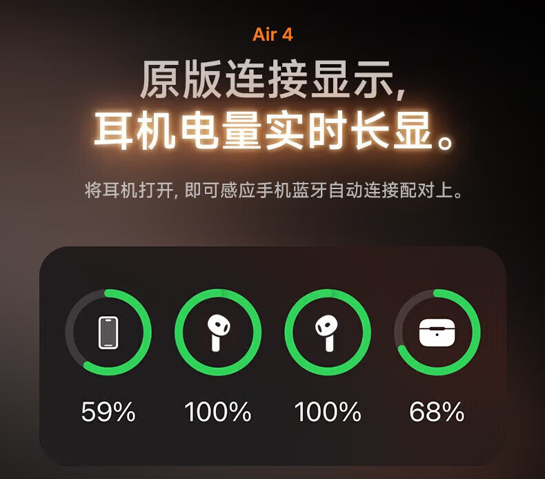 华强北顶配【降噪Air4代】适配苹果蓝牙耳机ANC主动降噪无线air4 16/15/14 【主动降噪版】 原版主动降噪+空间音頻+三真电量