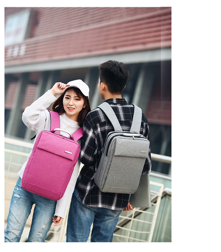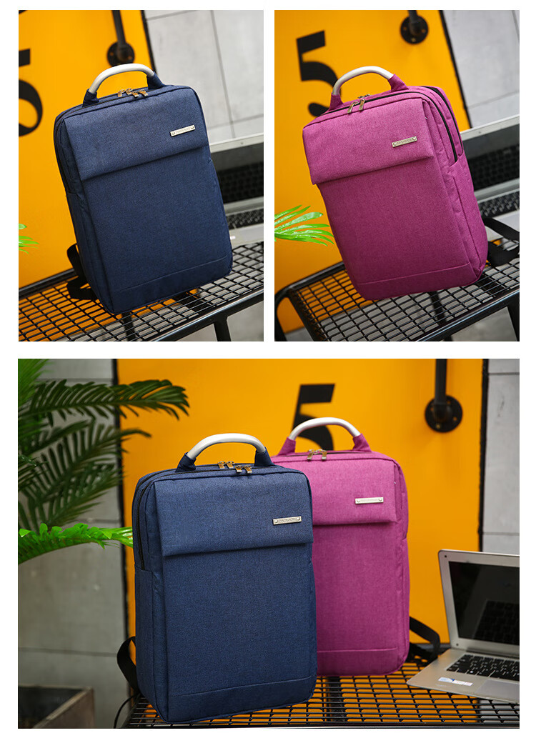 【精选现发】双肩包背包男电脑包商务简约15.6寸礼品背包男女书包 竖款蓝色 15寸