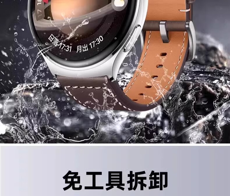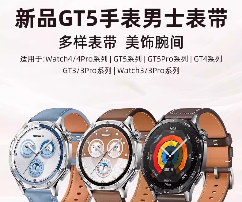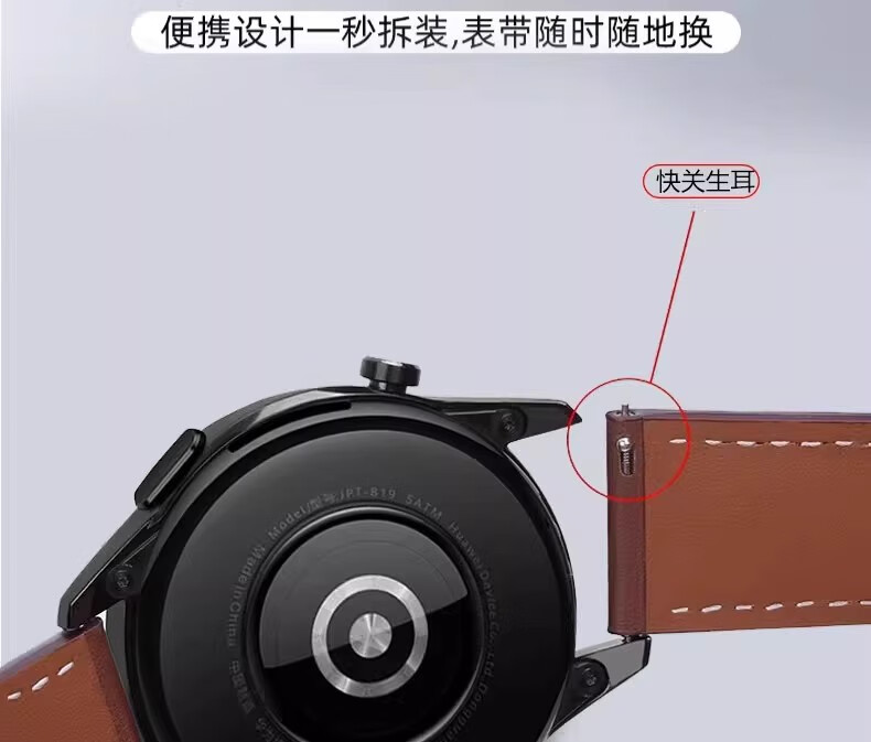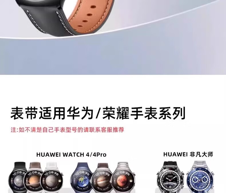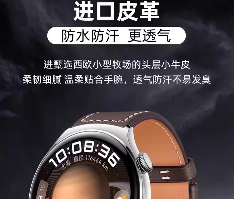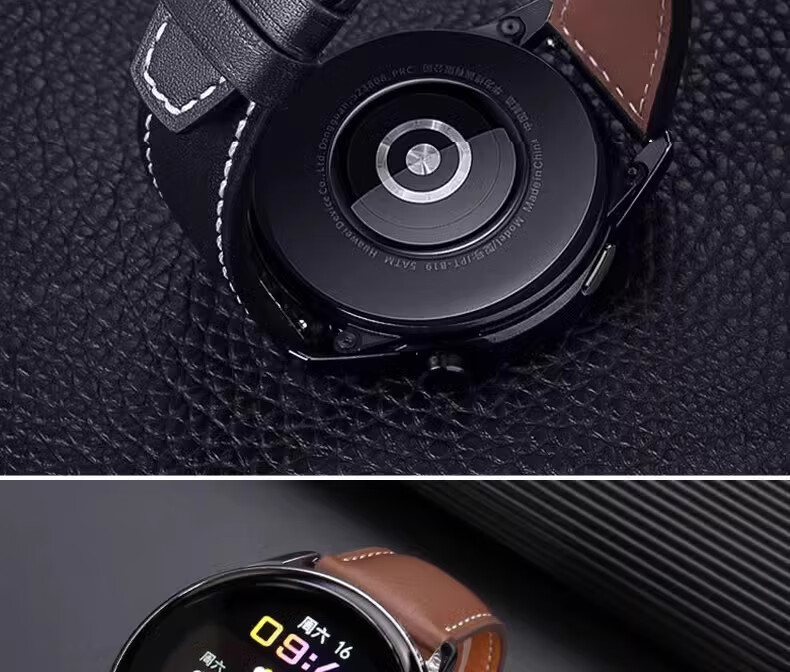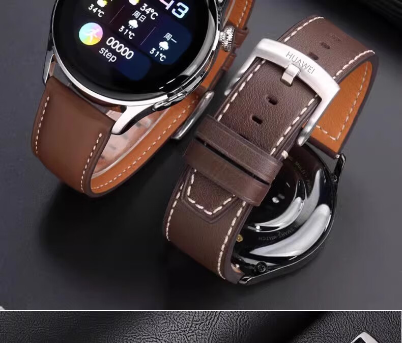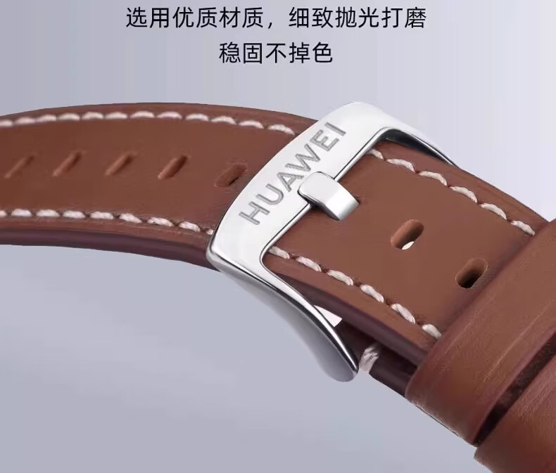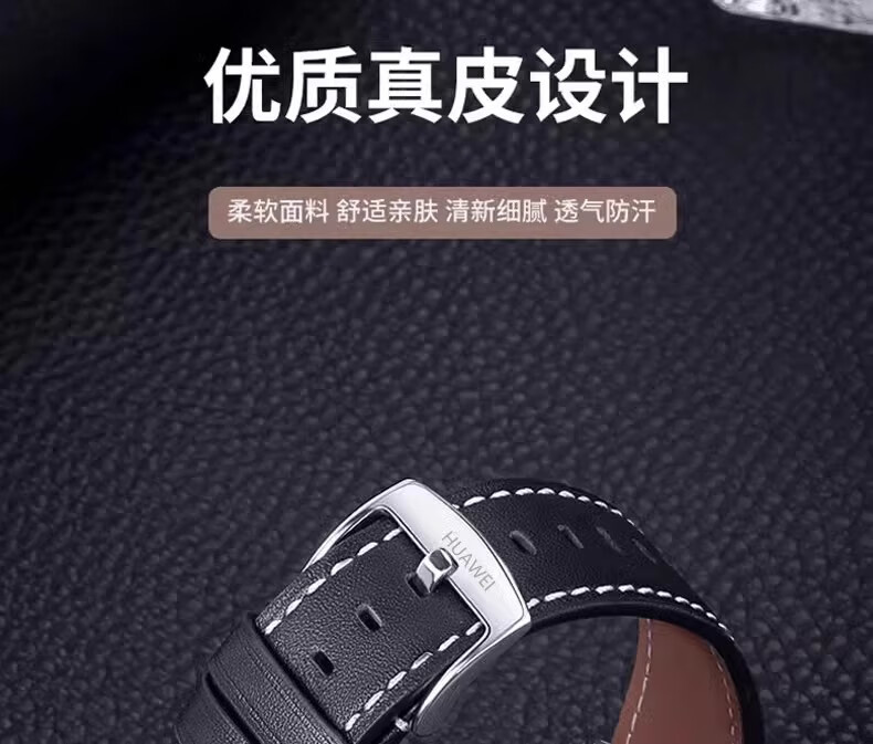 华为GT6/GT5系列原装款真皮手表带watch4/GT4/3牛皮表链男士皮带 原装通用黑色+银扣 watch4pro/3pro【22mm】