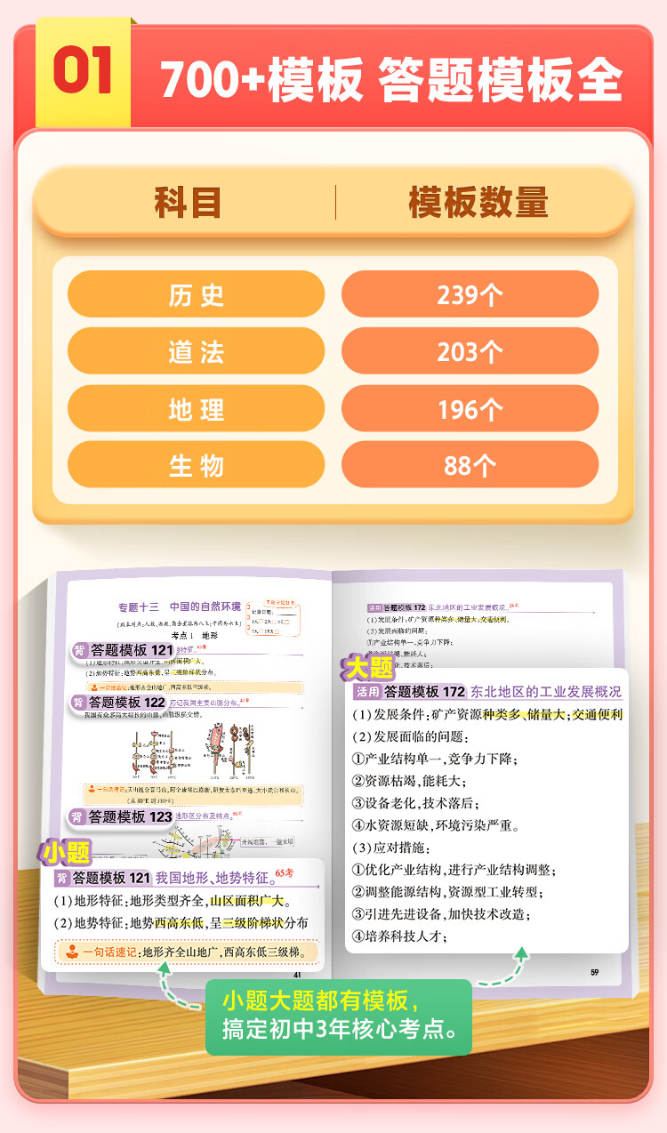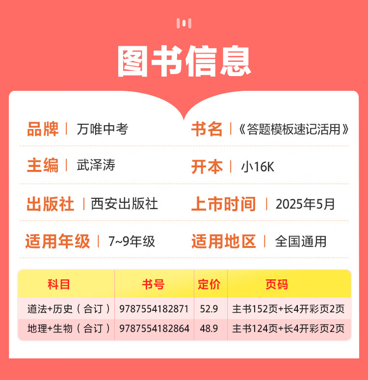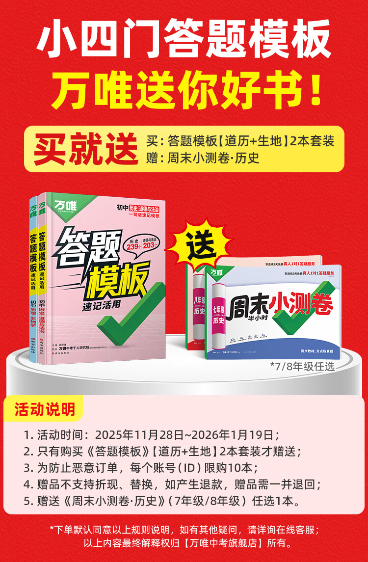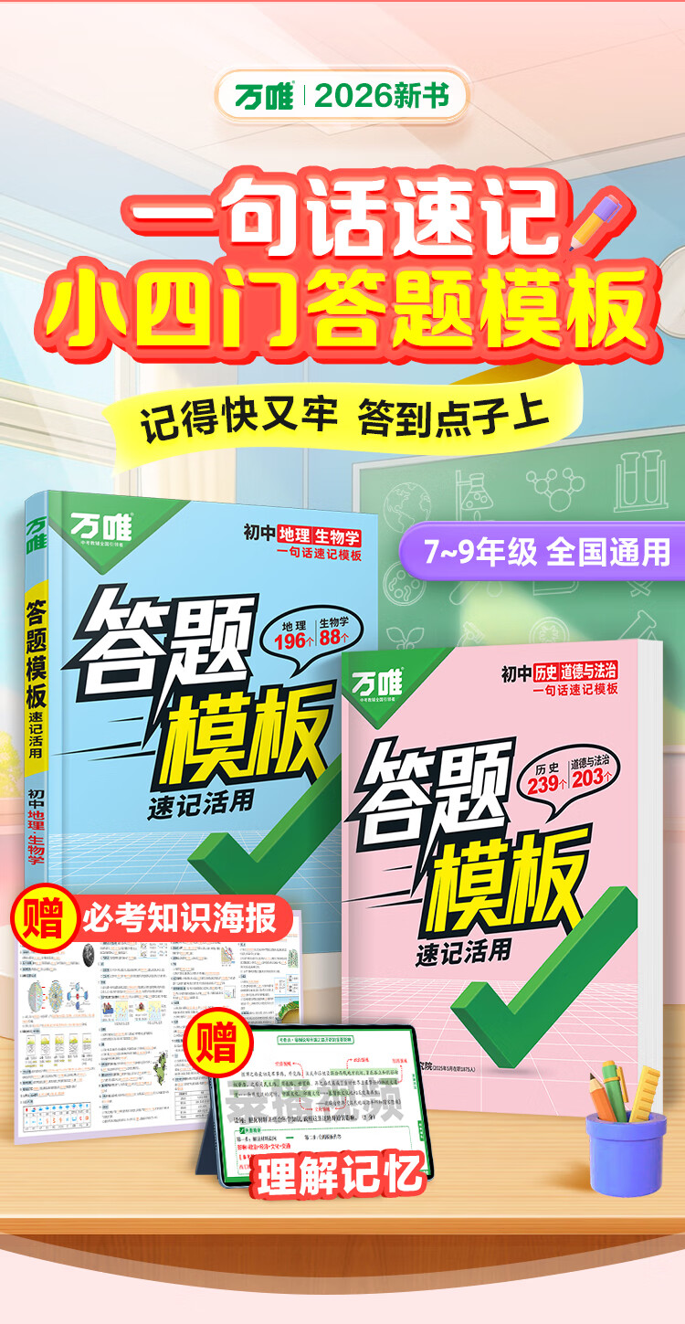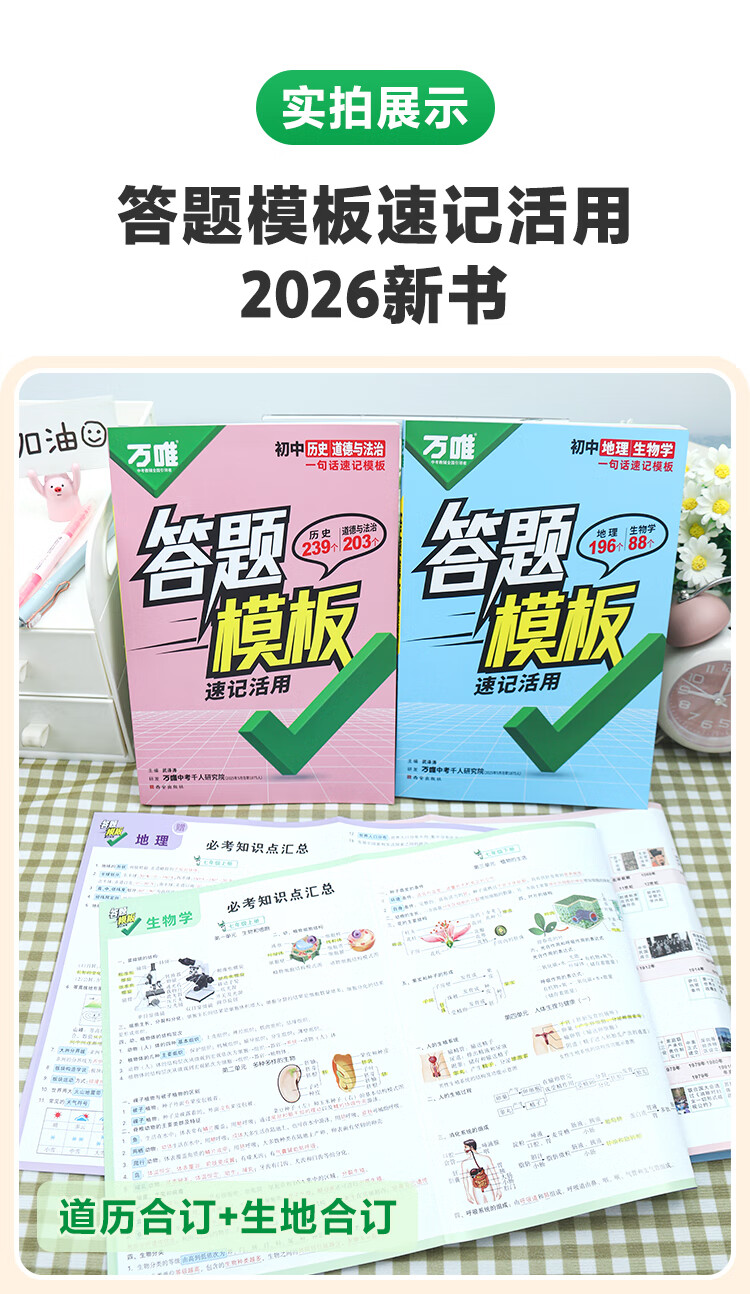 万唯中考初中小四门速用答题模板速记活用知识点必背全国通用七八九年级政治历史地理生物速记背记手册大全中考初二会考复习资料 拍【道历+生地】2本套装|赠7上历史周末小测卷
