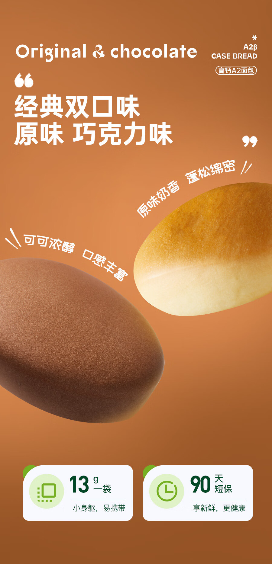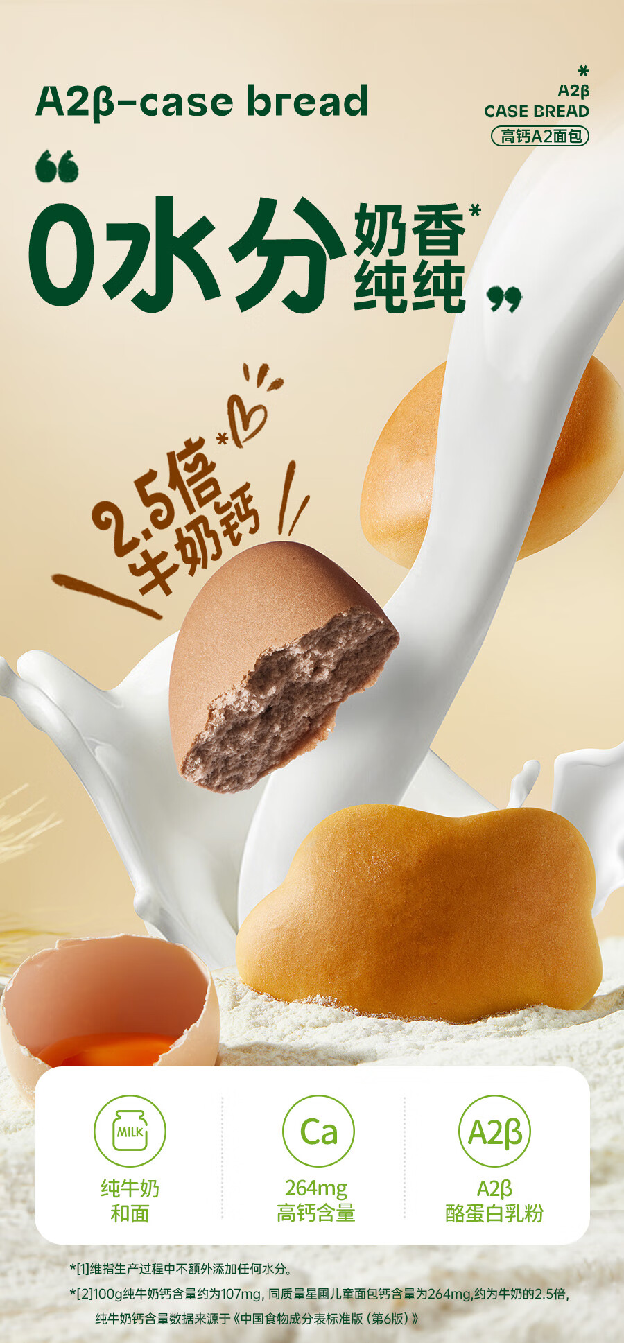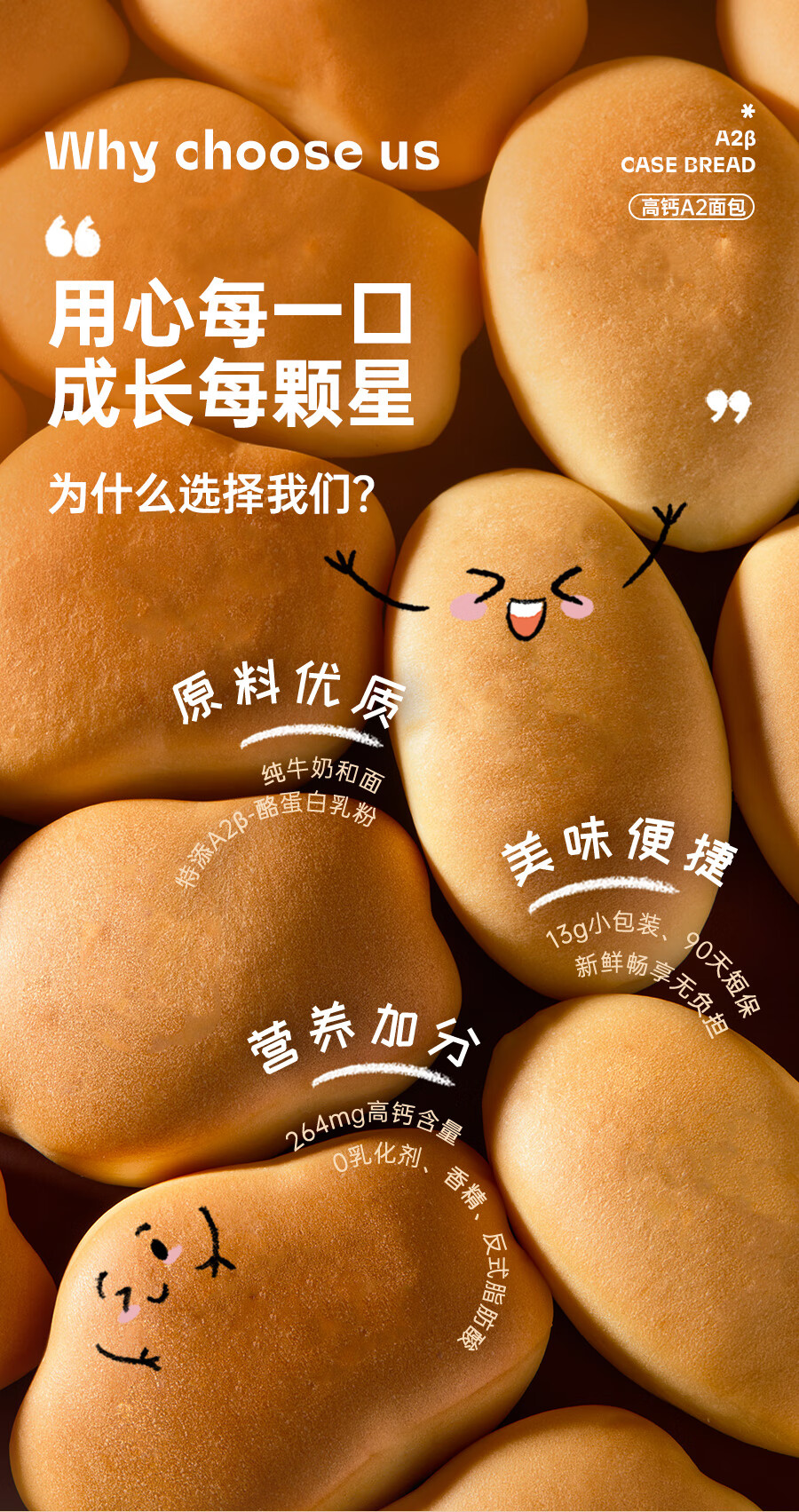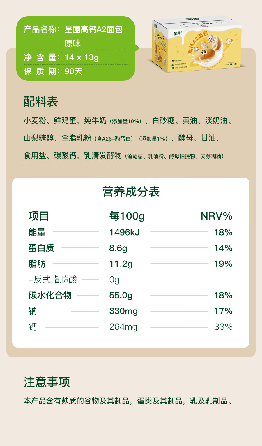 星圃A2小面包儿童早餐零食A2纯牛奶和面小馒头宝宝零食 原味小面包*1箱(14枚)