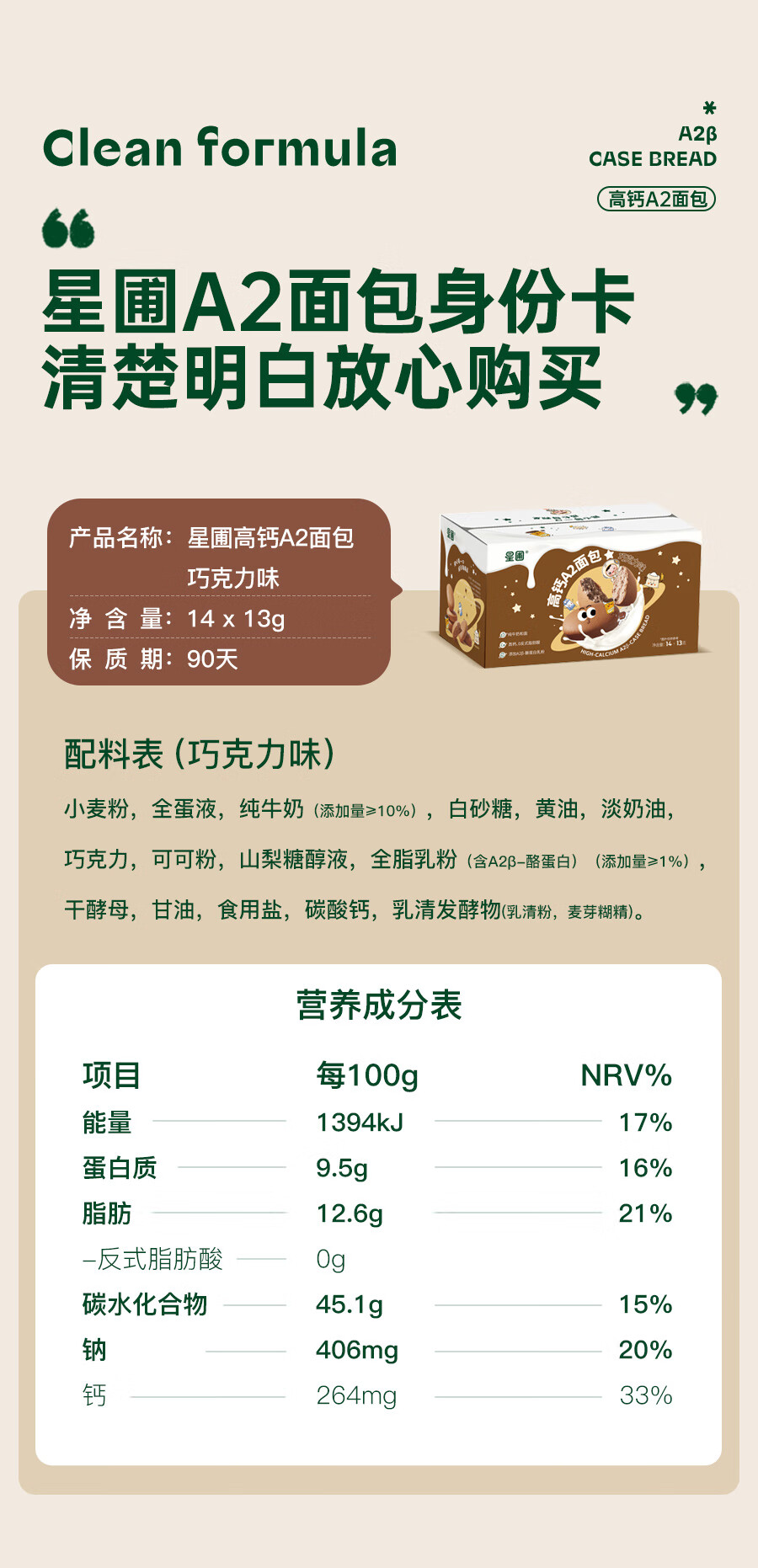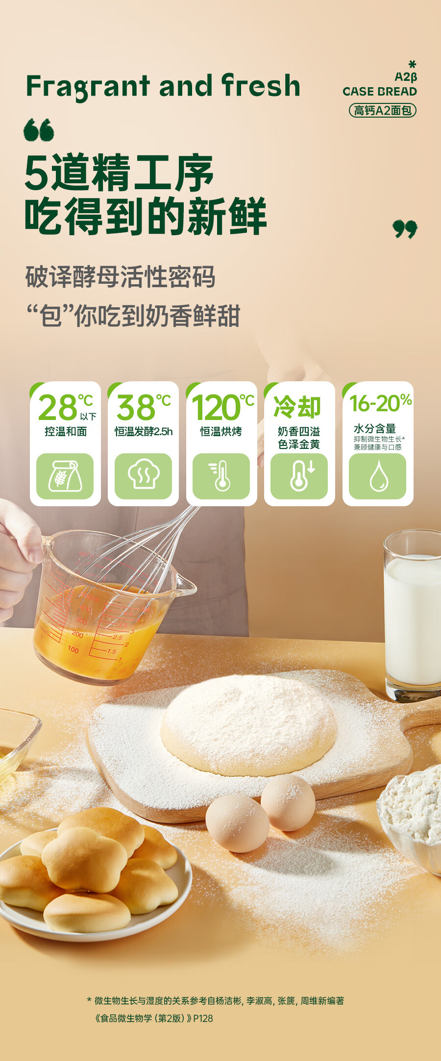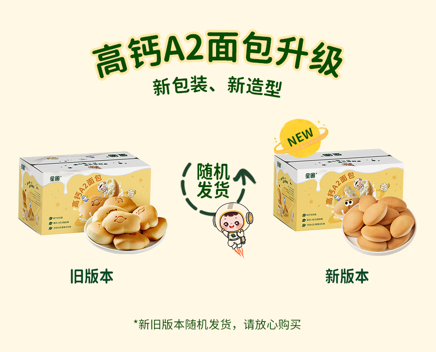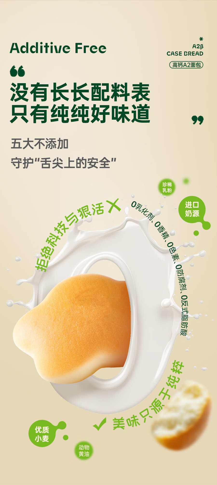 星圃A2小面包儿童早餐零食A2纯牛奶和面小馒头宝宝零食 原味小面包*1箱(14枚)