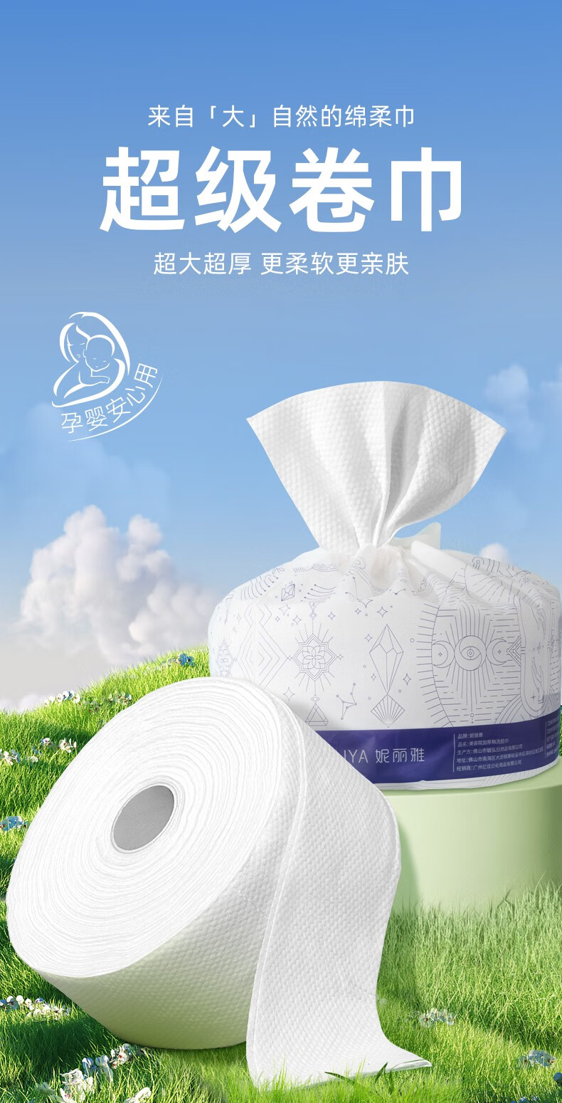 妮丽雅一次性超大卷洗脸巾纯棉抽取式加大加厚美容院专用棉柔化妆棉湿巾 厚款 600克 【1卷装】加大加厚款-珍珠纹