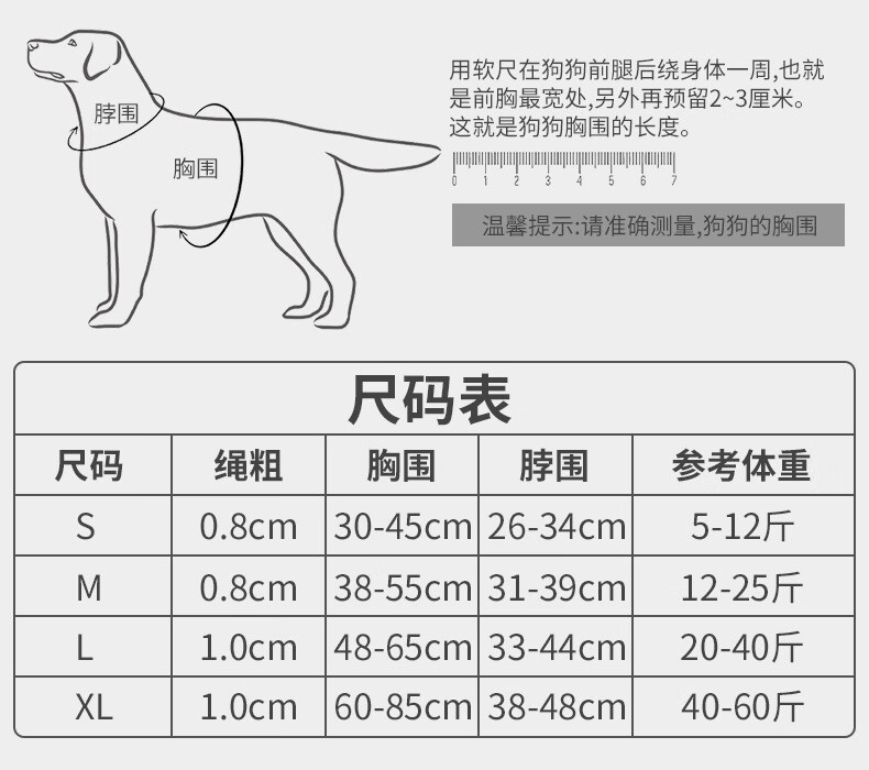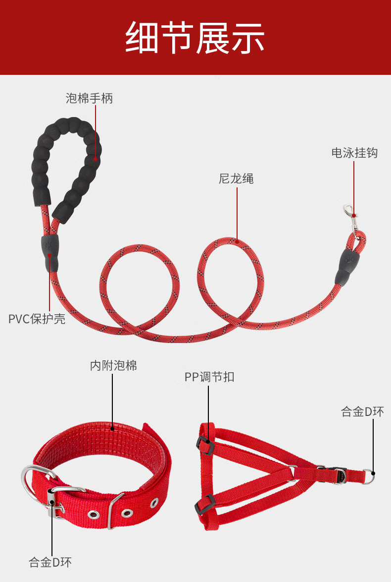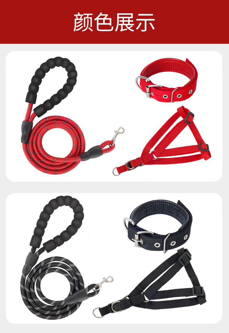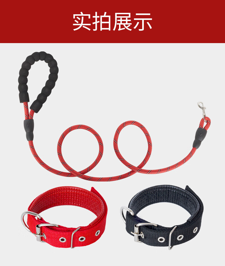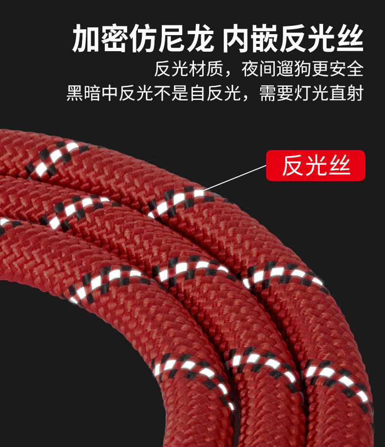 防爆冲反光狗绳宠物牵引绳圆绳狗链子遛狗绳全品种通用狗绳 单个项圈(红色 S码(5-12斤