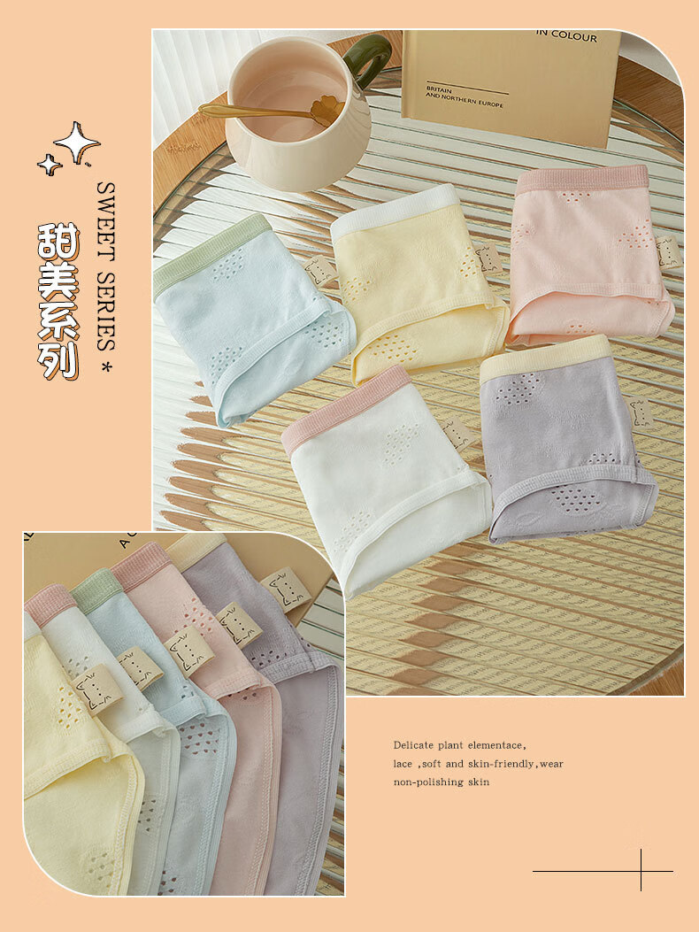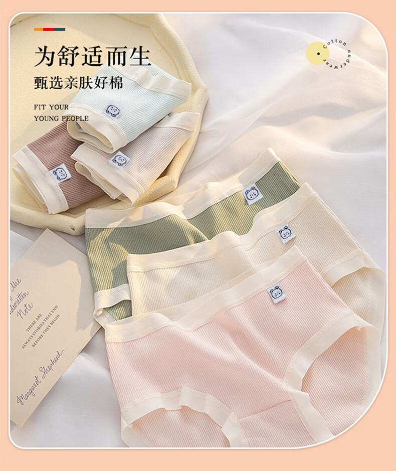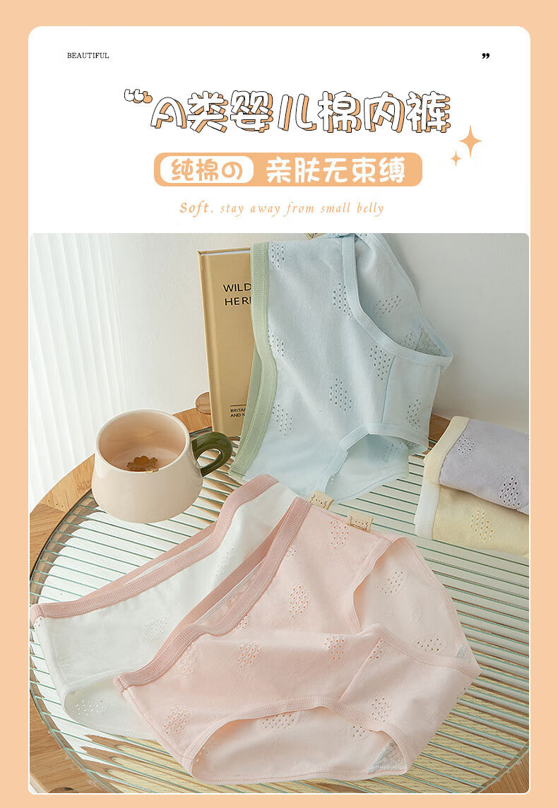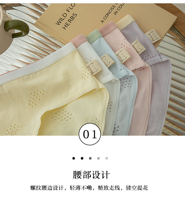 六月玫瑰 内裤女舒适柔棉健康透气女士内裤小清新高弹纯棉裆5条装 组合二 5条 XL