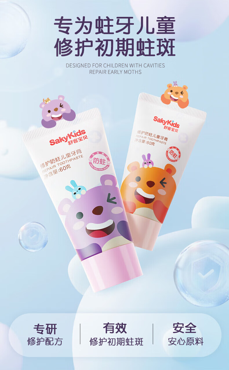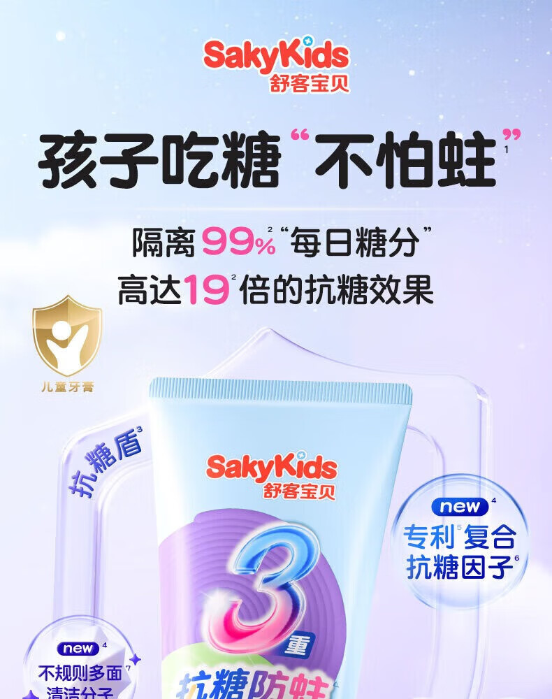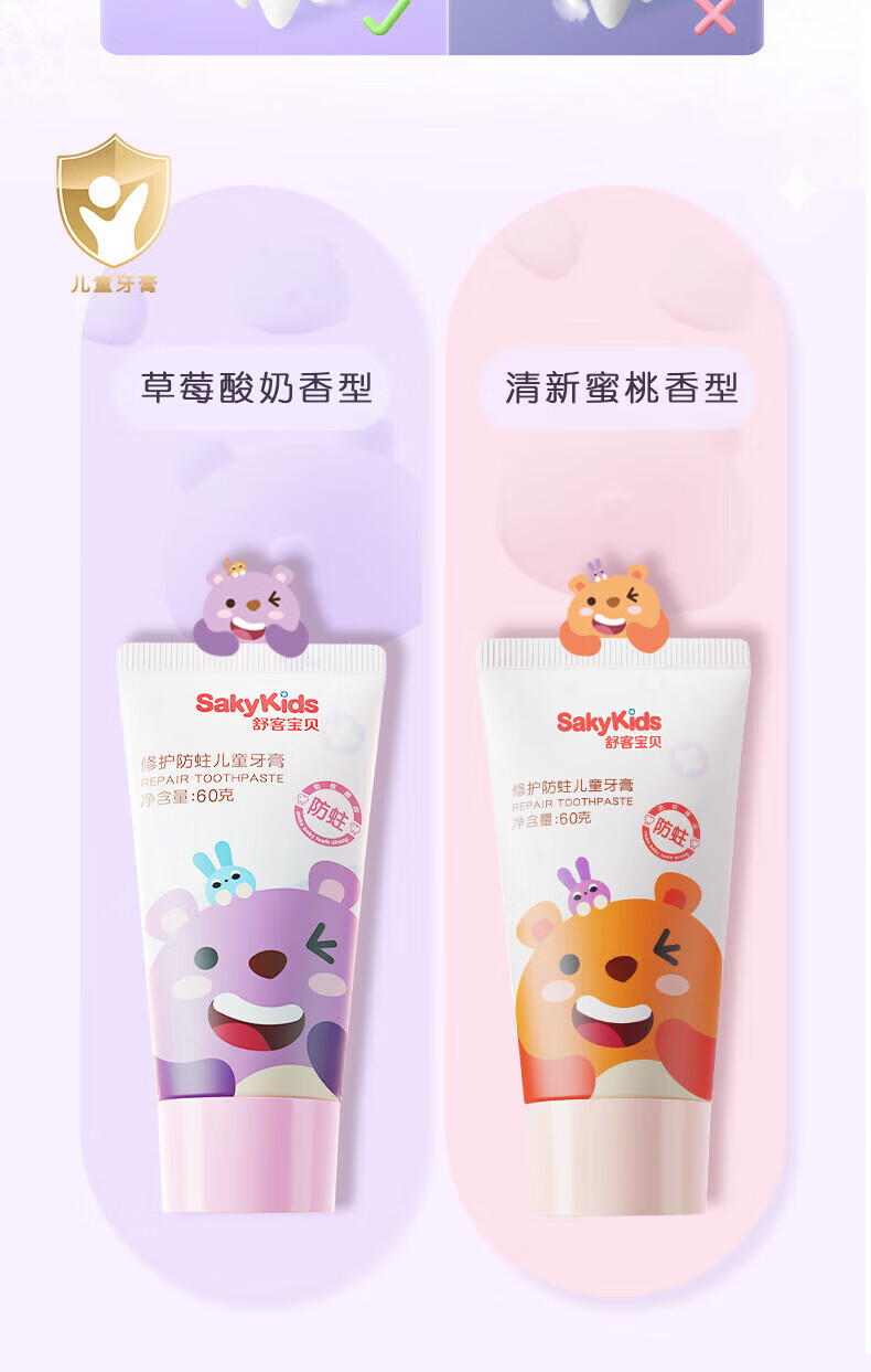 舒客儿童牙膏牙刷杯子按压式小护盾小孩宝宝2-3-12岁含氟防蛀清洁家用 【抗糖酸组合】按压150g+抗糖60g
