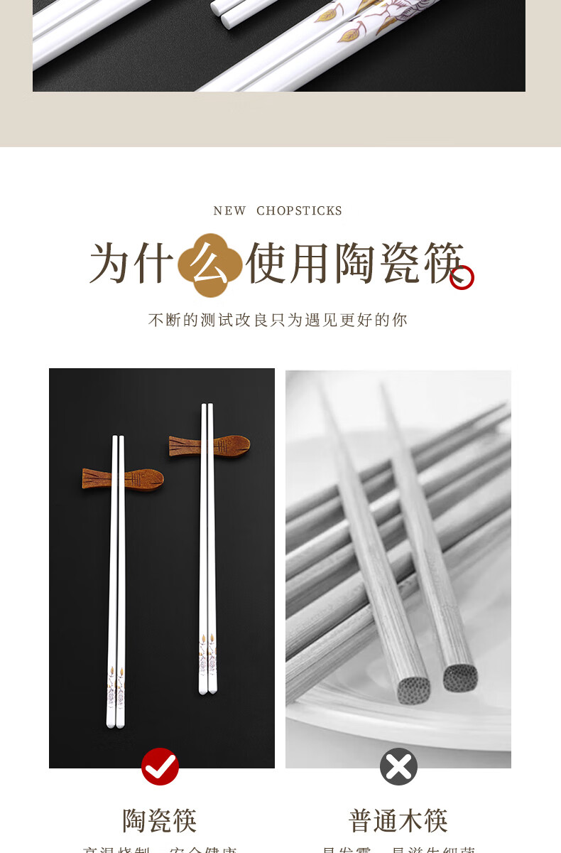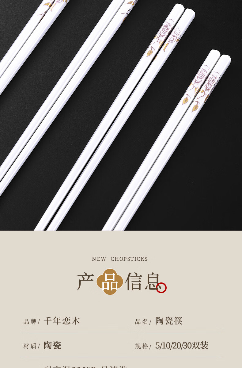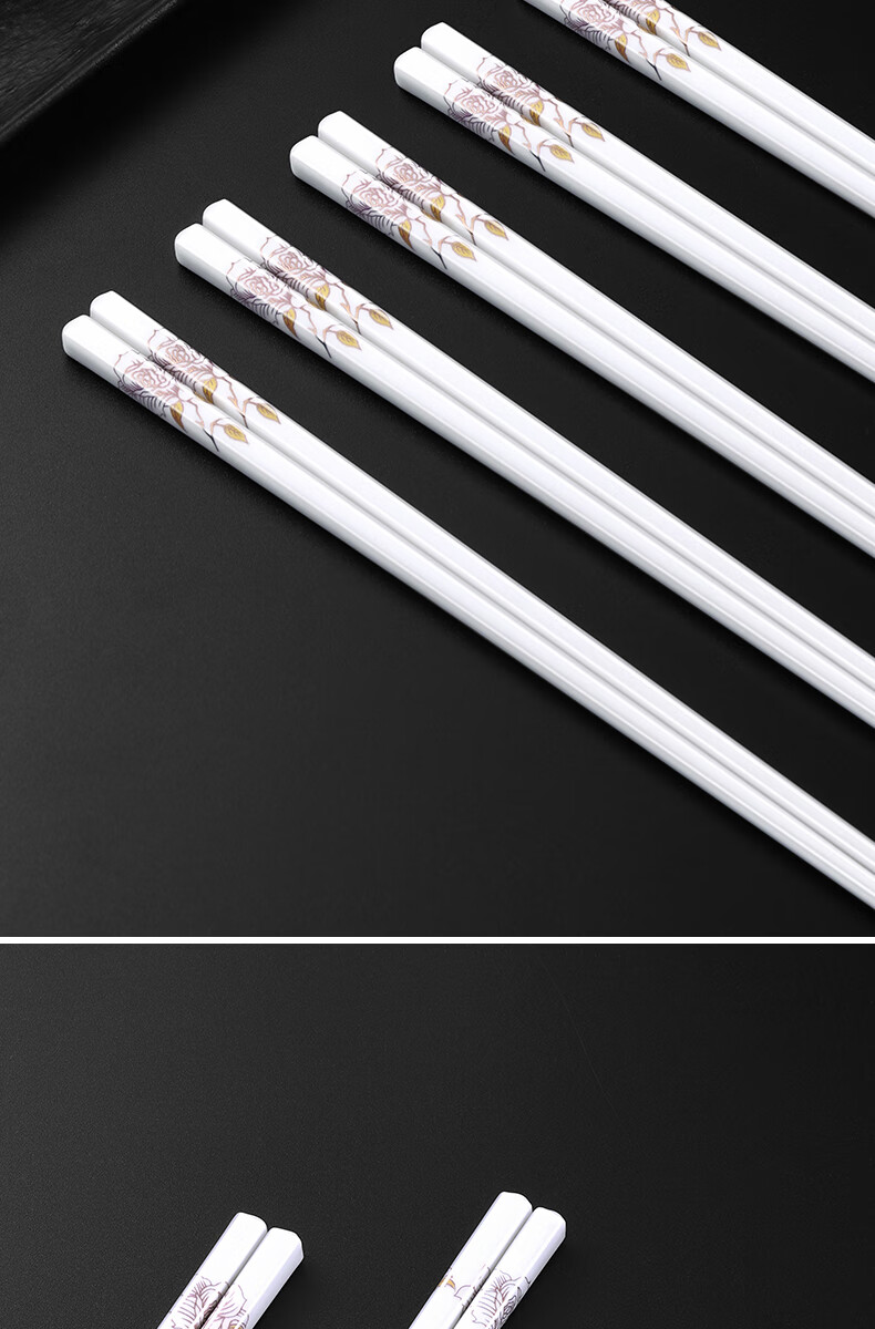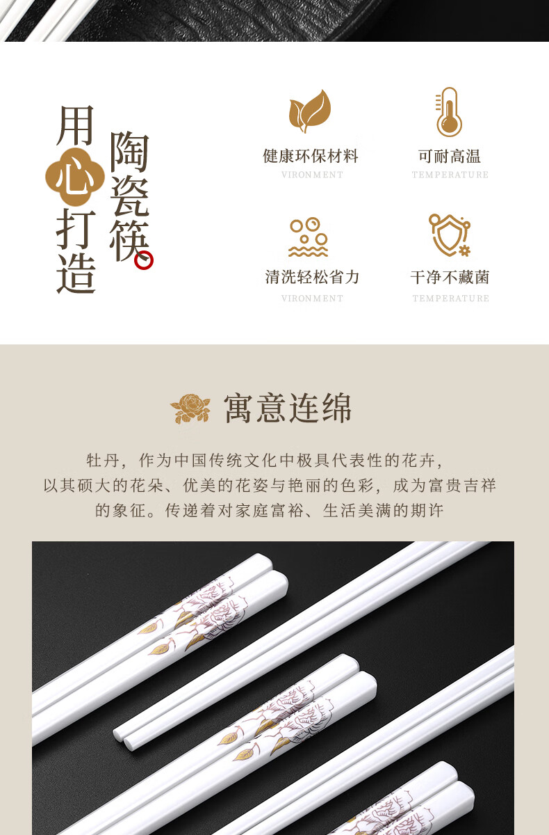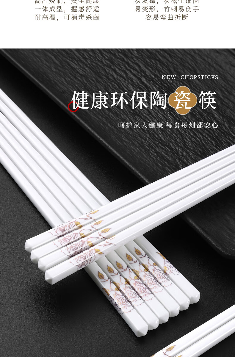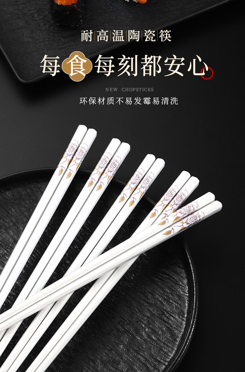 京悠雨景德镇陶瓷筷子防滑家用易清洗防霉国风耐高温家庭餐筷 国色天香陶瓷筷防滑耐摔 10双 【送饭勺】 耐高温易清洗