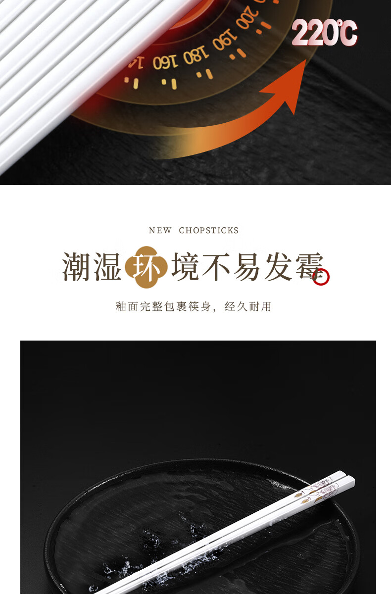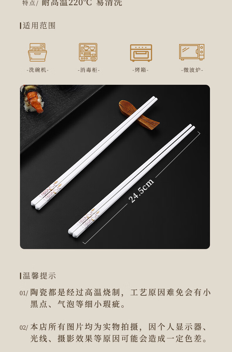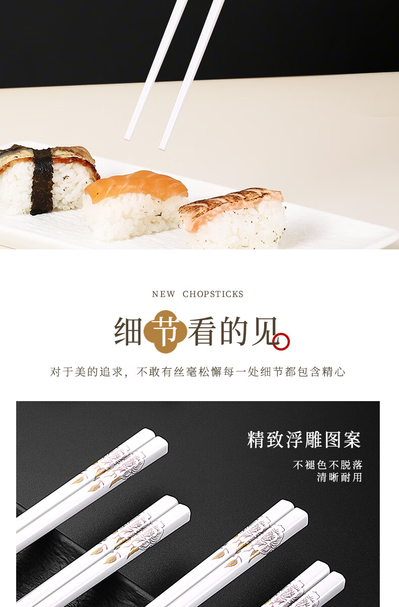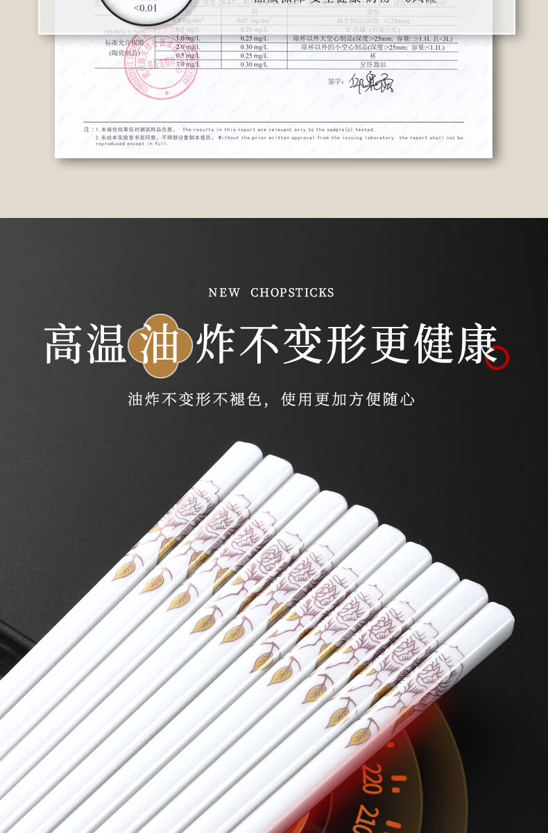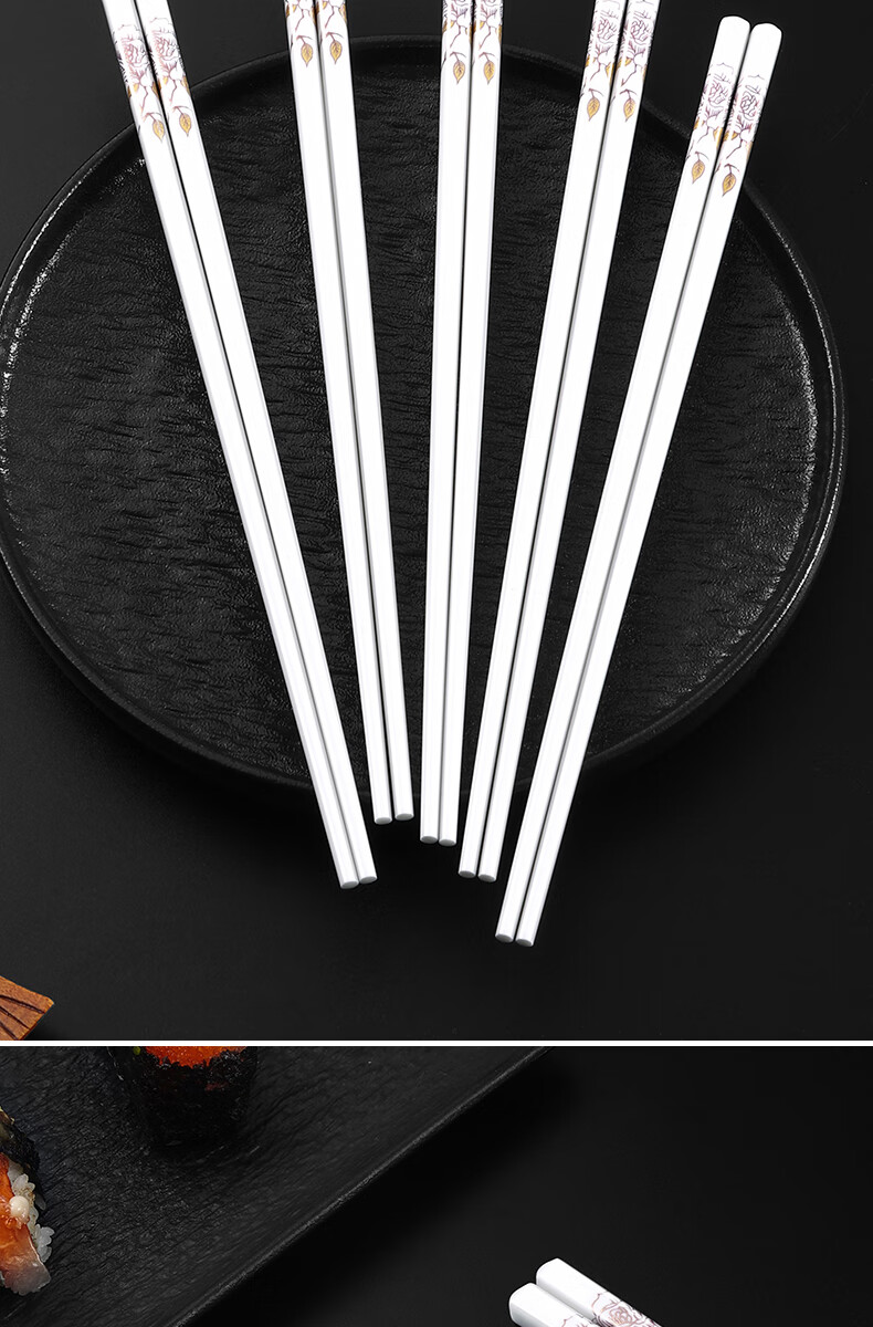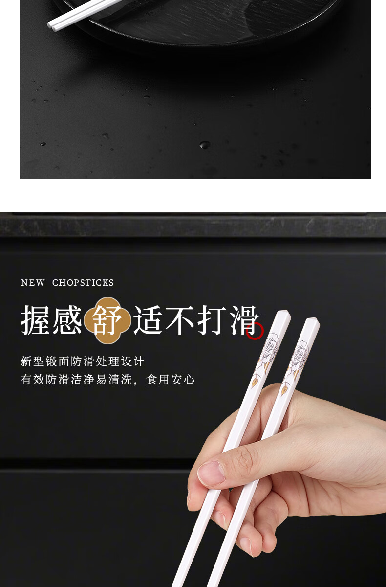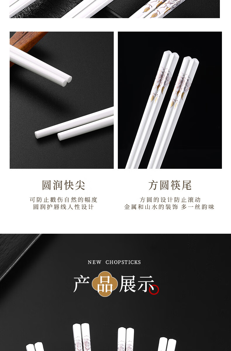 京悠雨景德镇陶瓷筷子防滑家用易清洗防霉国风耐高温家庭餐筷 国色天香陶瓷筷防滑耐摔 10双 【送饭勺】 耐高温易清洗