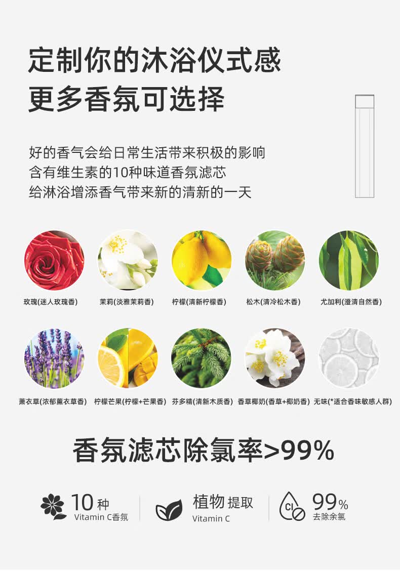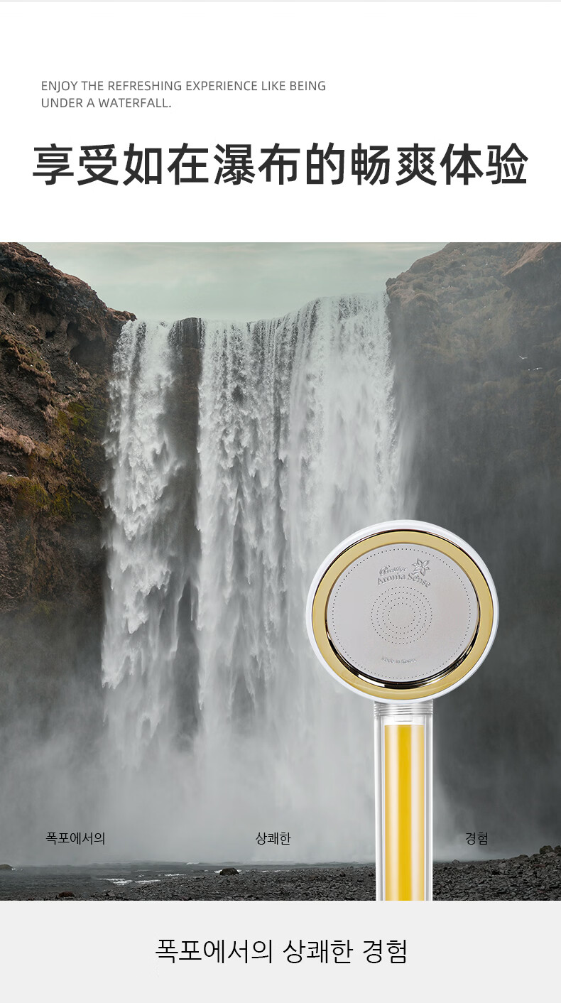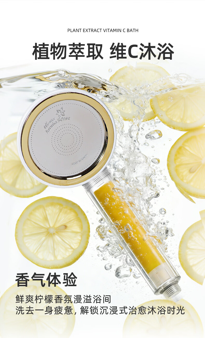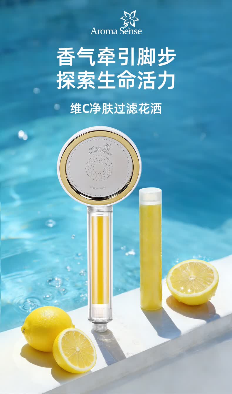 Aroma Sense韩国进口VC香氛美肤手持过滤花洒增压淋浴净水除氯抗菌阻垢 PRC透明柠檬版+2支香氛滤芯 (松木+玫瑰)