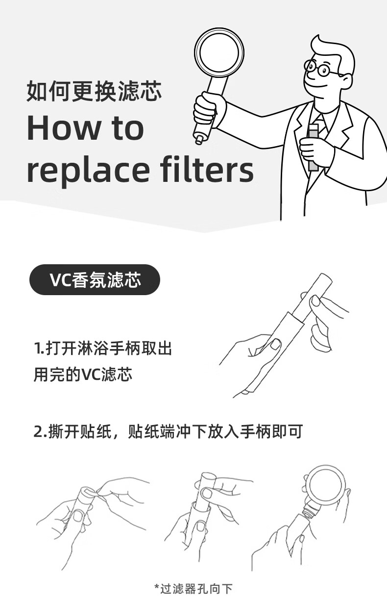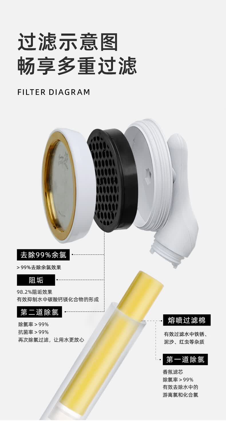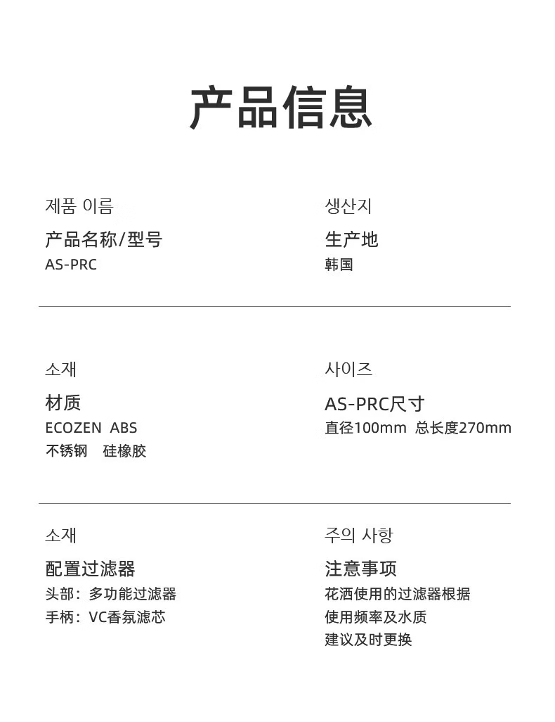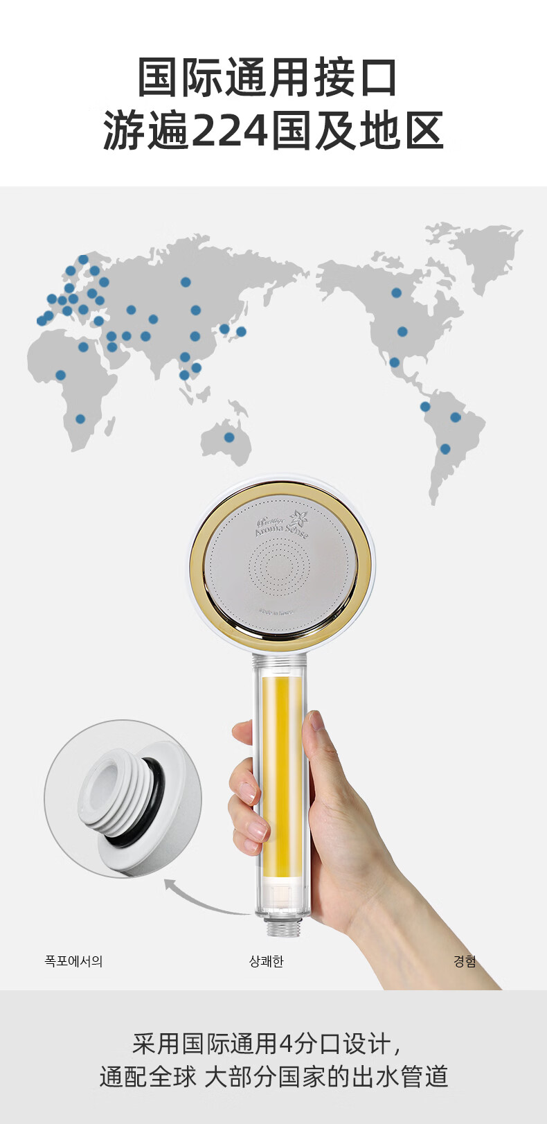 Aroma Sense韩国进口VC香氛美肤手持过滤花洒增压淋浴净水除氯抗菌阻垢 PRC透明柠檬版+2支香氛滤芯 (松木+玫瑰)
