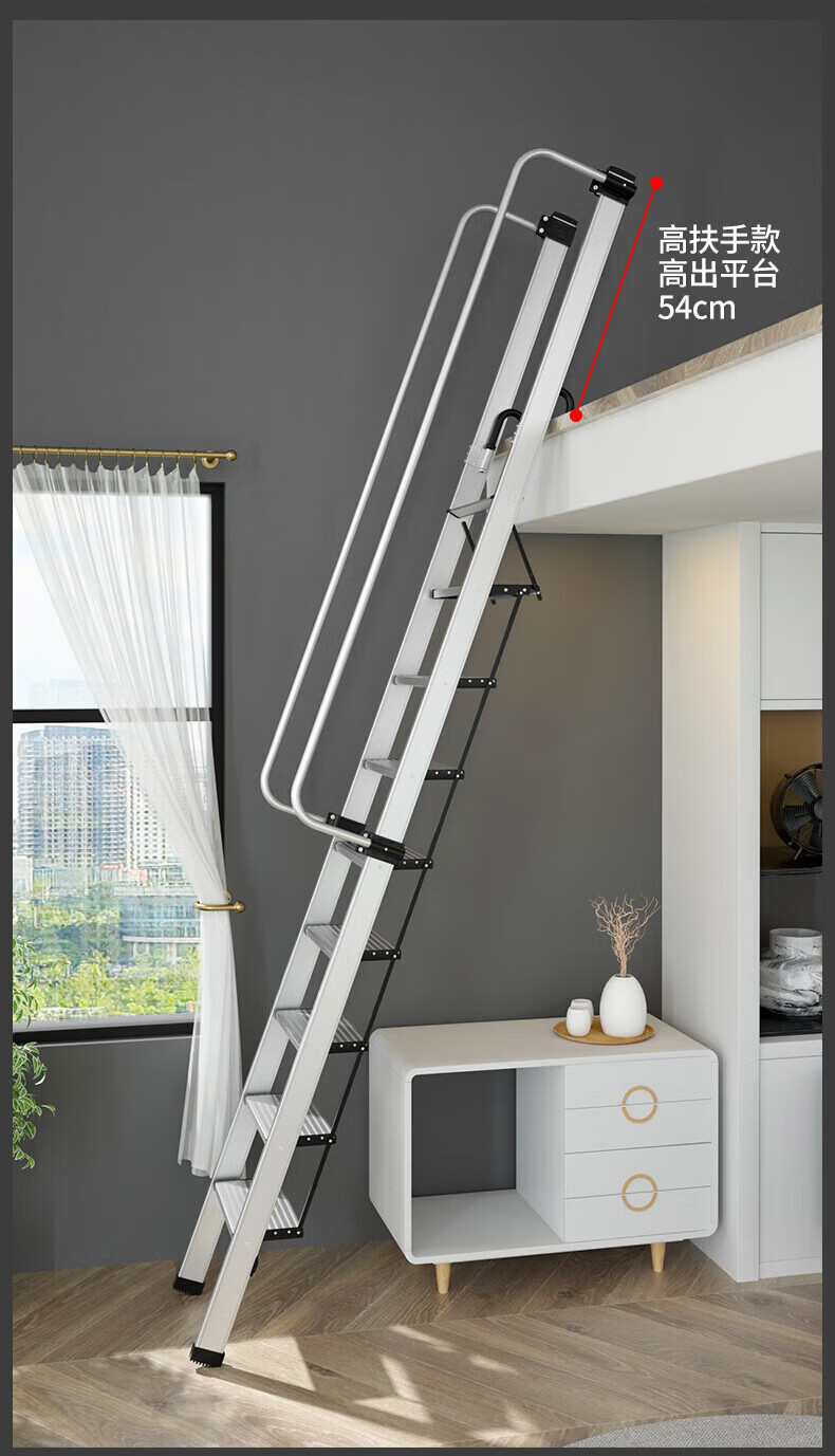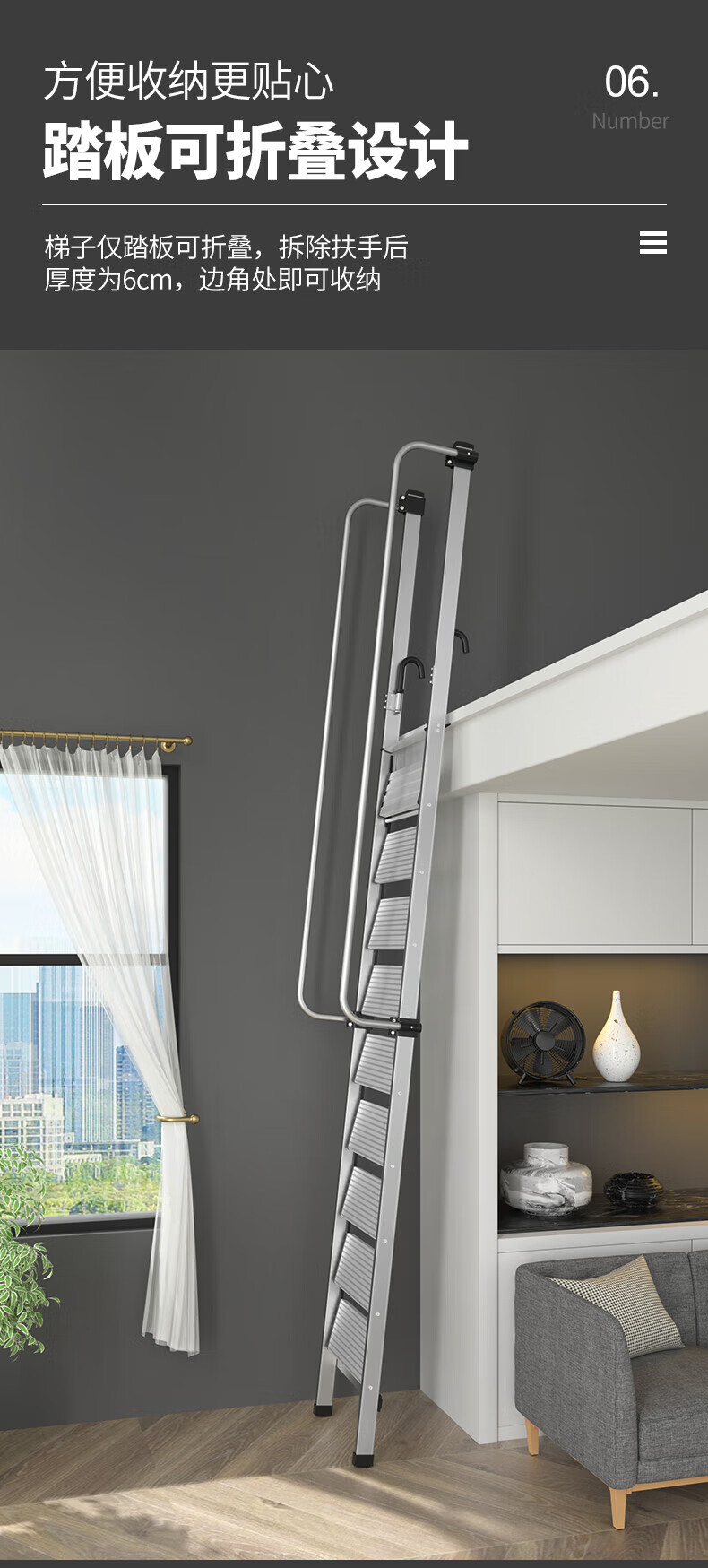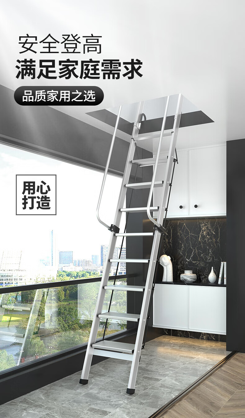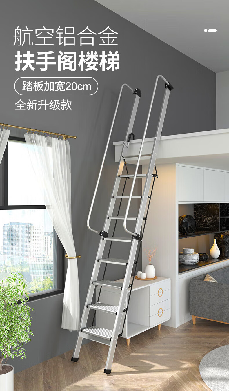 百佳宜(BaiJiaYi)梯子家用加厚阁楼楼梯登高多功能铝合金扶手爬梯可定制折叠伸缩梯 20CM平板-8步标准款