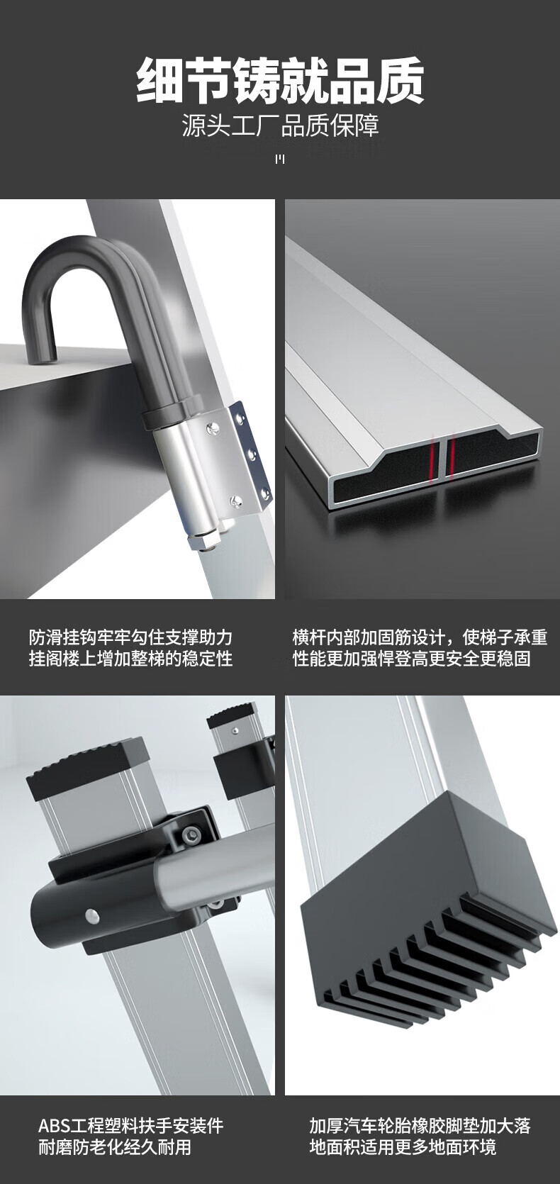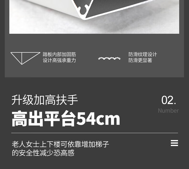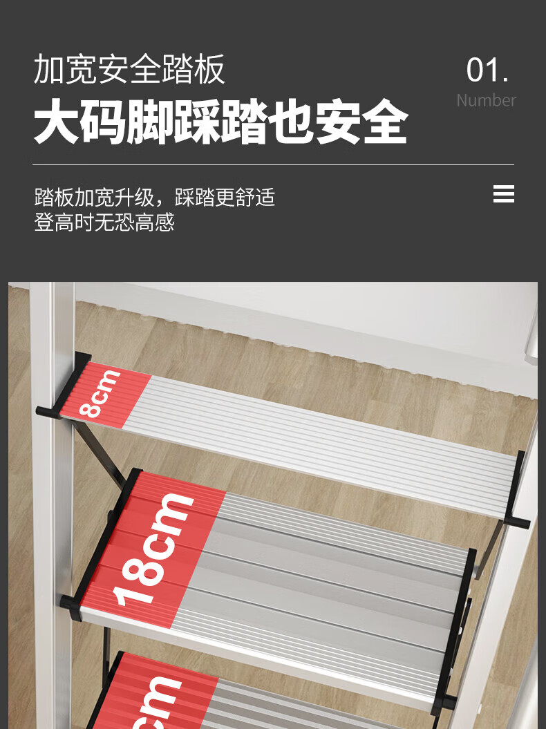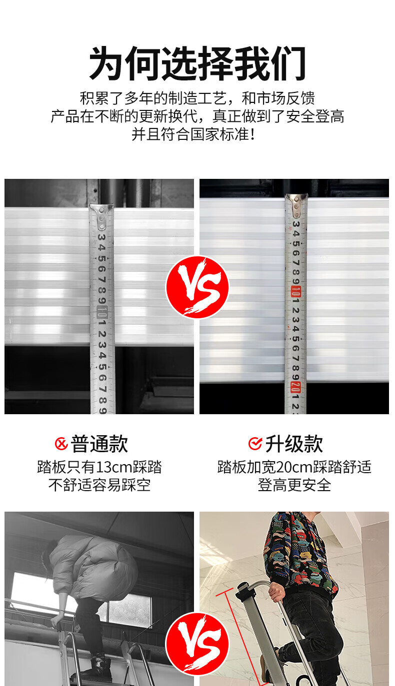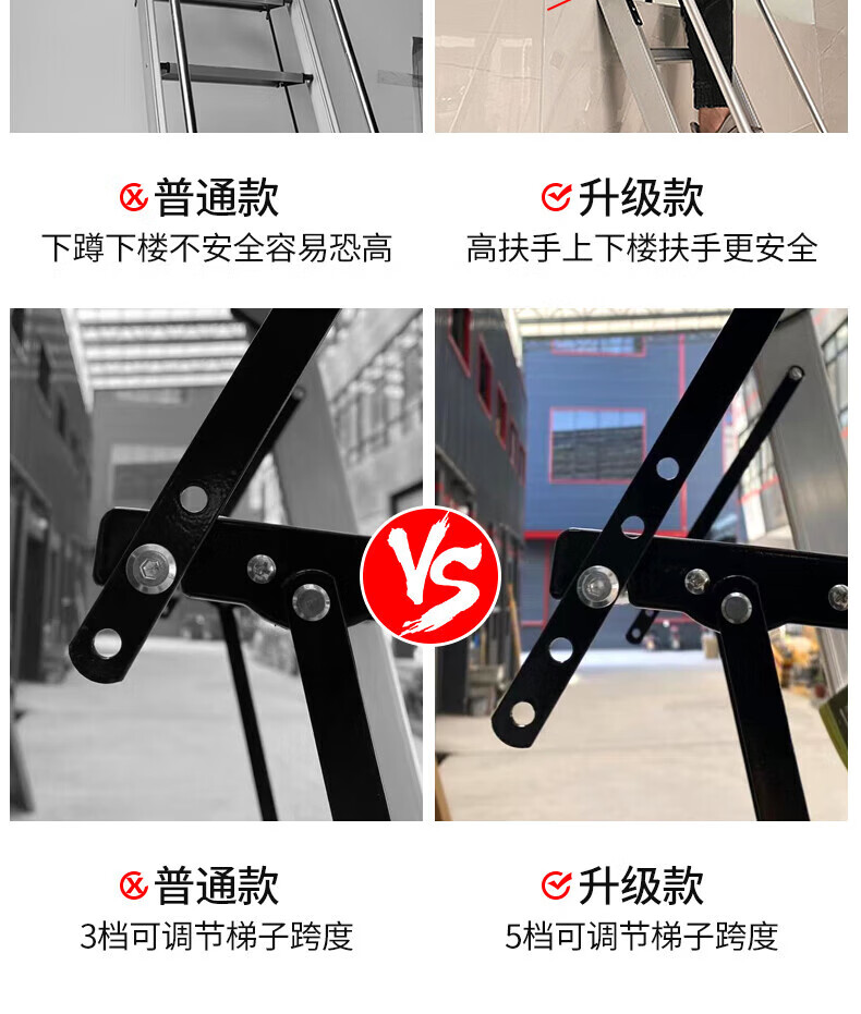 百佳宜(BaiJiaYi)梯子家用加厚阁楼楼梯登高多功能铝合金扶手爬梯可定制折叠伸缩梯 20CM平板-8步标准款