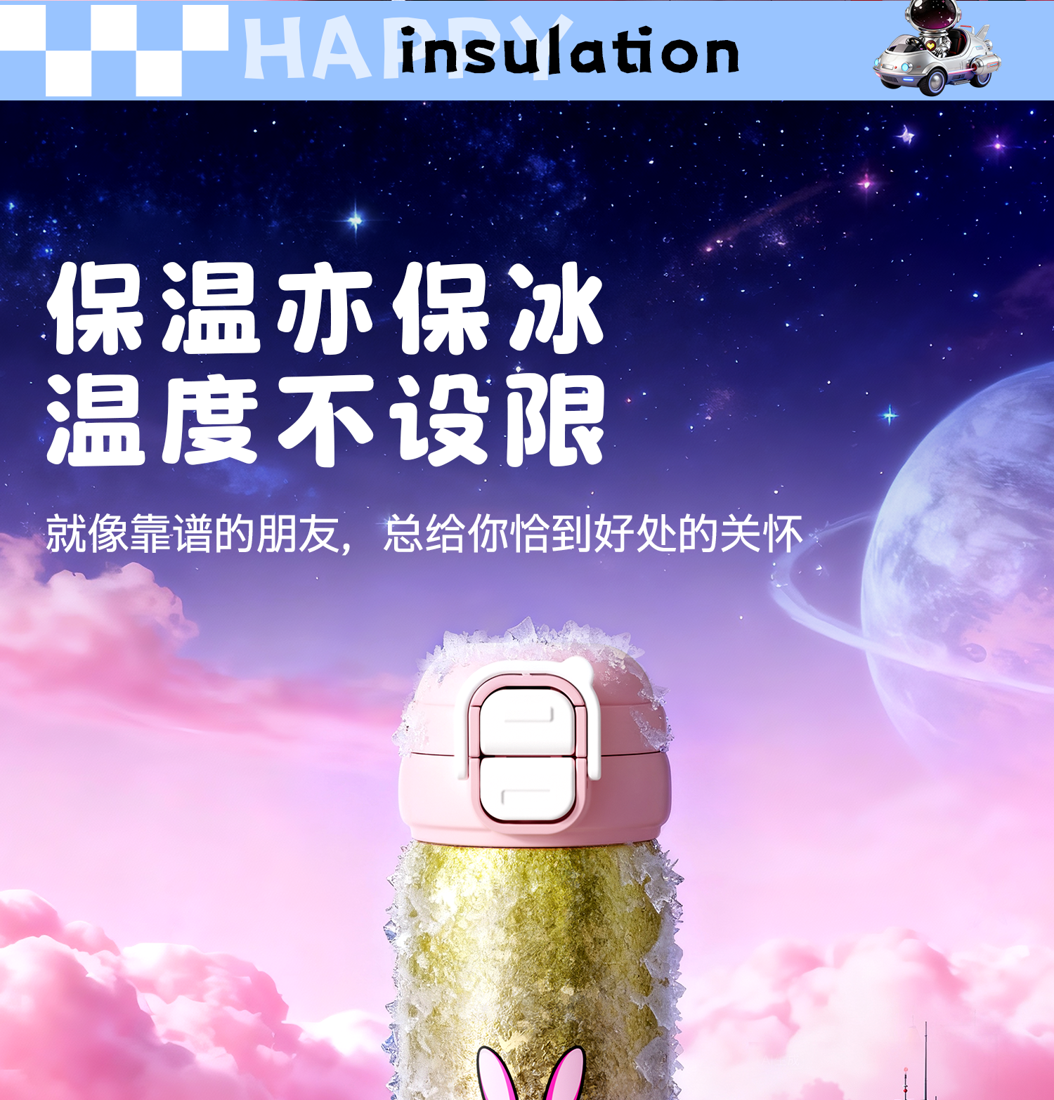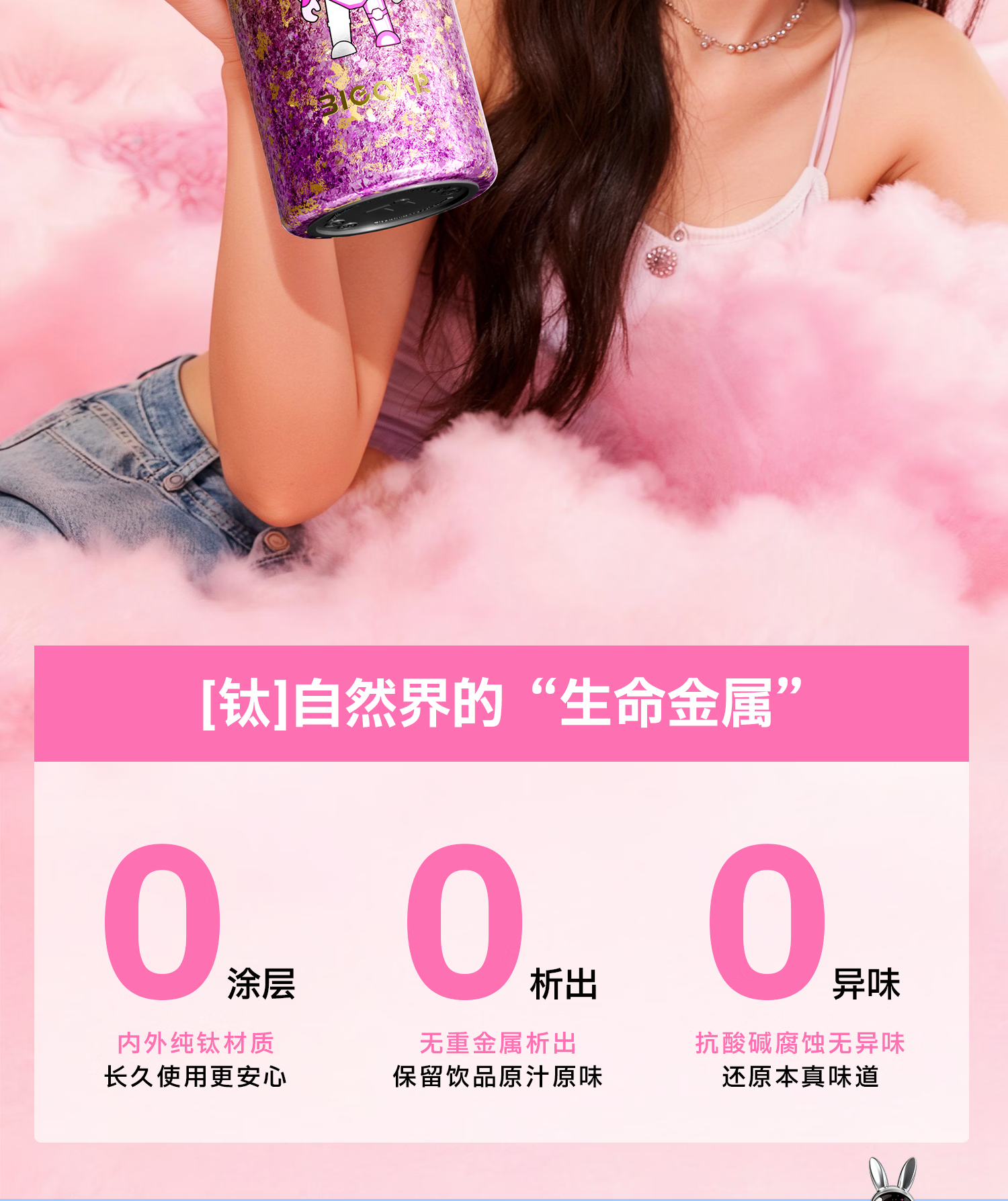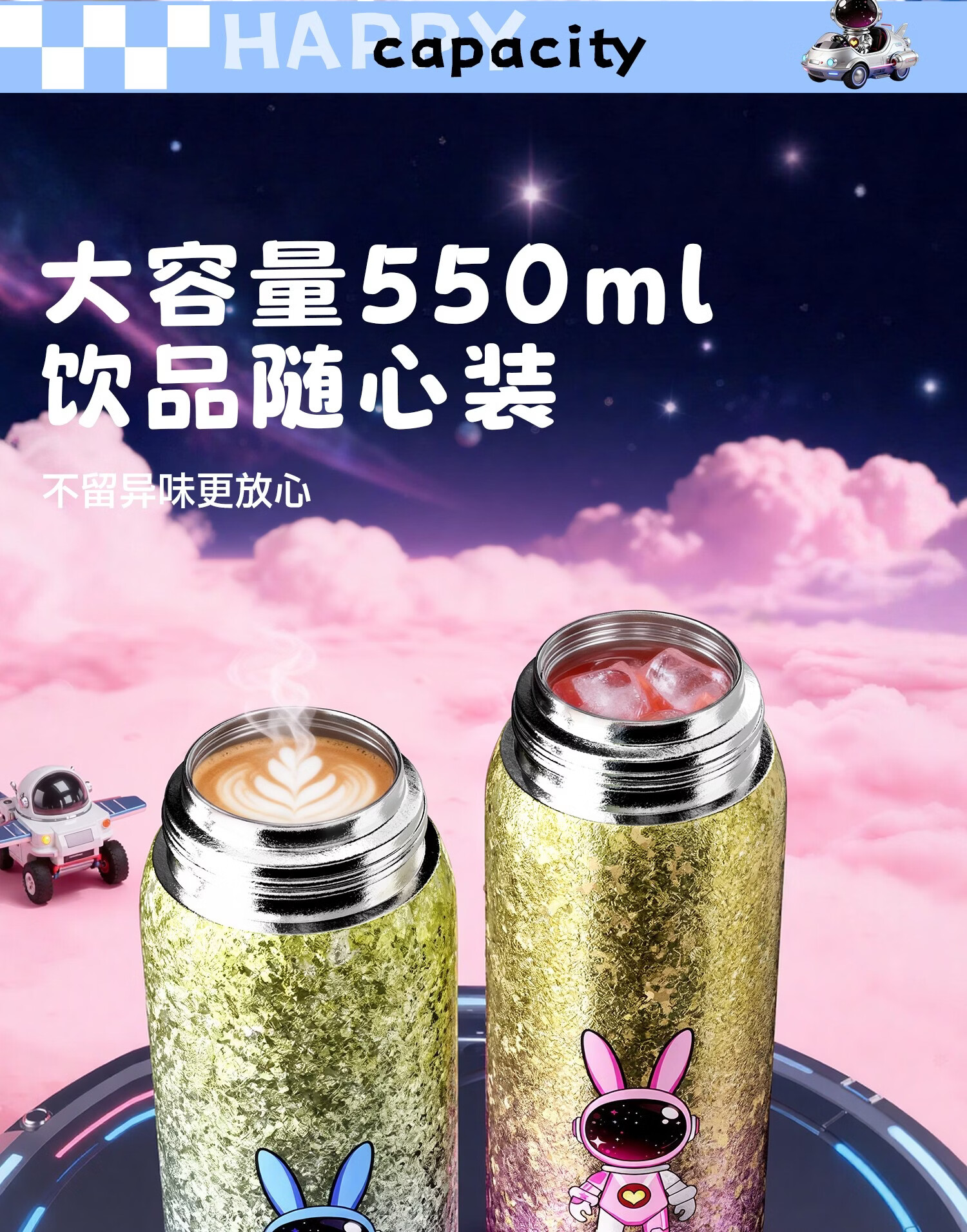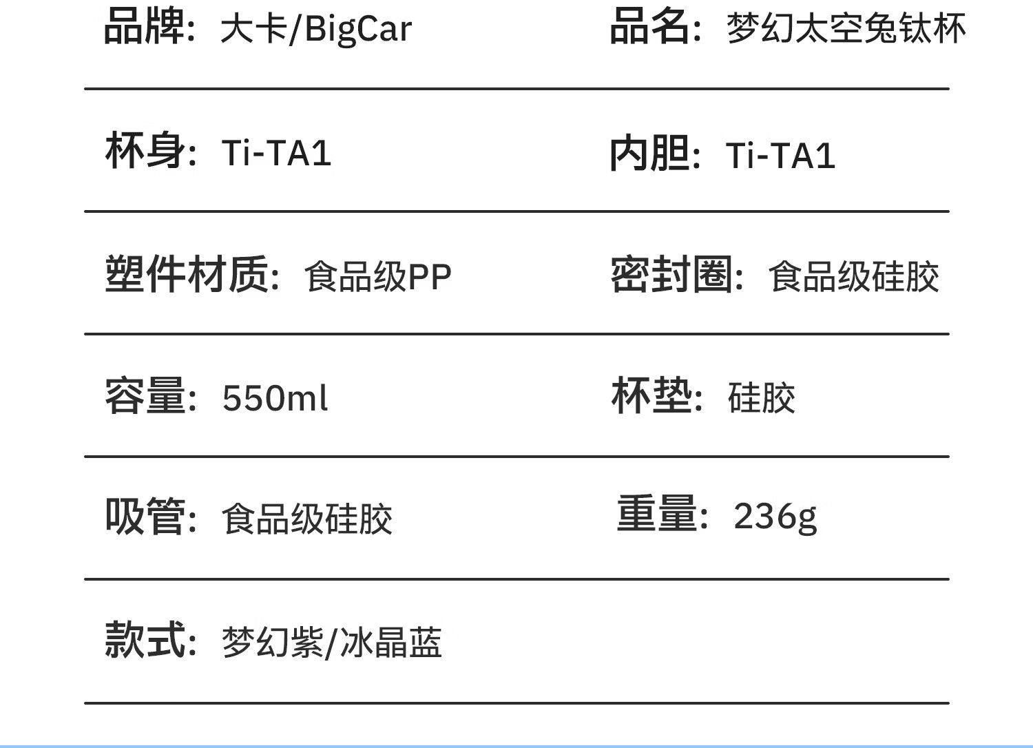 大卡纯钛保温杯小学生水杯便携水杯高颜值双饮吸管杯儿童上学专用水杯 梦幻紫550ML-星空兔【内外纯钛+双饮杯盖】