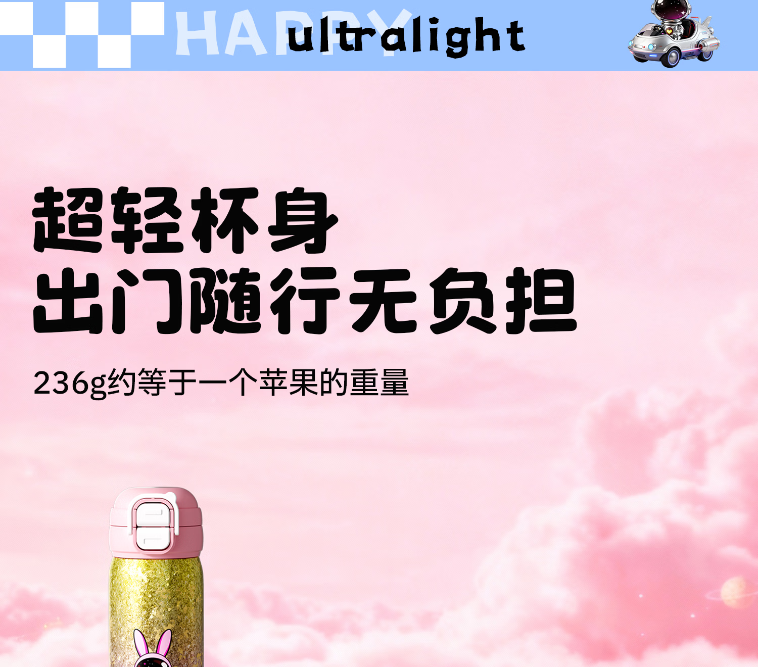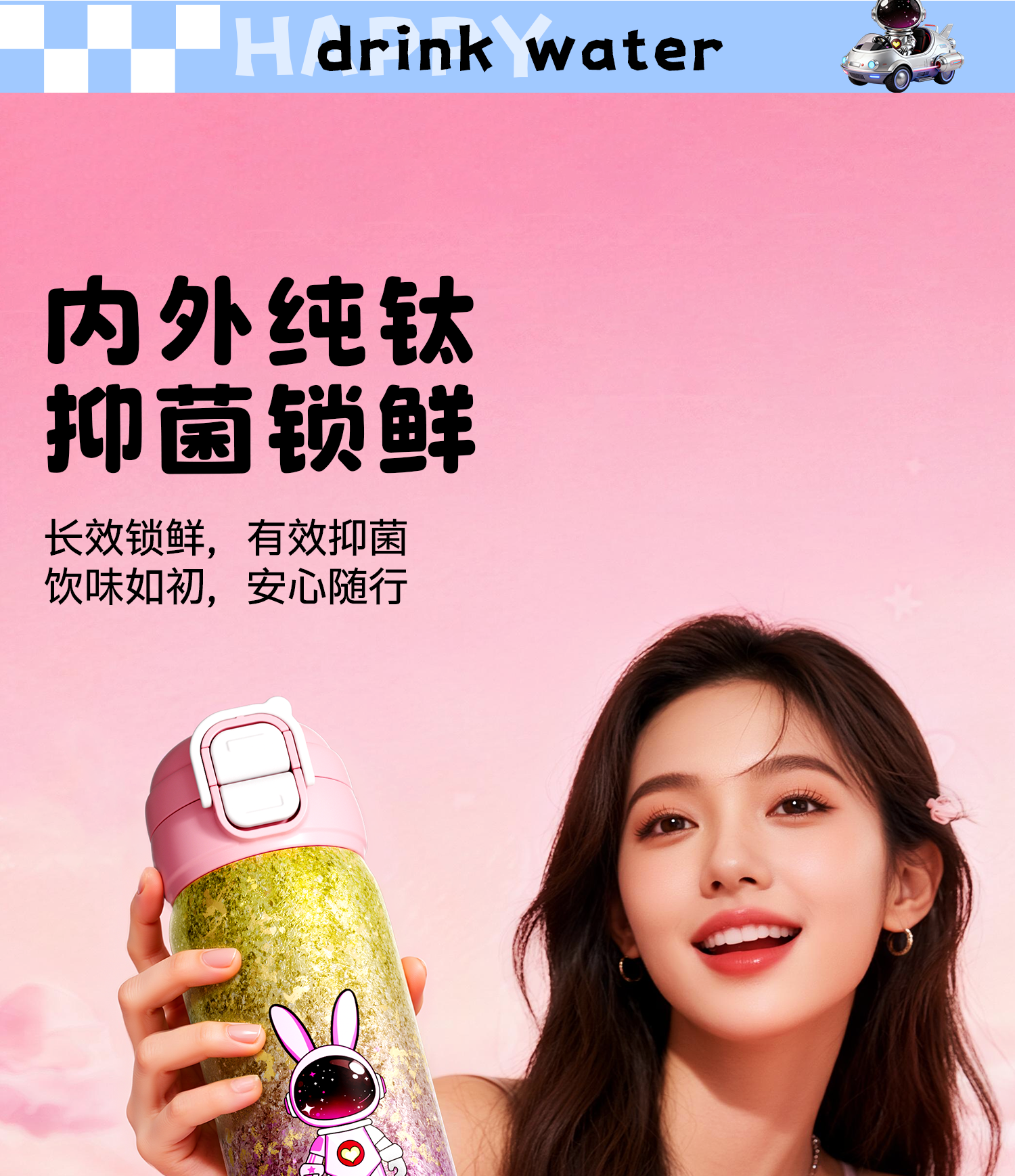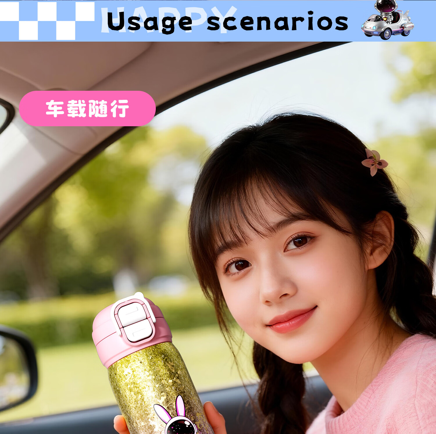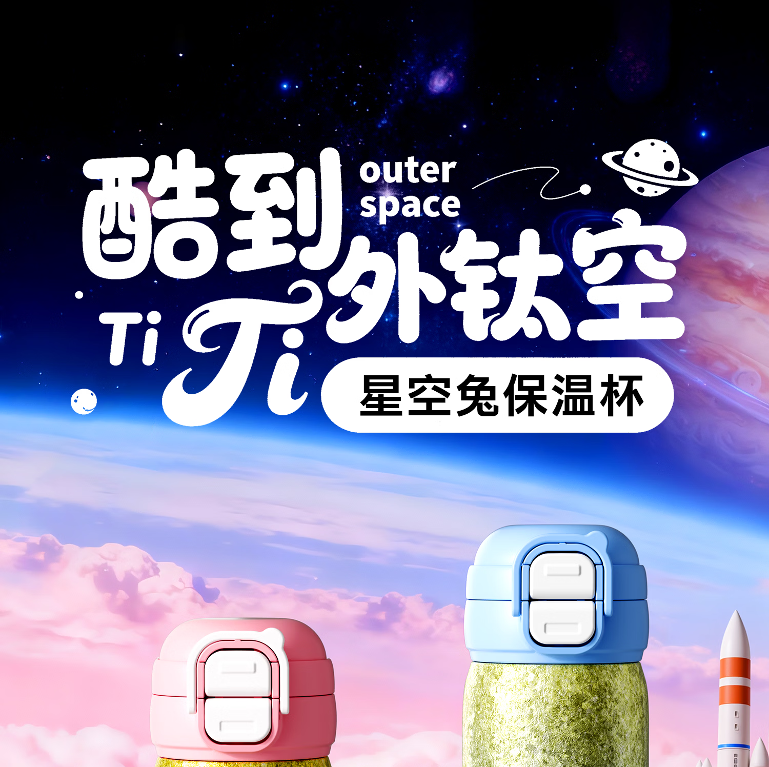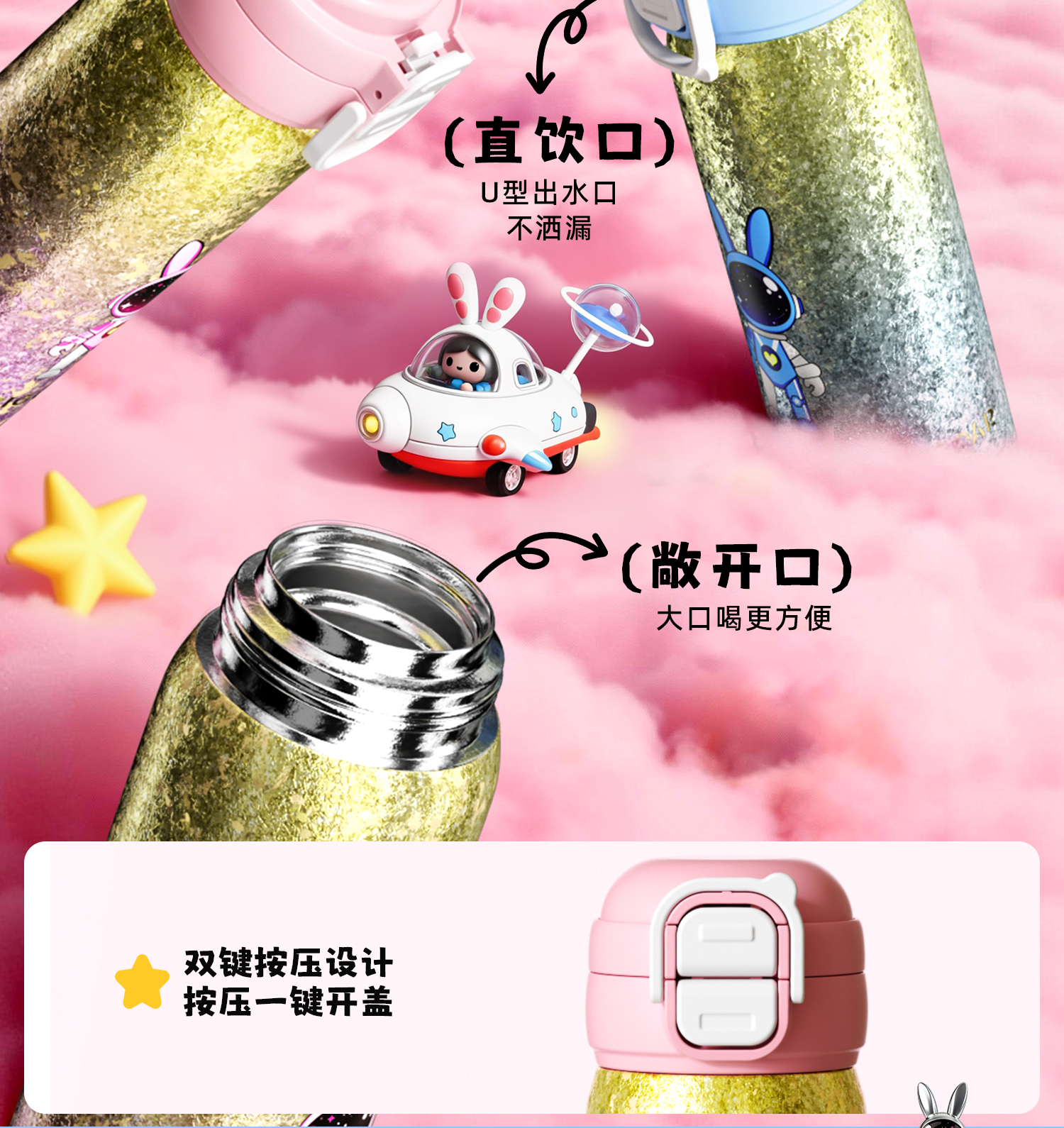 大卡纯钛保温杯小学生水杯便携水杯高颜值双饮吸管杯儿童上学专用水杯 梦幻紫550ML-星空兔【内外纯钛+双饮杯盖】
