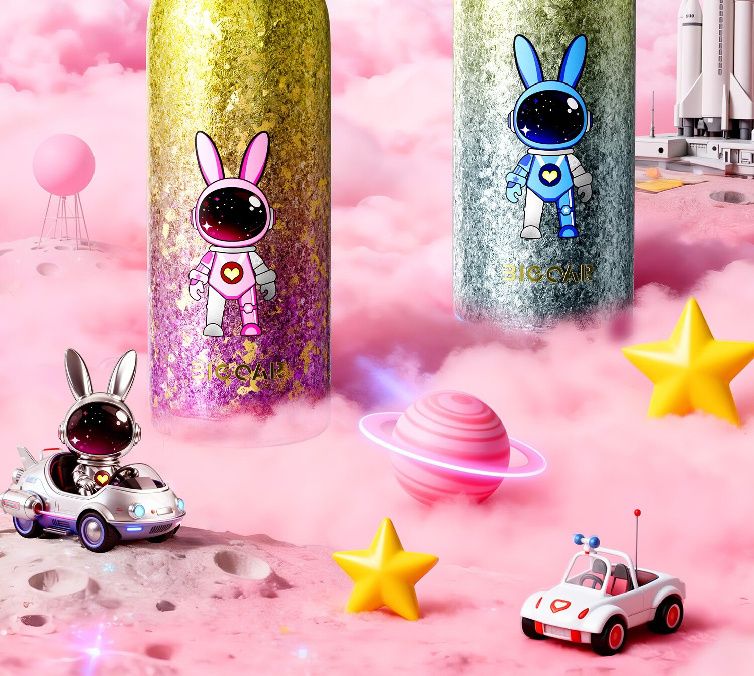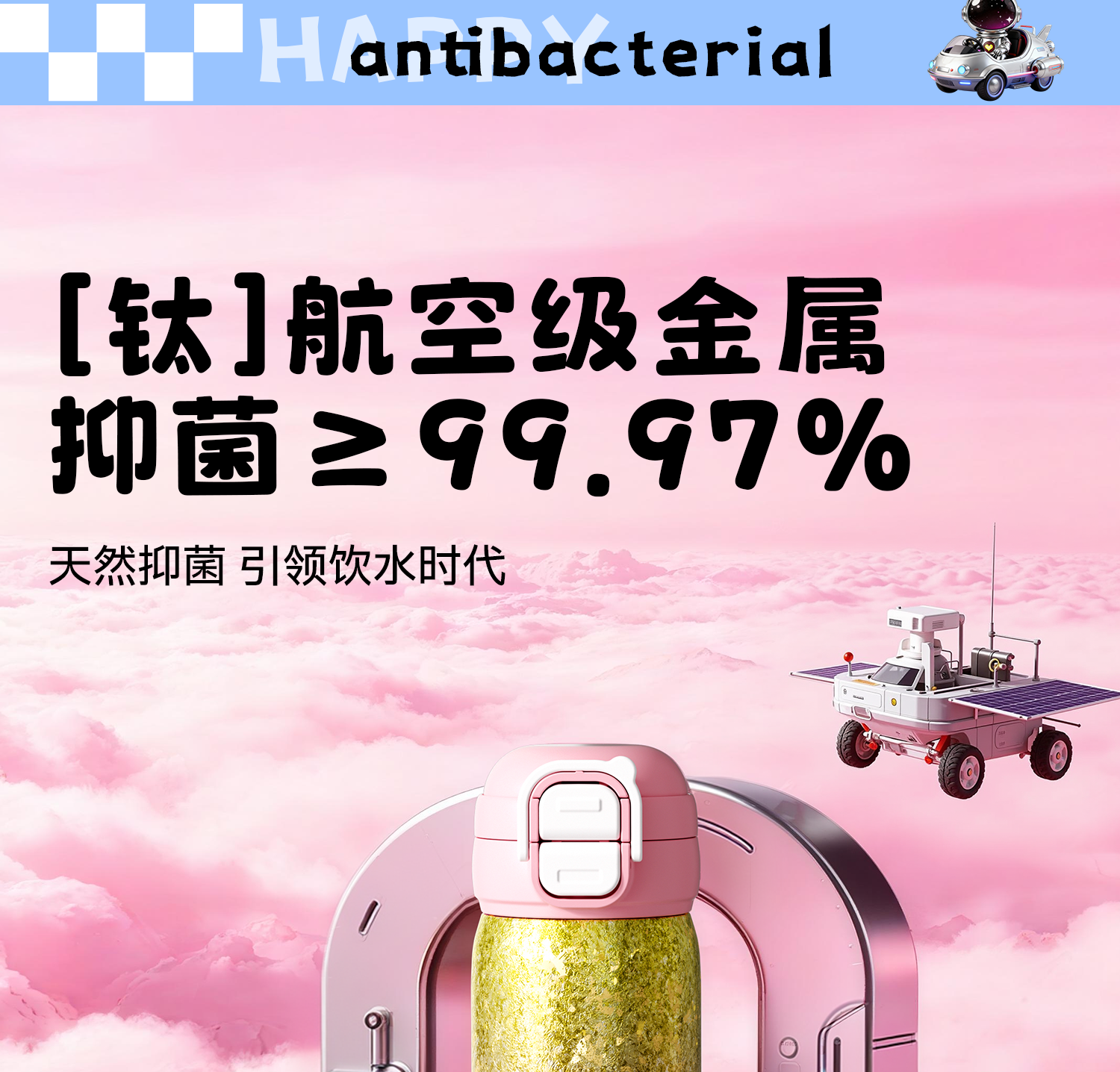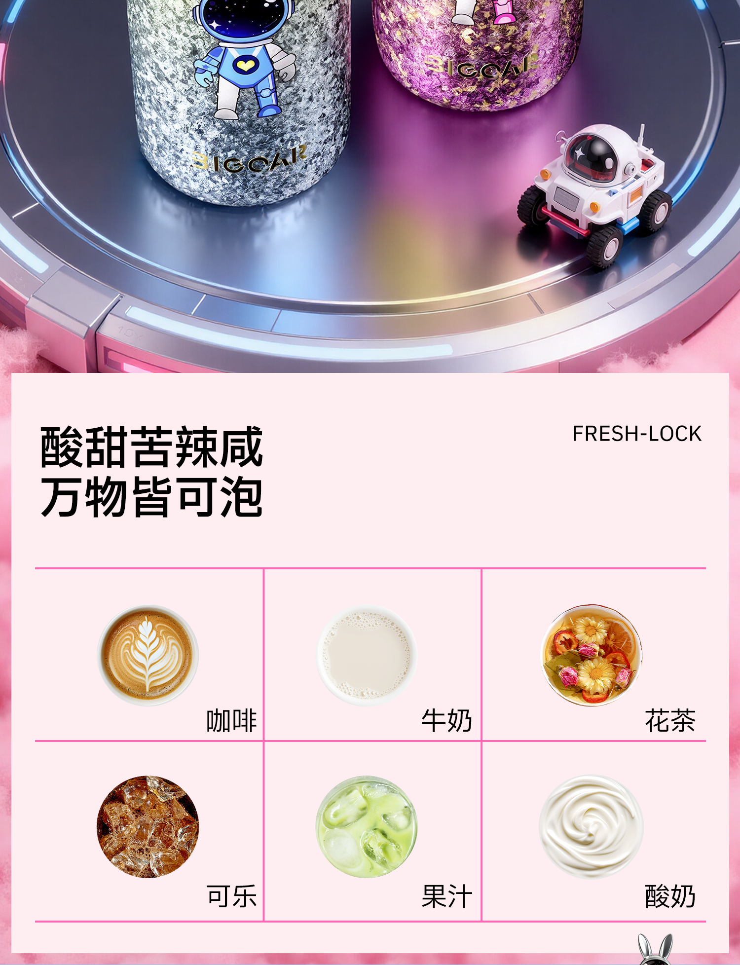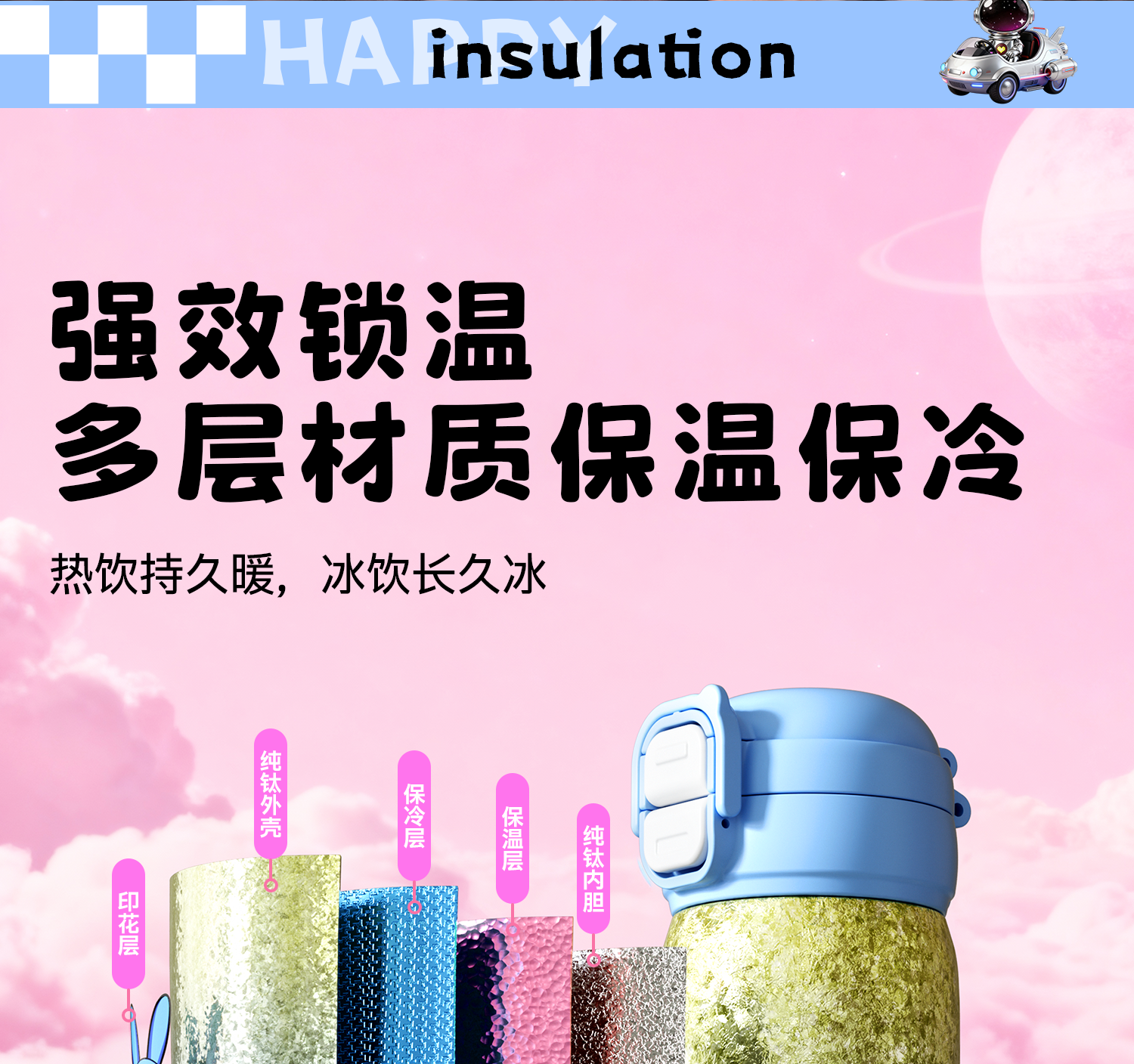 大卡纯钛保温杯小学生水杯便携水杯高颜值双饮吸管杯儿童上学专用水杯 梦幻紫550ML-星空兔【内外纯钛+双饮杯盖】