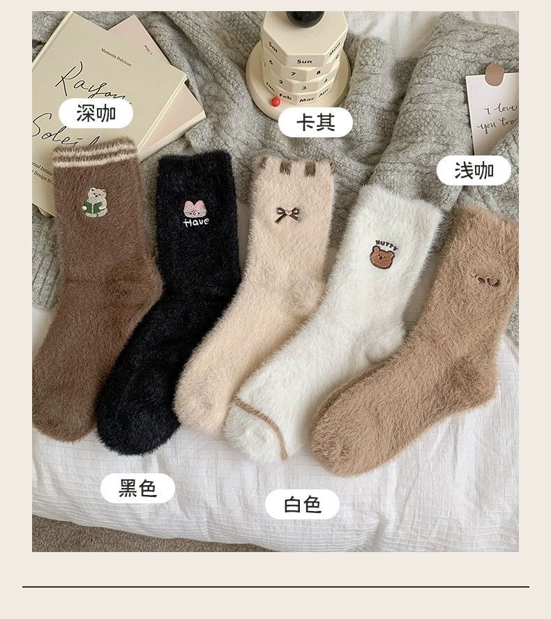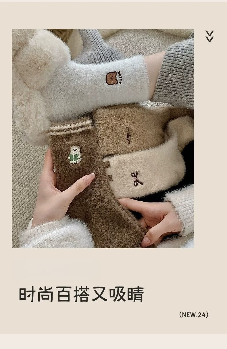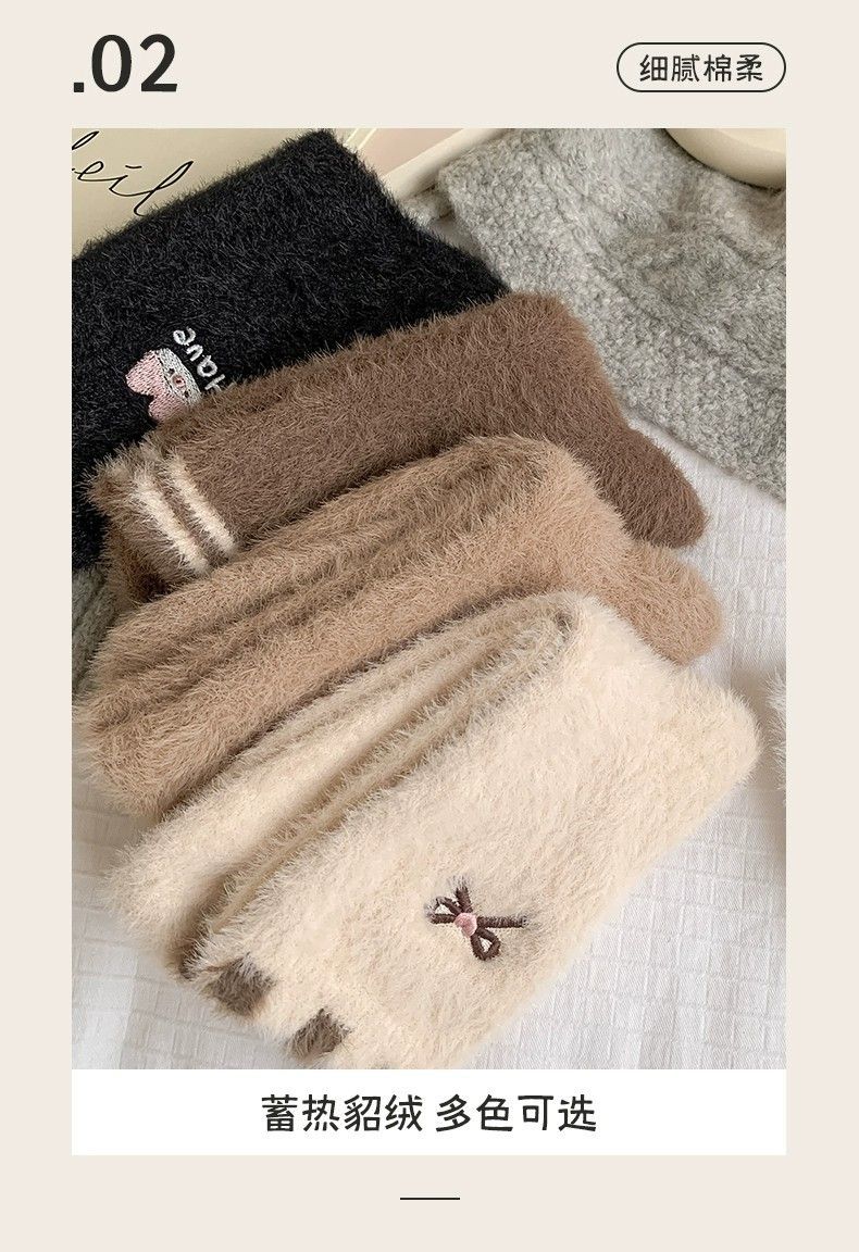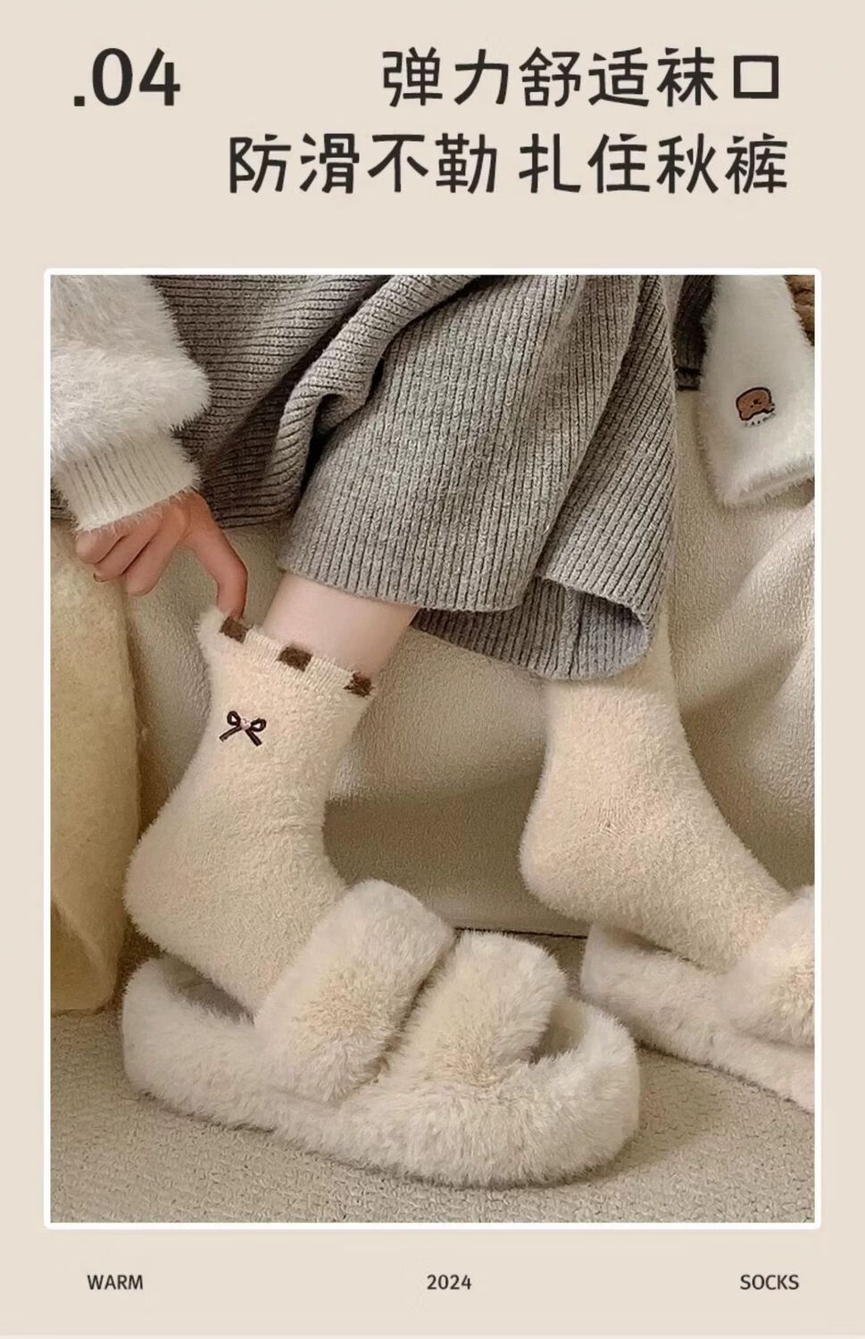 雅鹿袜子女中筒袜加厚保暖卡通日系可爱提花长筒袜秋冬款蝴蝶结毛绒袜 很实惠】五色各二【共10双】 均码 雅鹿 10A抑菌/高弹透气/抗起球