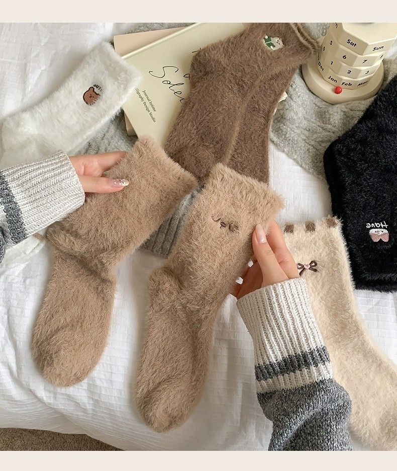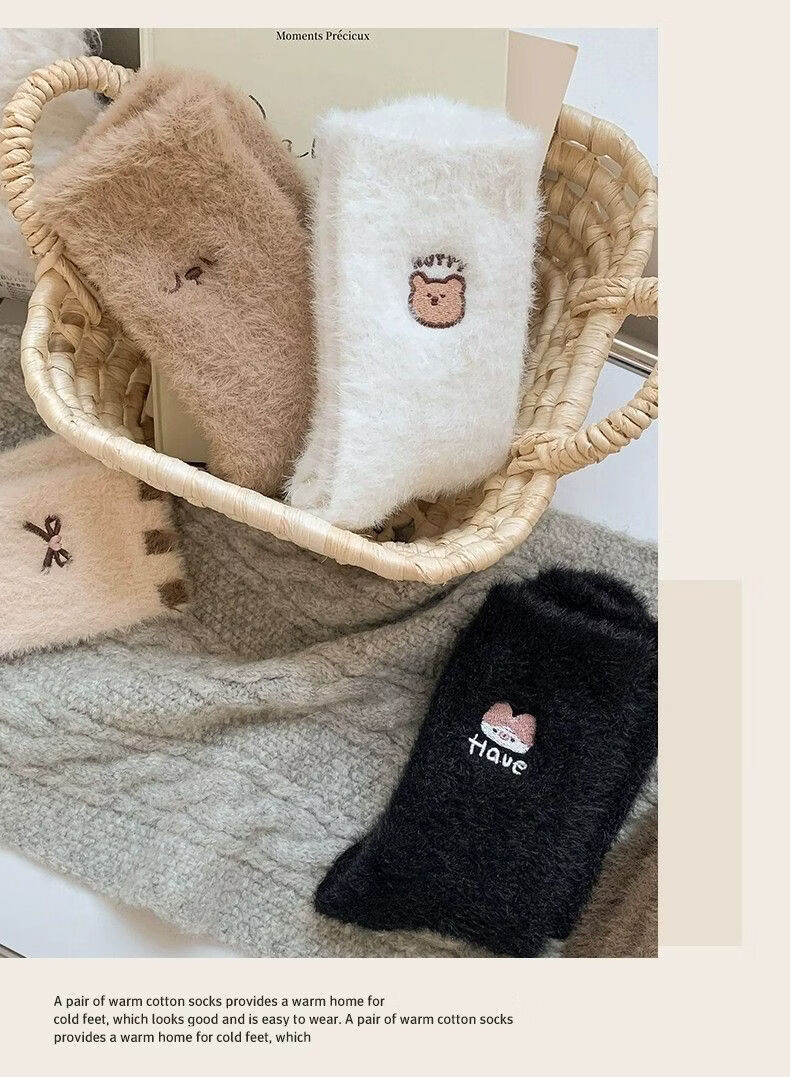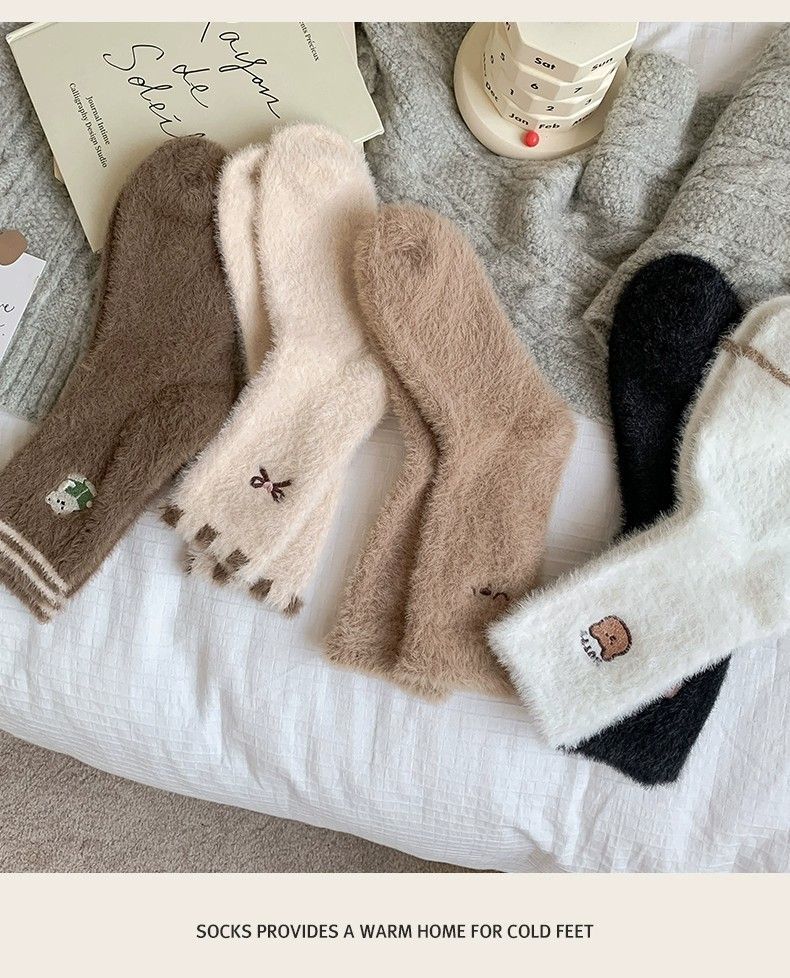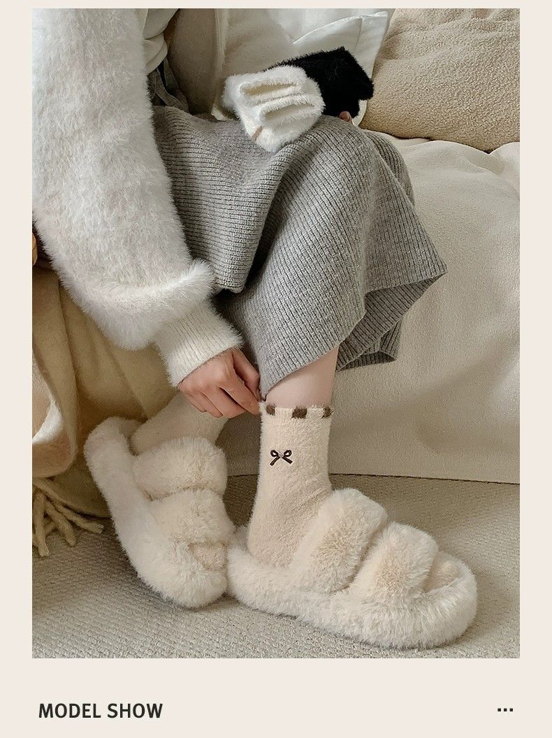 雅鹿袜子女中筒袜加厚保暖卡通日系可爱提花长筒袜秋冬款蝴蝶结毛绒袜 很实惠】五色各二【共10双】 均码 雅鹿 10A抑菌/高弹透气/抗起球