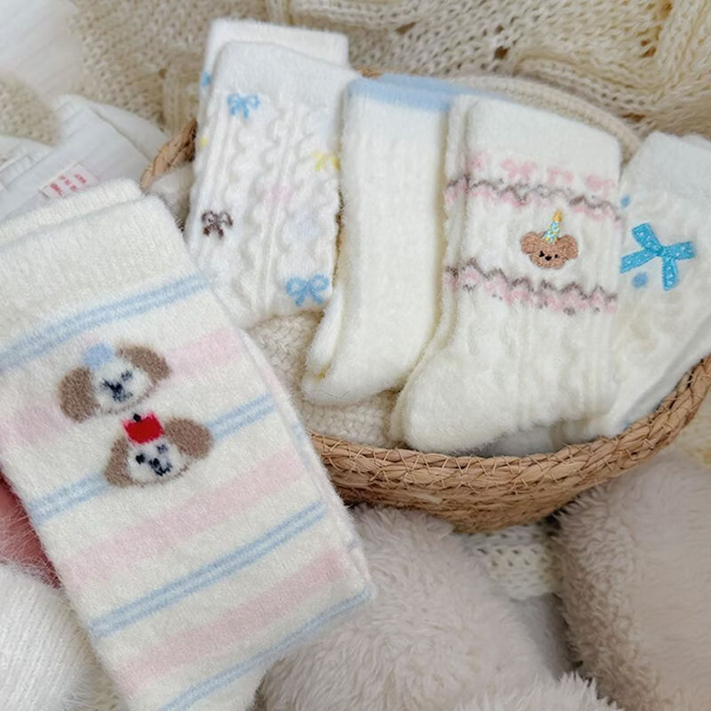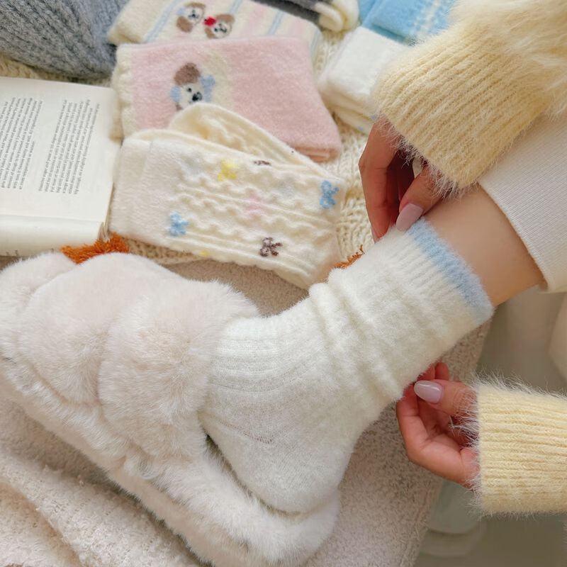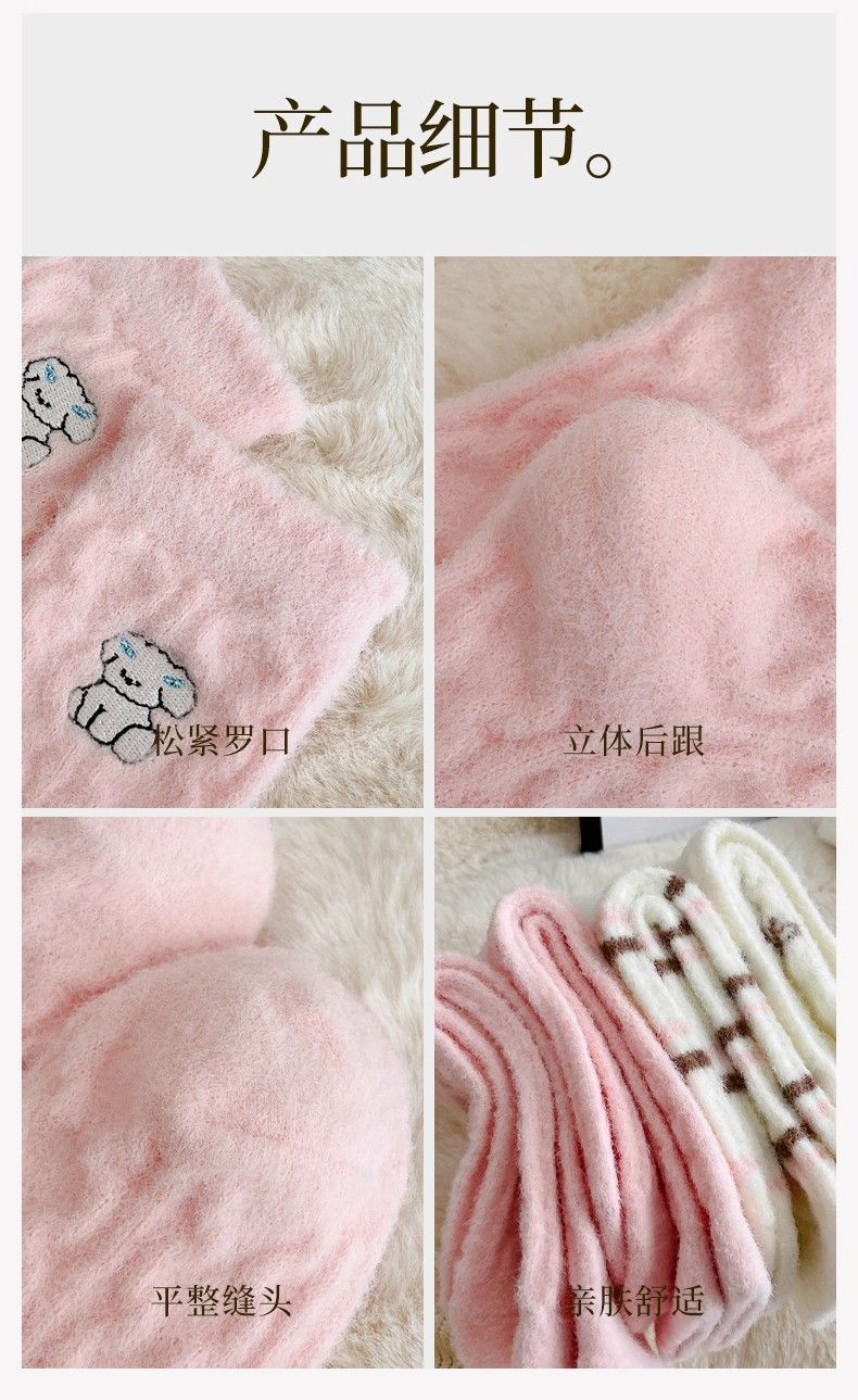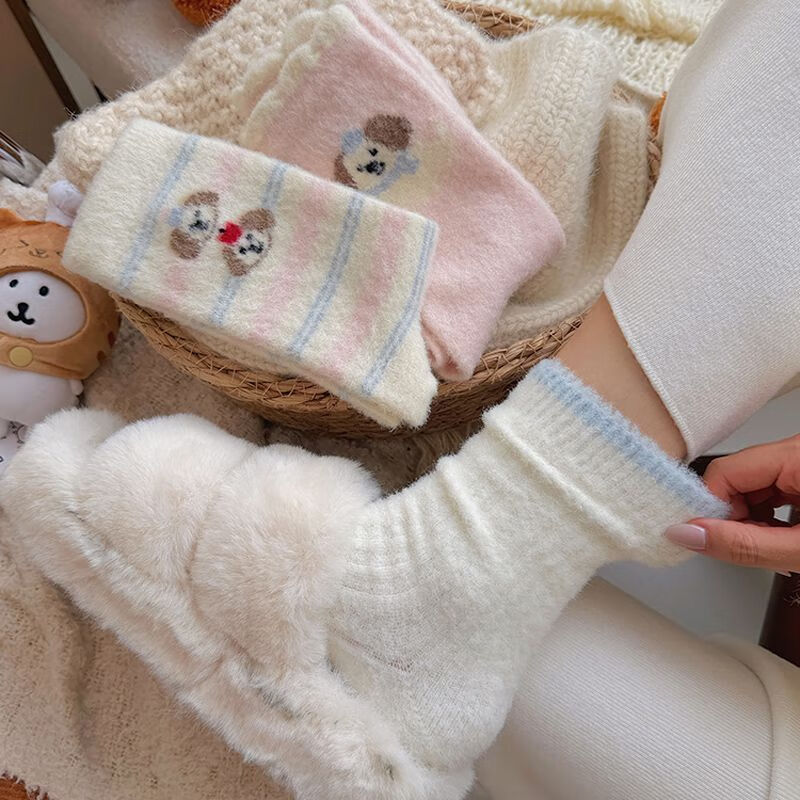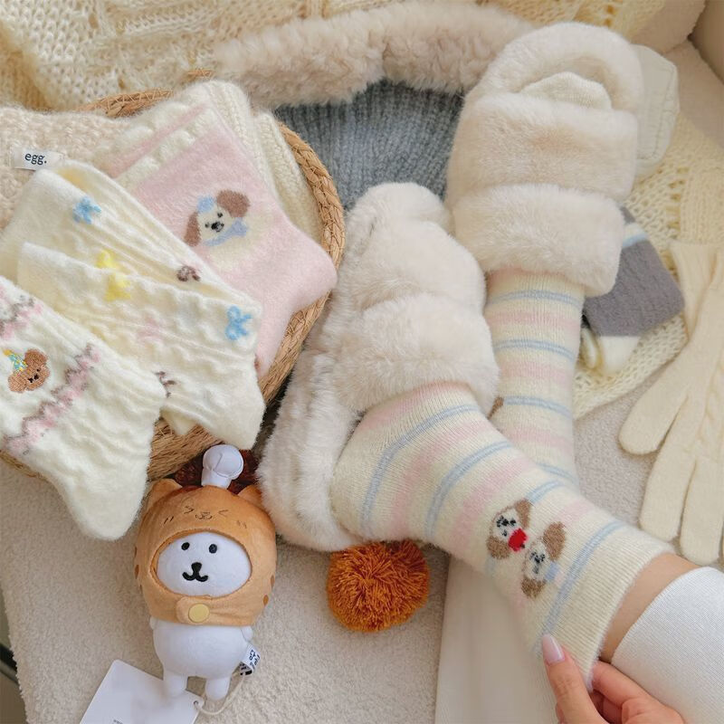 雅鹿卡通小狗毛绒袜加绒加厚保暖长筒袜家居可爱毛茸茸高筒袜学生长袜 很划算】四色各二+随机两色【共10双】 均码 雅鹿 10A抑菌/高弹透气/抗起球