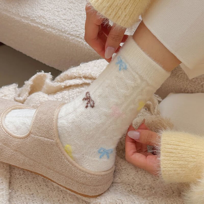 雅鹿袜子男女情侣袜中筒秋冬季加绒加厚底保暖毛圈袜潮流长冬天袜女士 颜色混搭 2双 均码