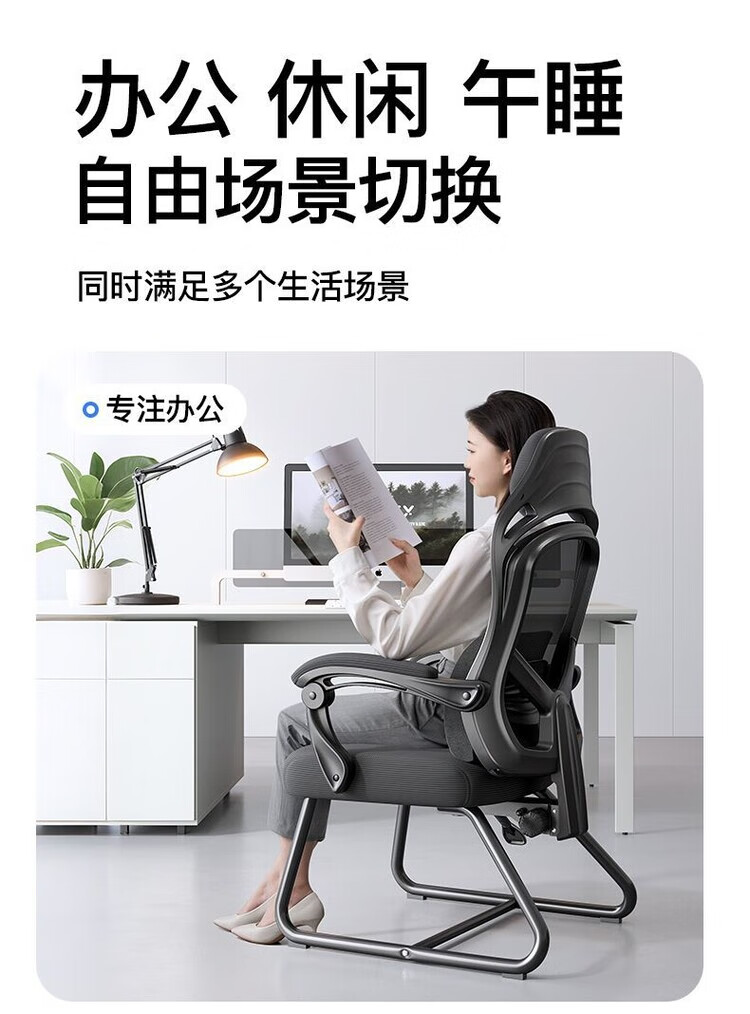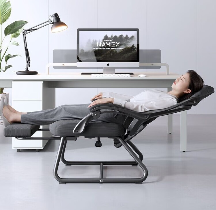 弘星隆办公室座椅午睡休两用可坐可躺椅子人体工学椅靠背椅家用电脑力学 【下单送腰枕】耀晶黑 无搁脚