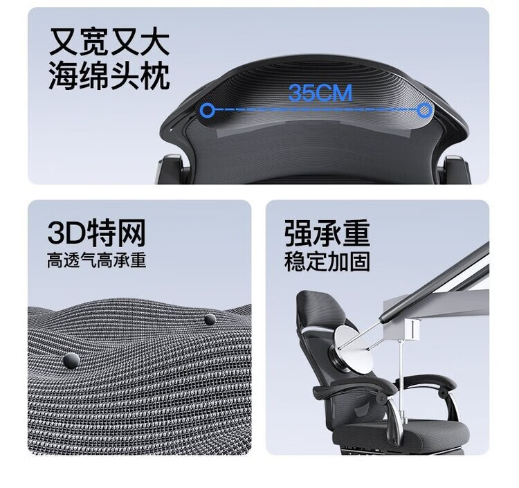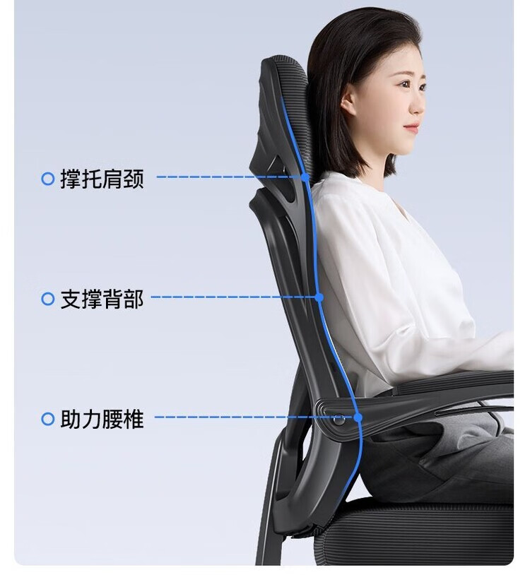 弘星隆电脑椅家用人体工学椅子靠背学习写字椅书房座椅办公椅电竞游戏椅 白框黑网可躺丨3D腰靠+3D头枕