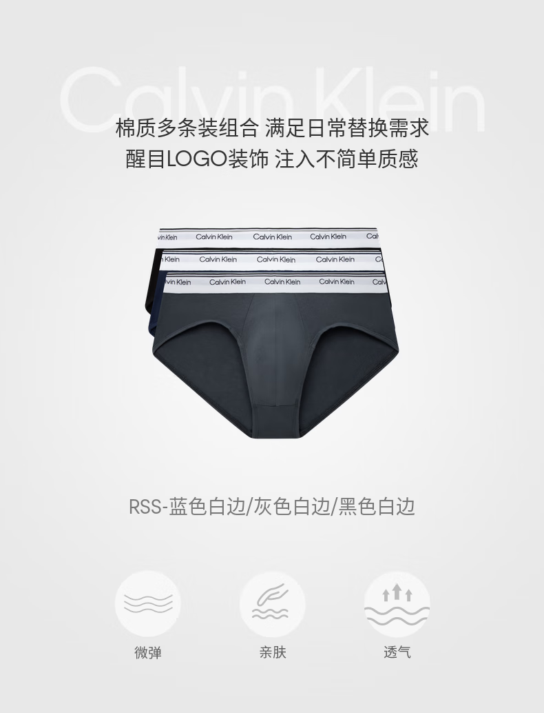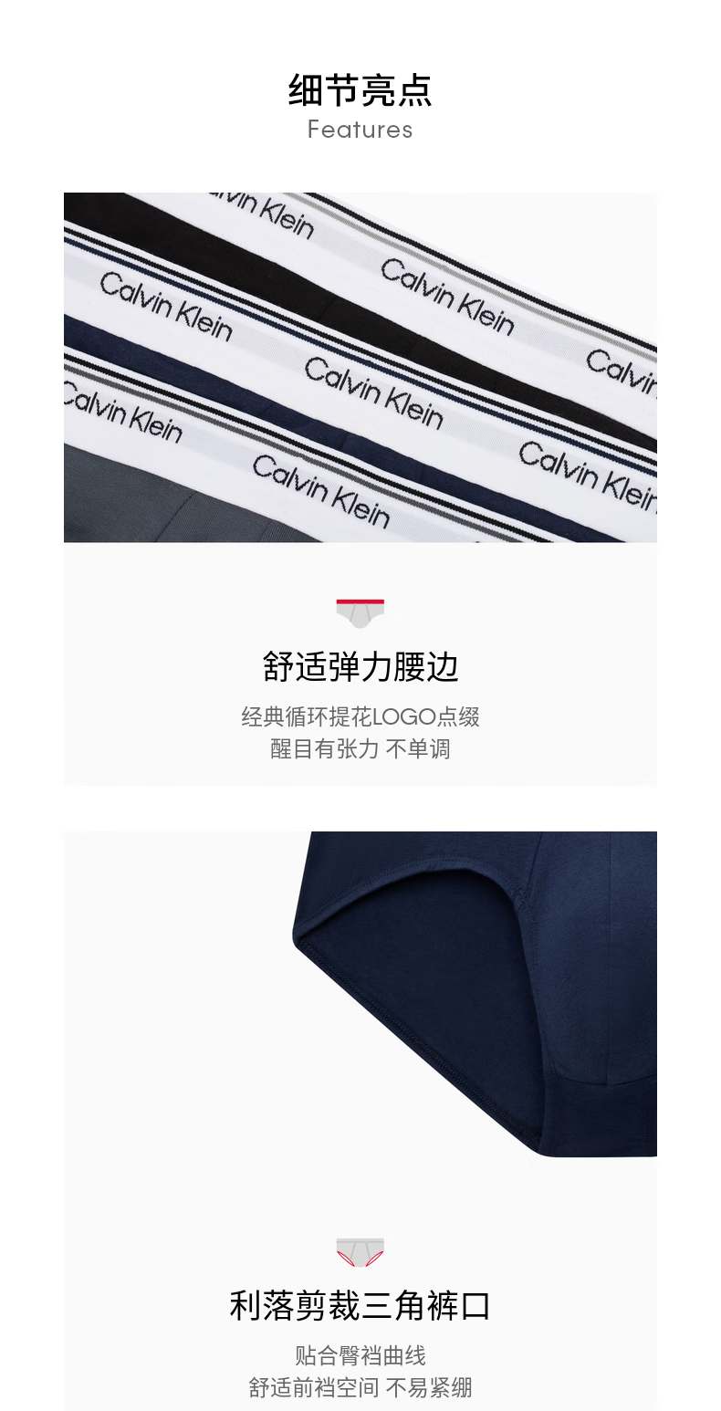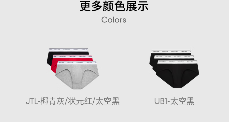 Calvin Klein内衣【圣诞礼物】25男士本命年新年红三条装提花ck棉质三角内裤男 JTL-椰青灰/状元红/太空黑 3条 L