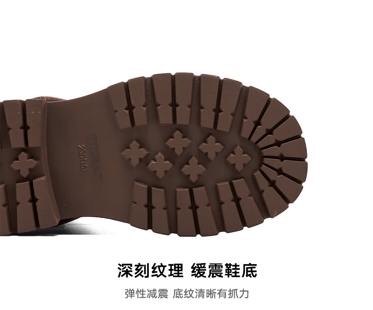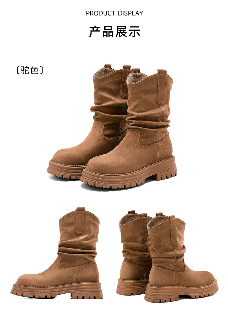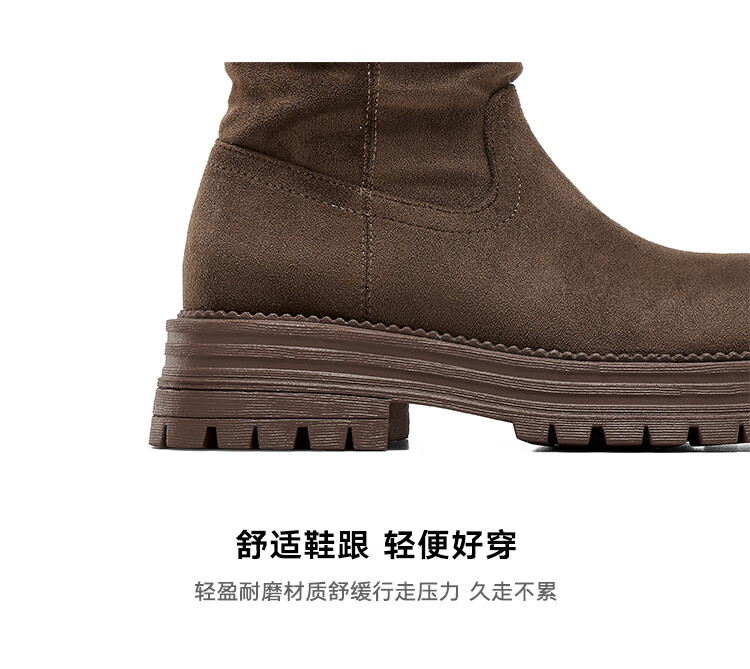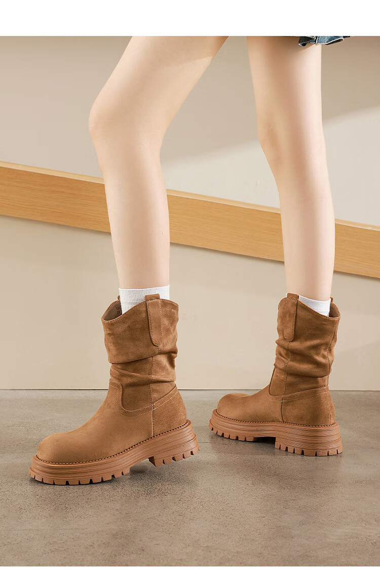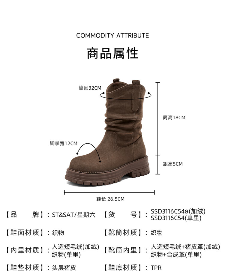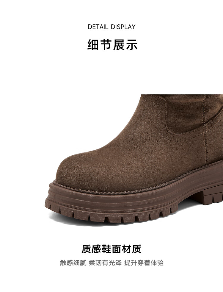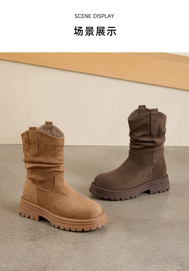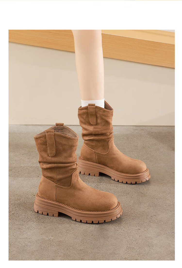 星期六美拉德短靴女款2025秋冬复古简约时装靴新款百搭粗跟绒面堆堆短靴 咖啡色【加绒款】 36
