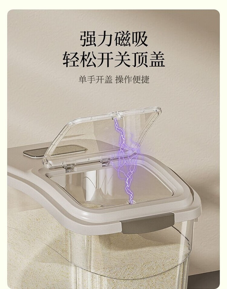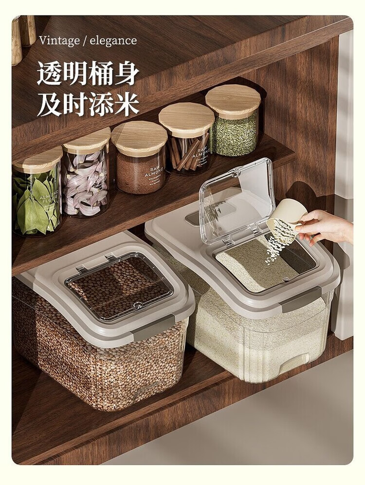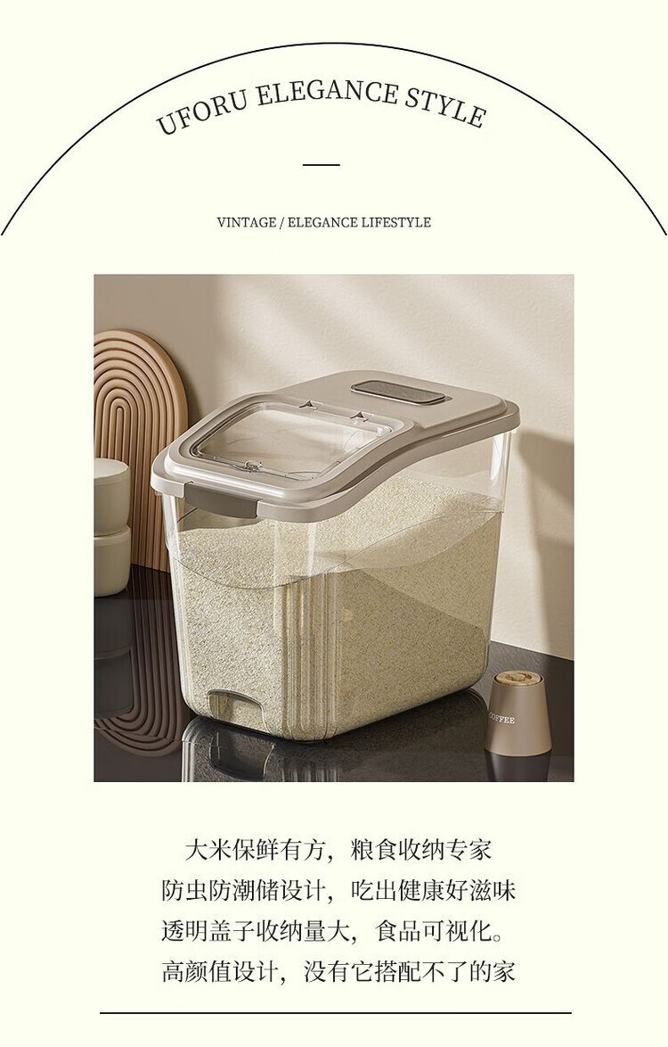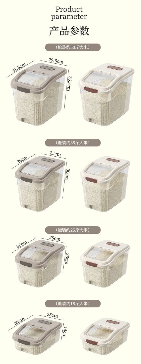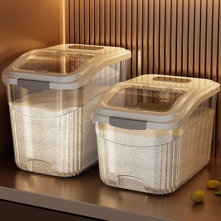 简漾米桶收纳桶防虫防潮密封桶家用食品级大容量储米罐25斤35斤装米桶 加厚【摩卡珈28斤】-中号+磁吸开关 PP食品级透明米桶【送300ml米杯】