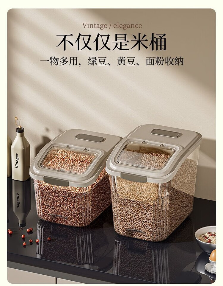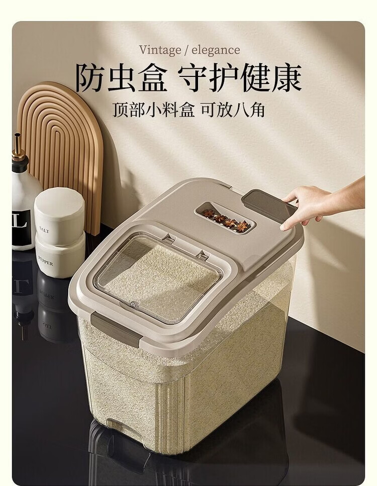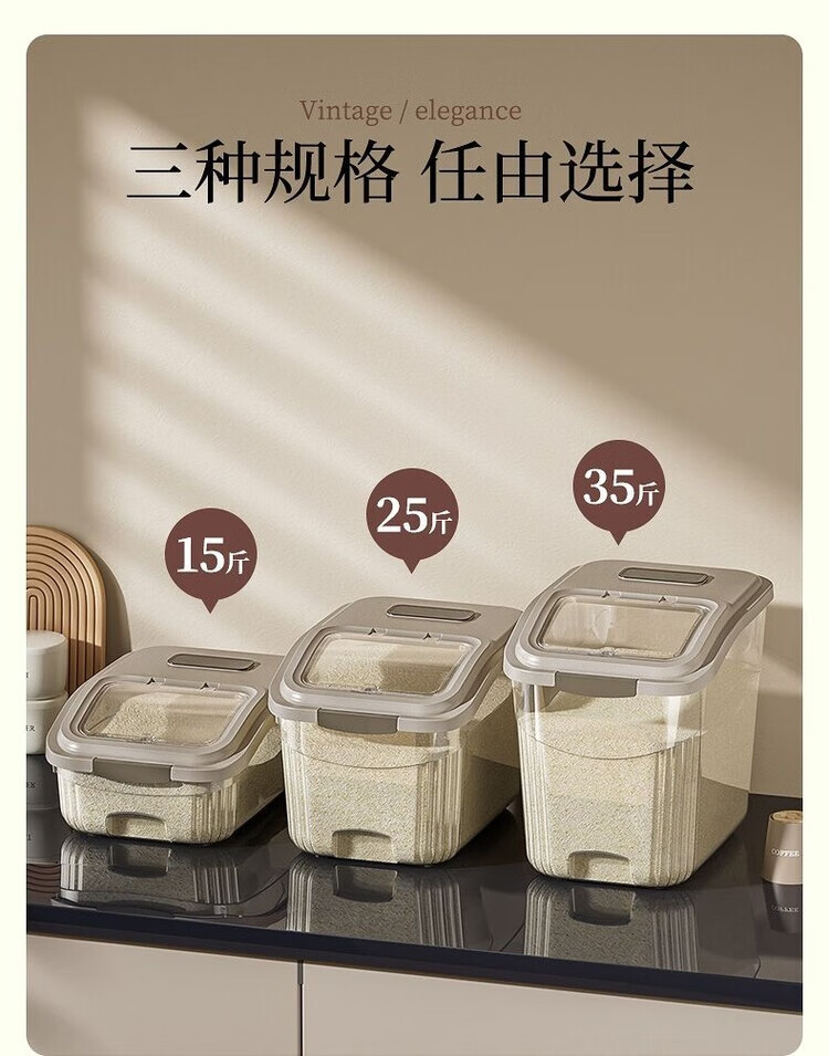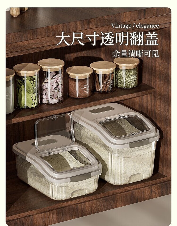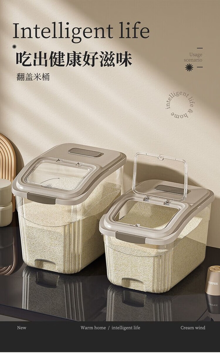简漾米桶收纳桶防虫防潮密封桶家用食品级大容量储米罐25斤35斤装米桶 加厚【摩卡珈28斤】-中号+磁吸开关 PP食品级透明米桶【送300ml米杯】