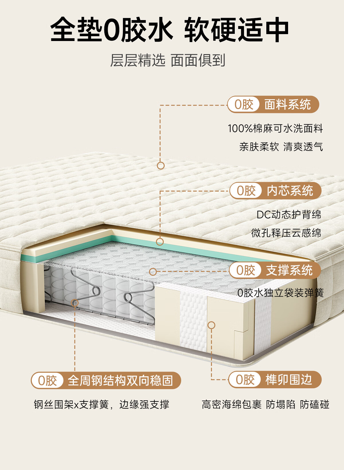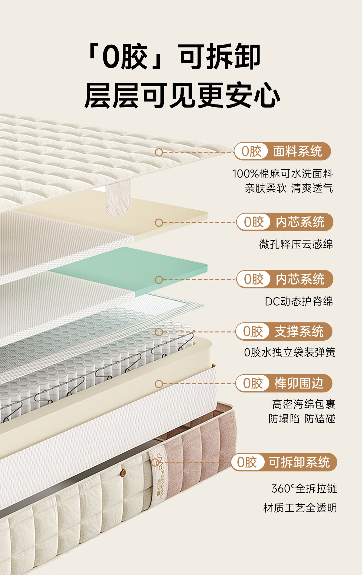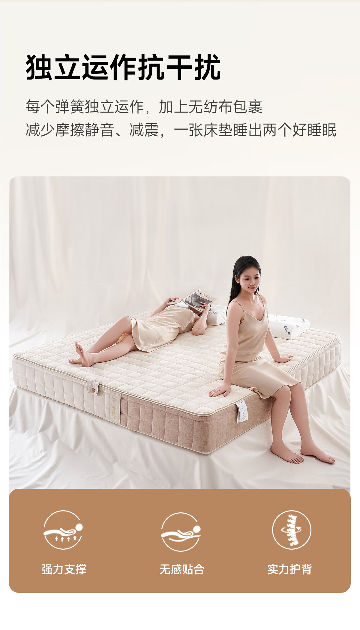 帕沙曼席梦思床垫家用卧室双人独立弹簧床垫20cm厚0胶水可拆洗垫Z0016 全垫0胶水可拆洗【棉麻面料+云感棉+护脊棉+独立弹簧】 1800*2000mm