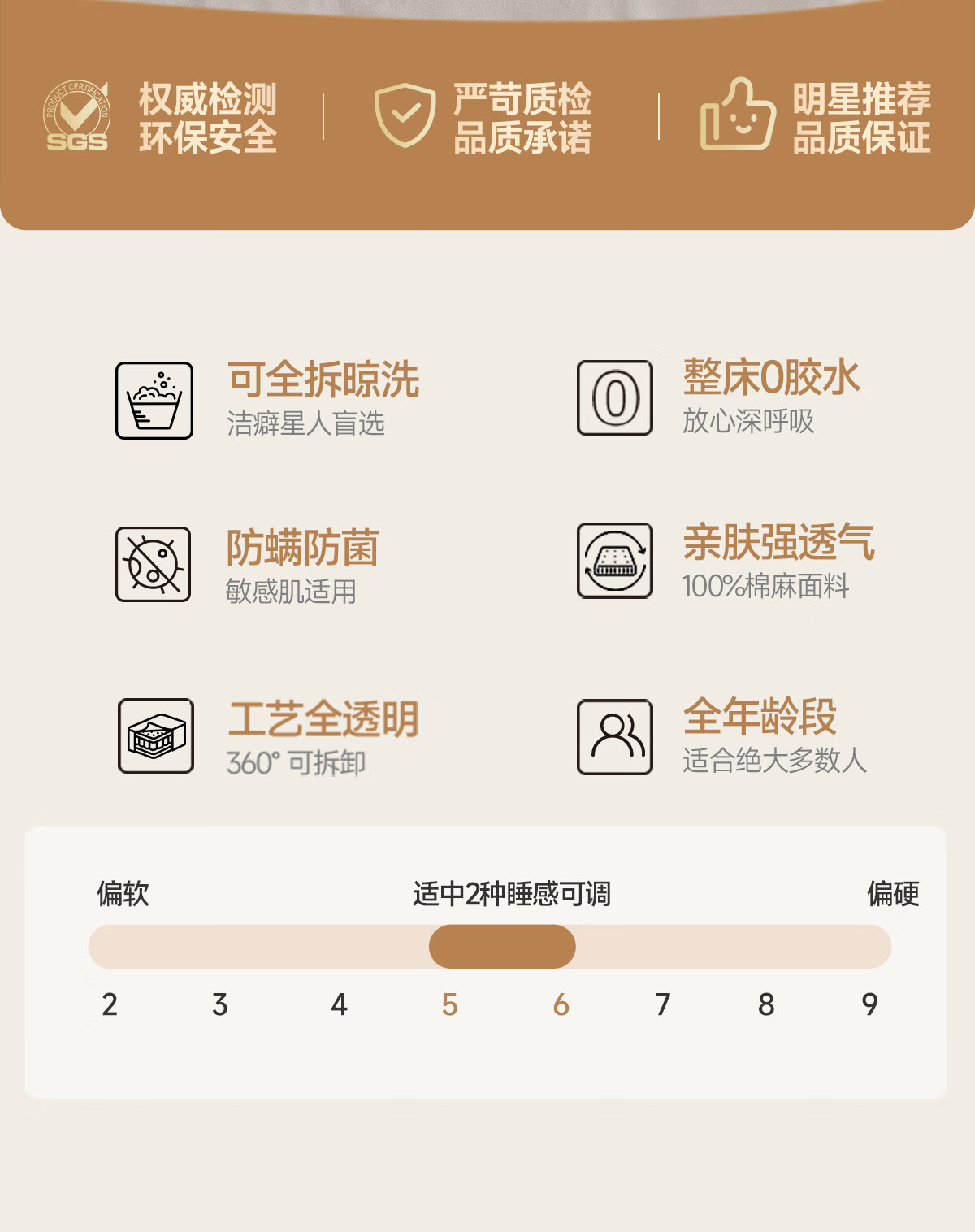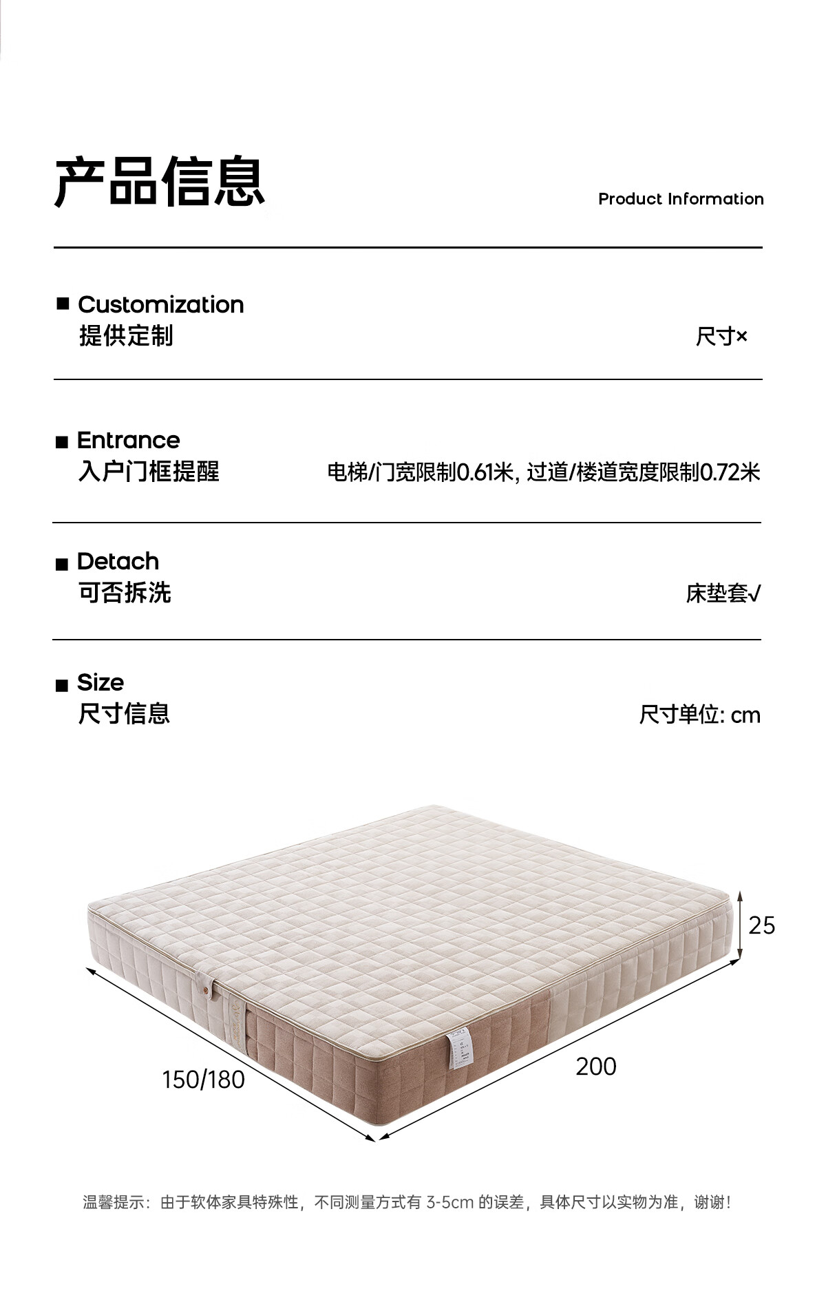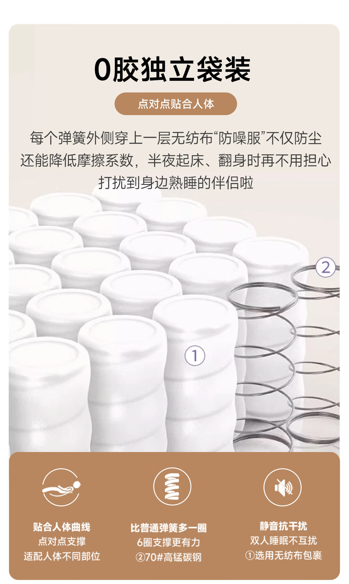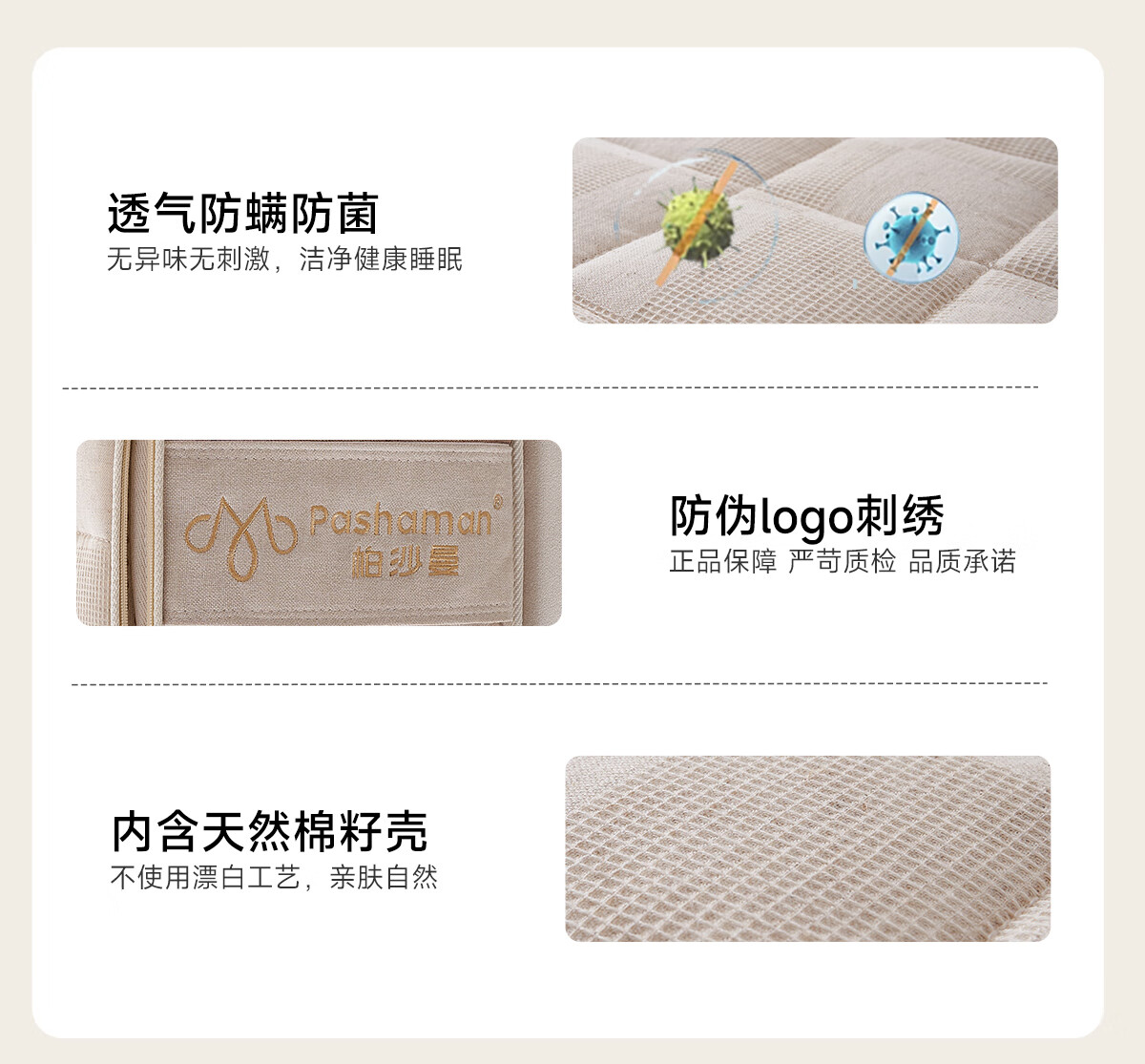 帕沙曼席梦思床垫家用卧室双人独立弹簧床垫20cm厚0胶水可拆洗垫Z0016 全垫0胶水可拆洗【棉麻面料+云感棉+护脊棉+独立弹簧】 1800*2000mm