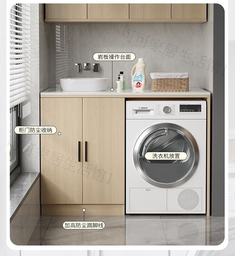 迈途森洗衣机伴侣定制简约多层实木+厚岩板台面防晒防水防潮洗衣机置物 银梨实木65宽60深88高不带岩板生态实木