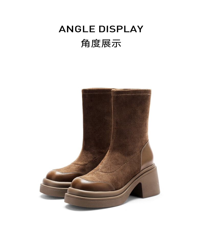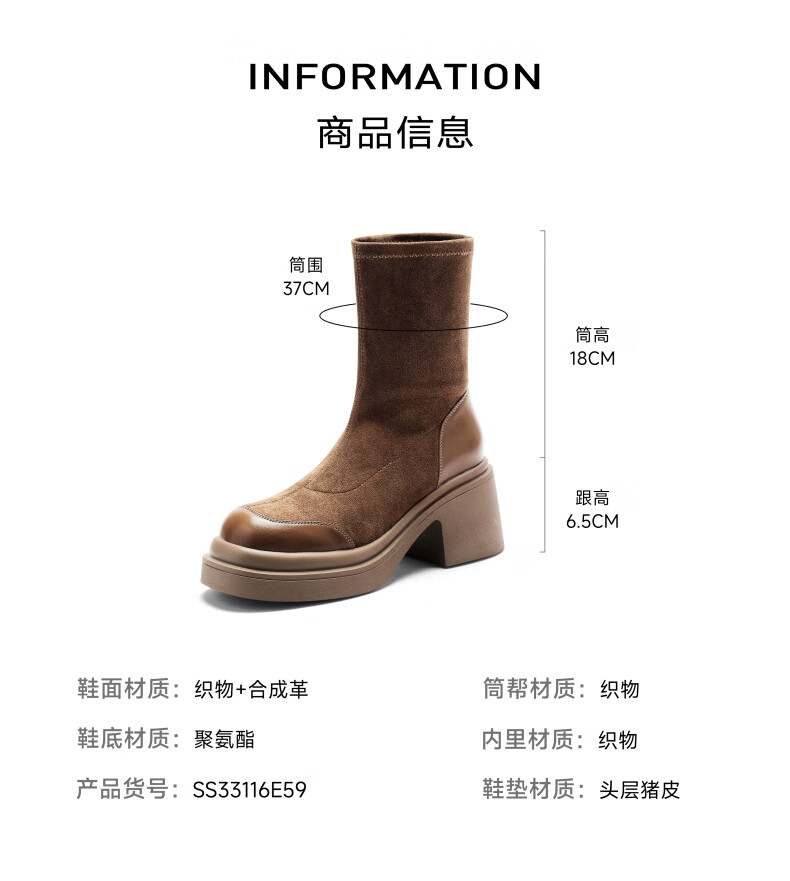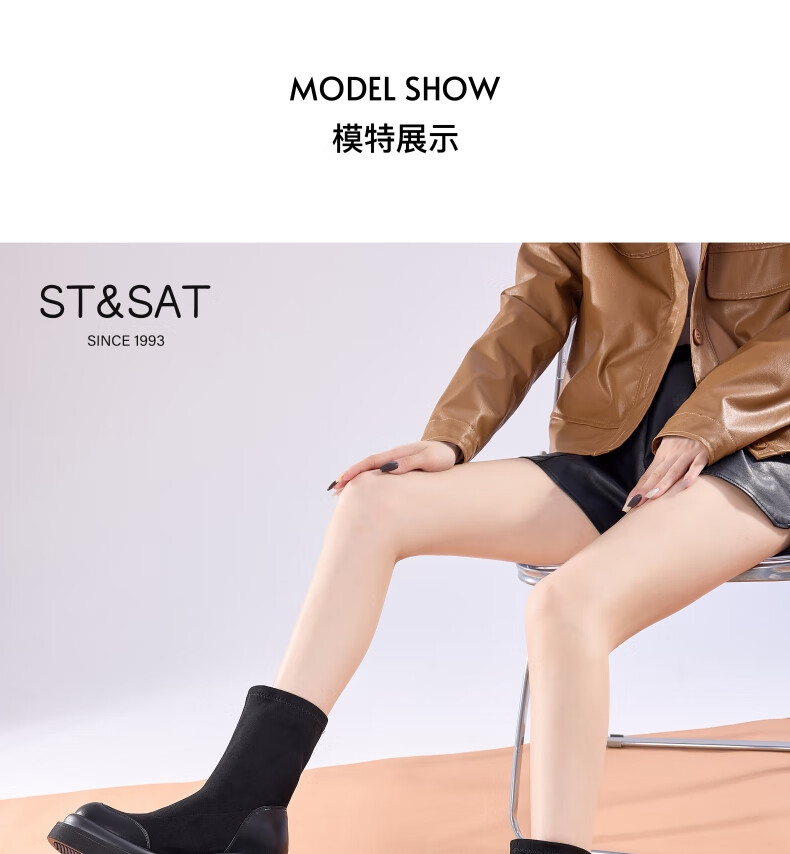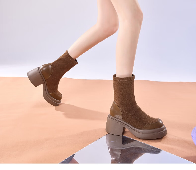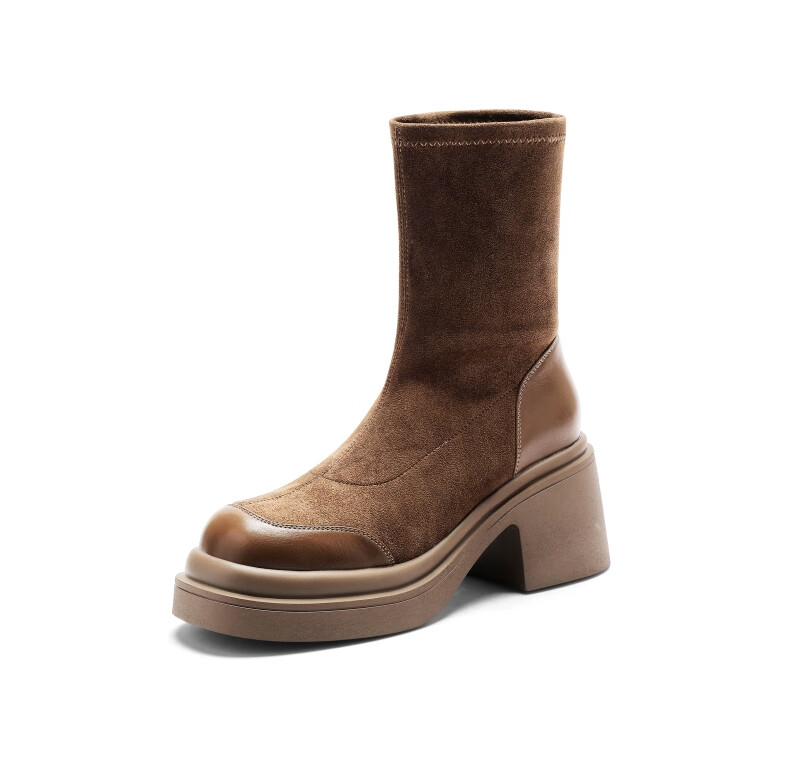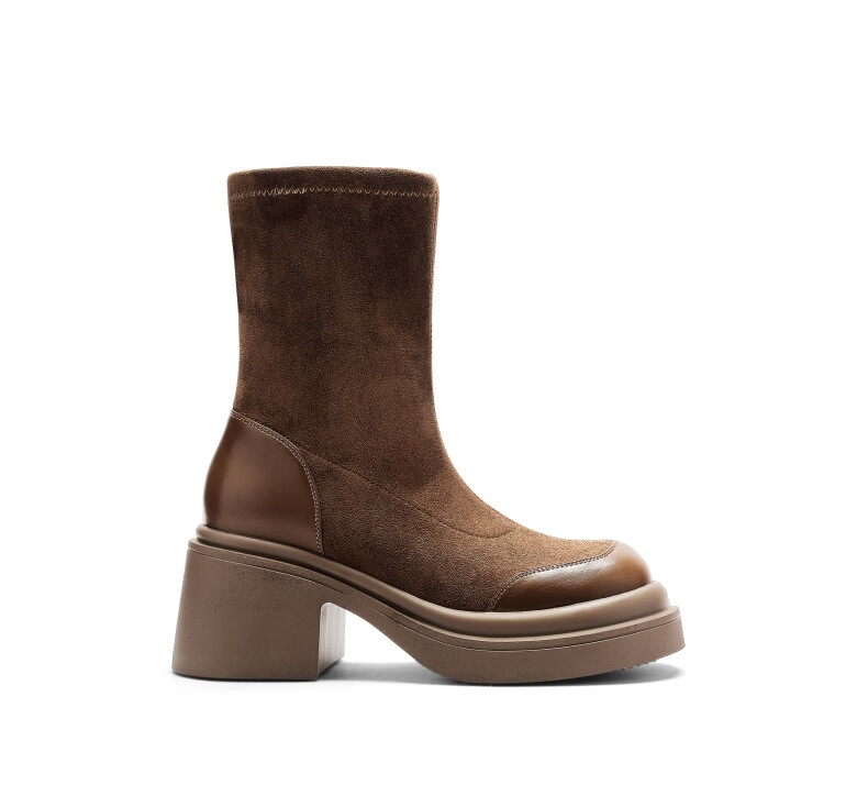星期六(St&Sat)时装靴女2025新款英伦风时尚百搭厚底圆头短靴 咖啡色 36