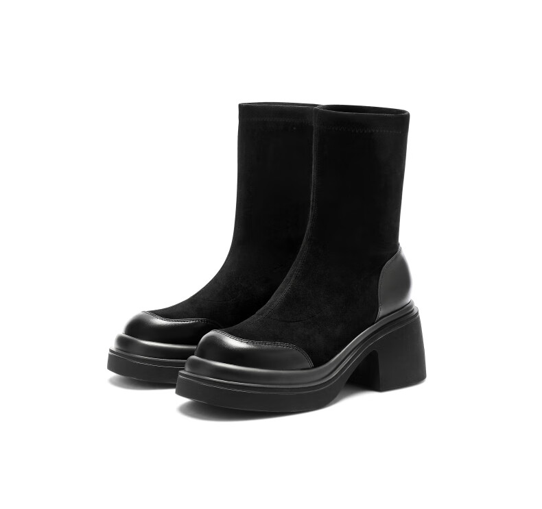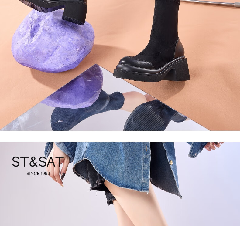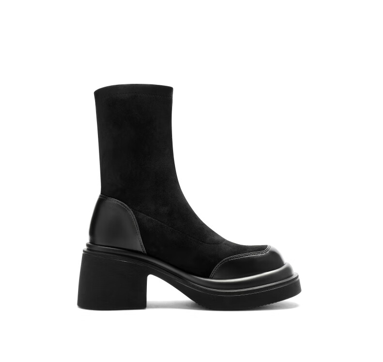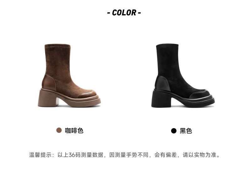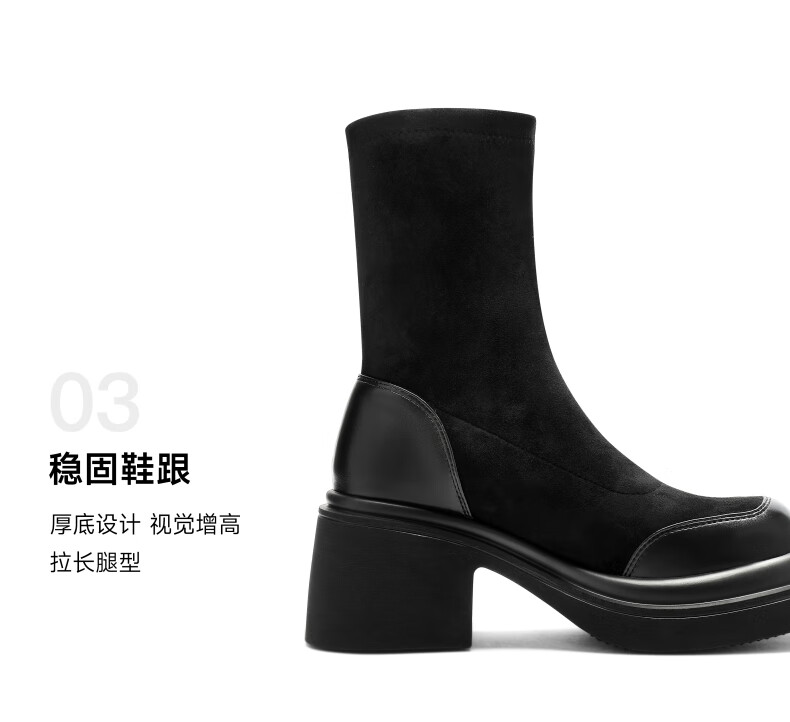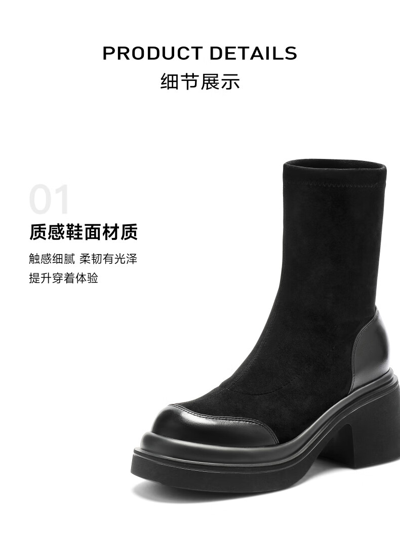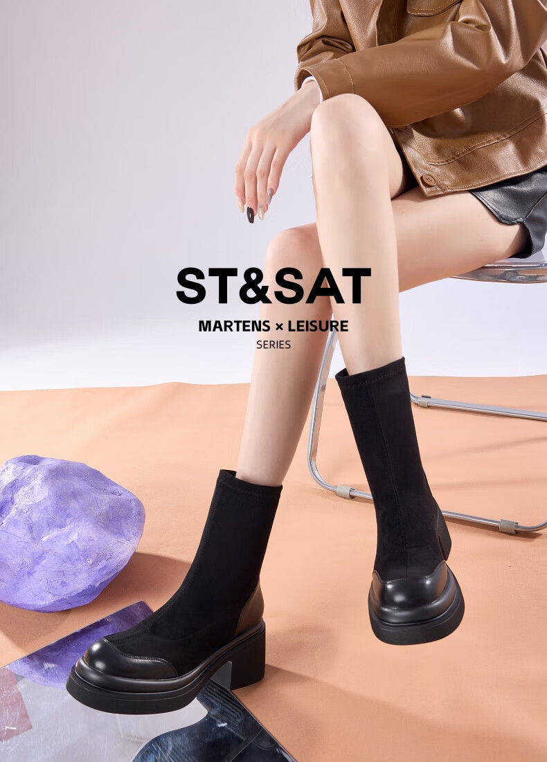 星期六(St&Sat)时装靴女2025新款英伦风时尚百搭厚底圆头短靴 咖啡色 36