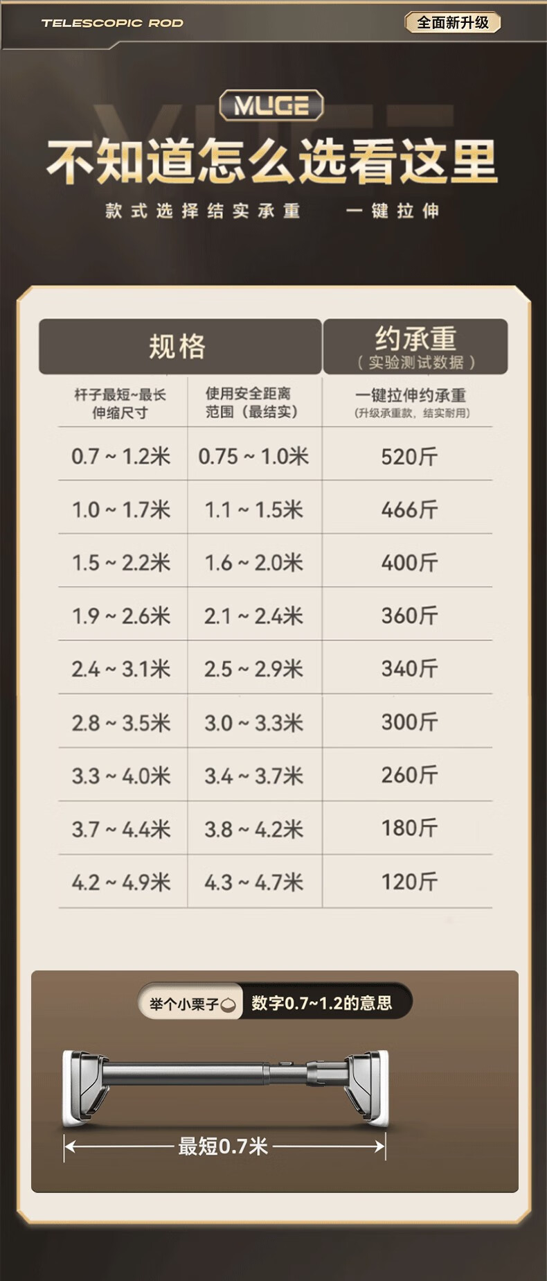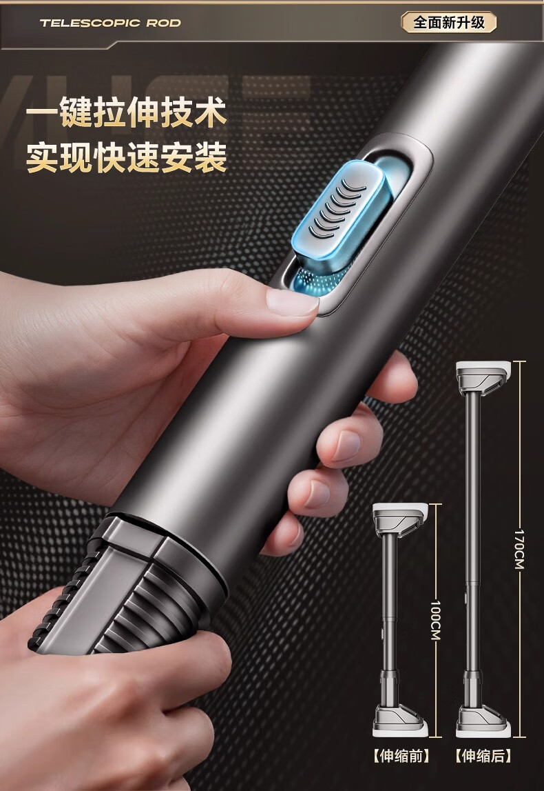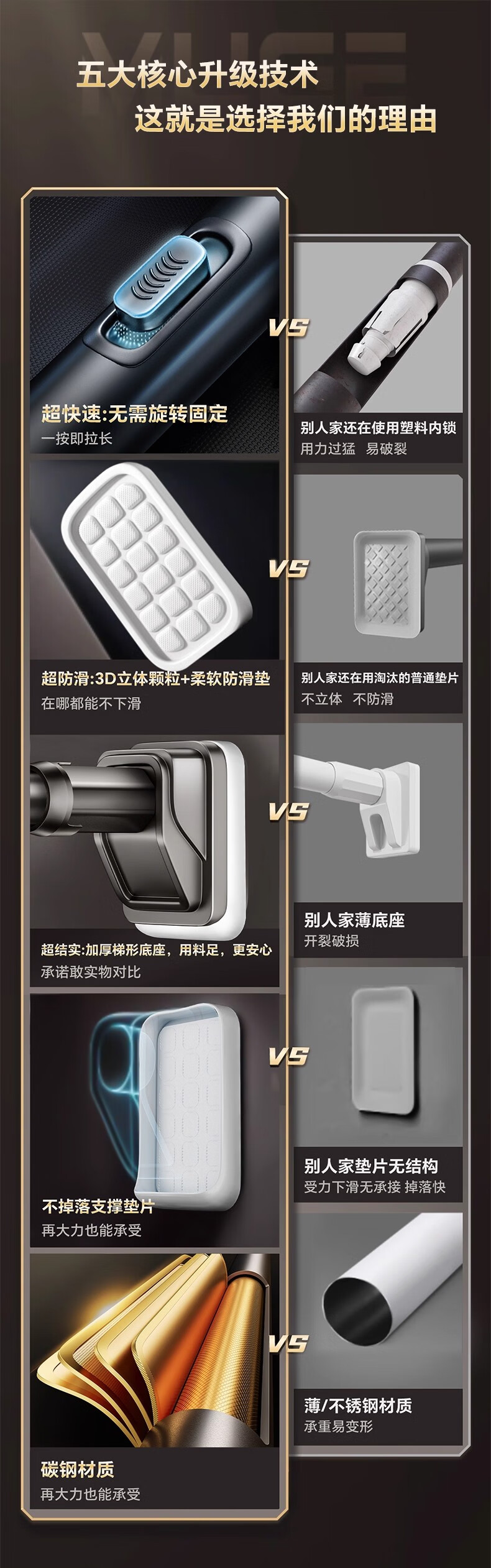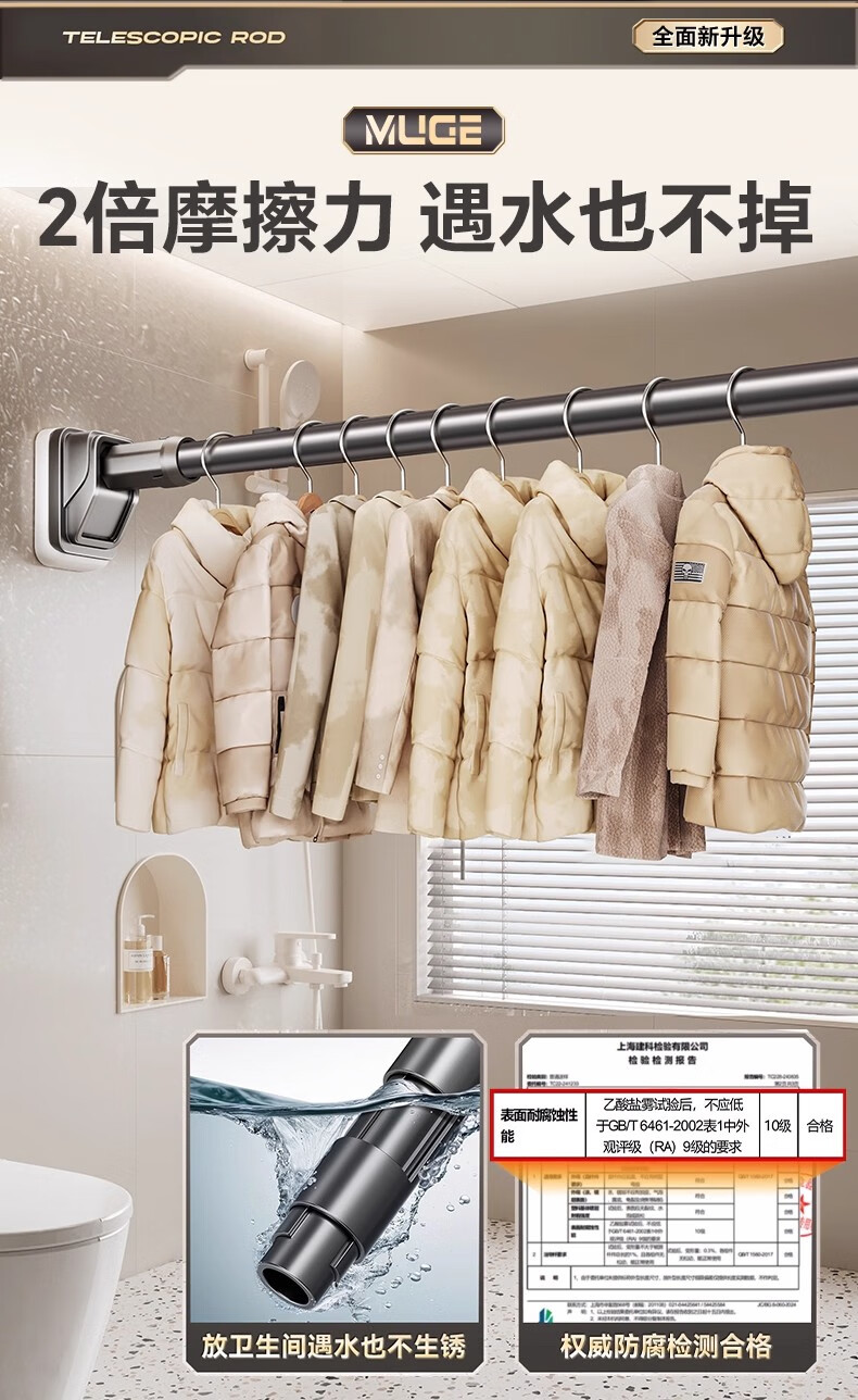 沐阁伸缩杆免打孔晾衣杆阳台固定不锈钢卫生间浴帘杆衣柜挂衣杆窗帘杆 【绅士黑】承重结实款(旋转伸缩丨承重490斤) 33超粗管径,3.3~4.0米内(掉落包赔)