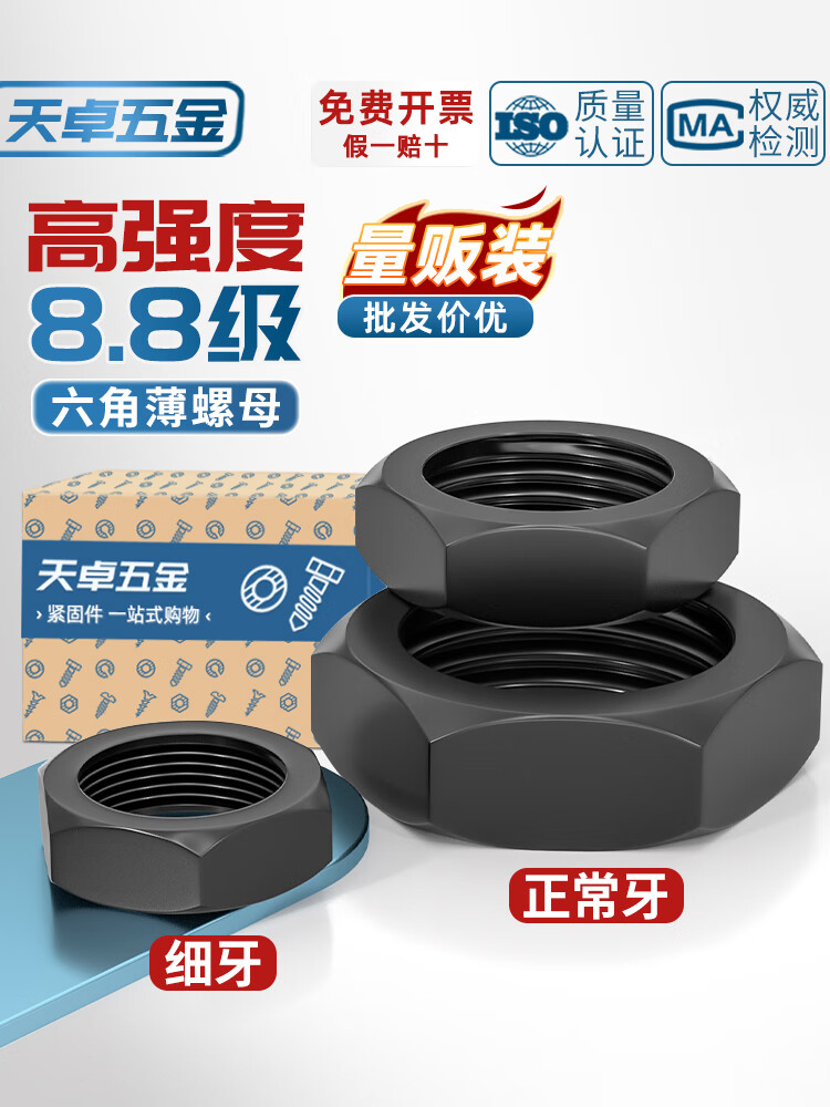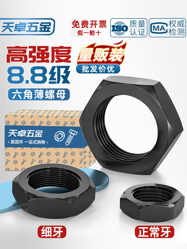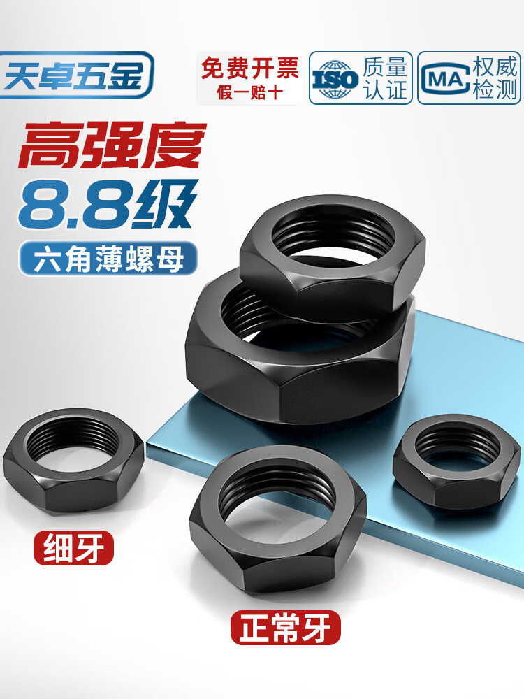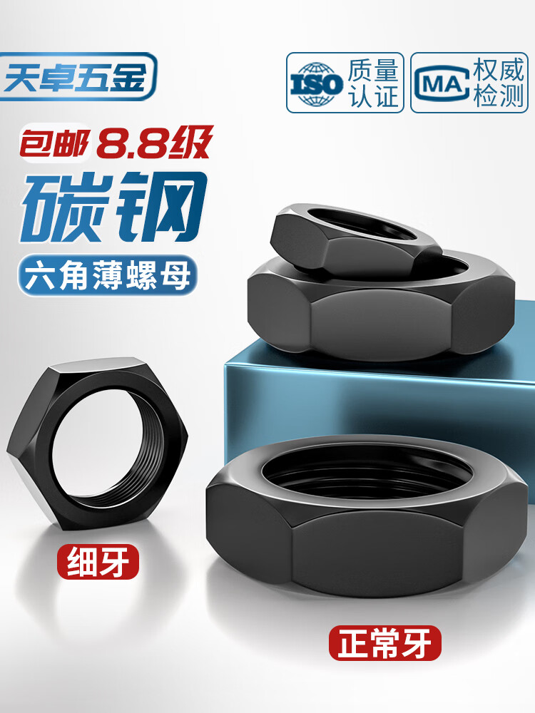 天卓五金8.8级粗牙六角薄螺母扁螺帽MM8M10M12M14M16M18M20M22M24M30M33M M24【8个】8.8薄粗牙