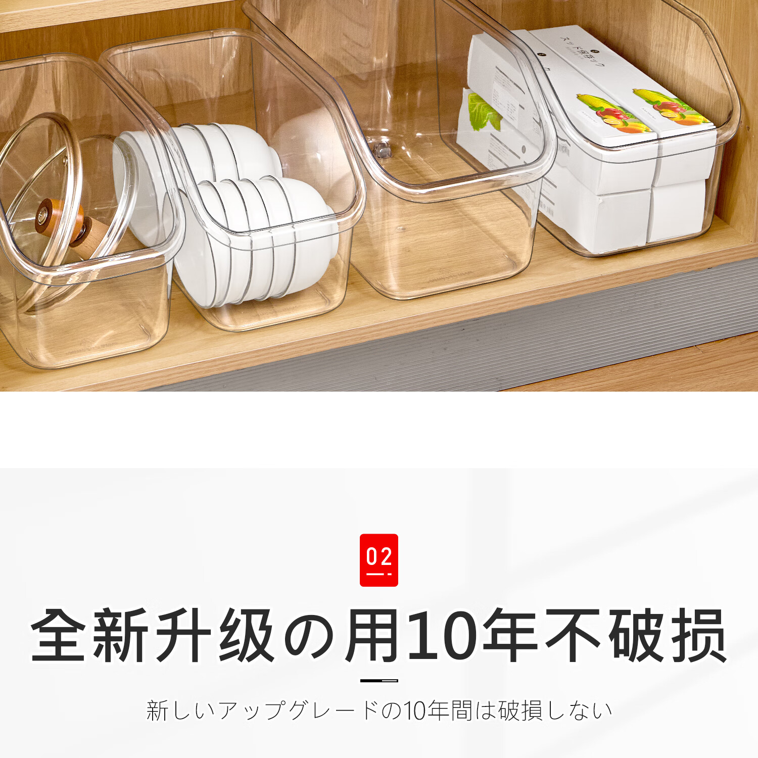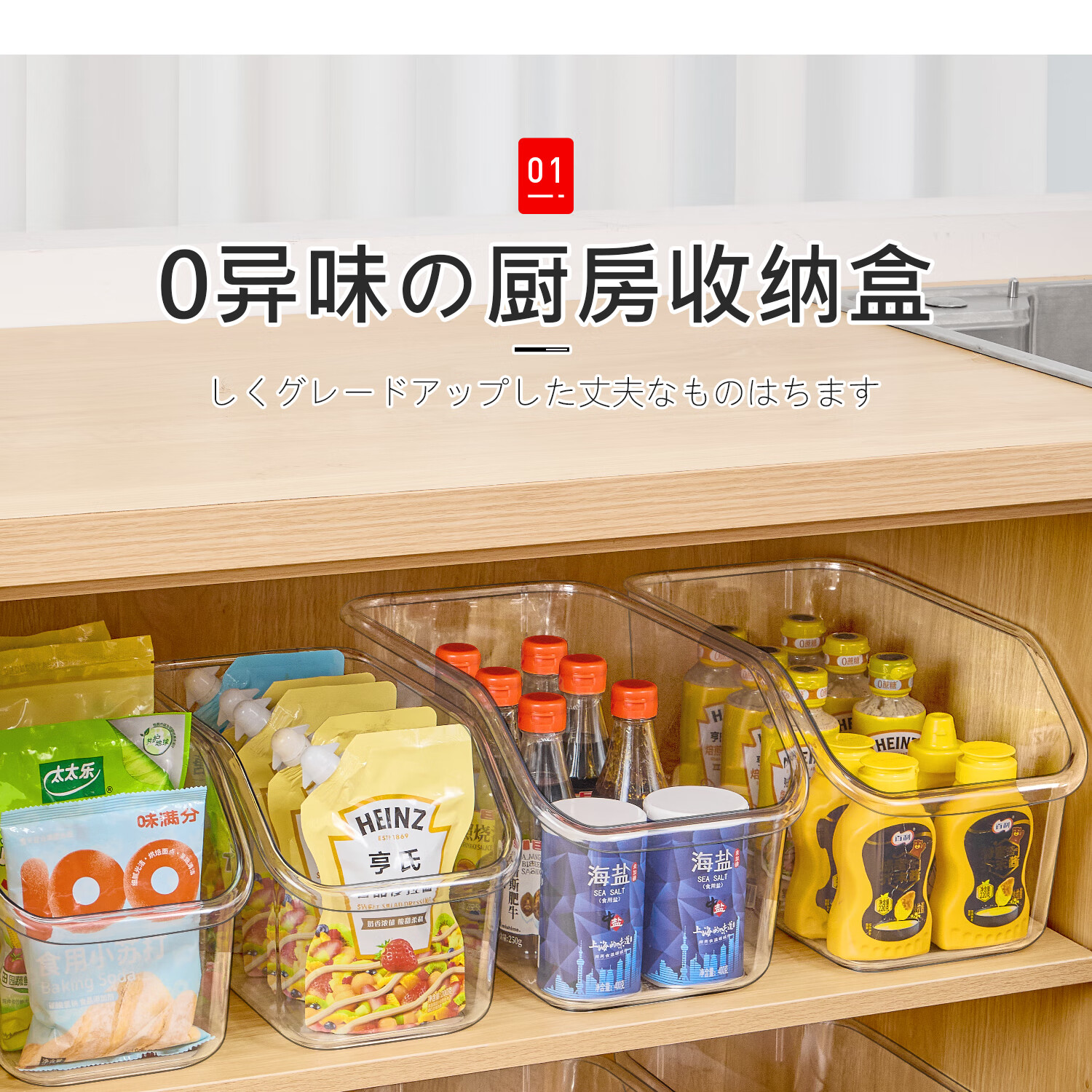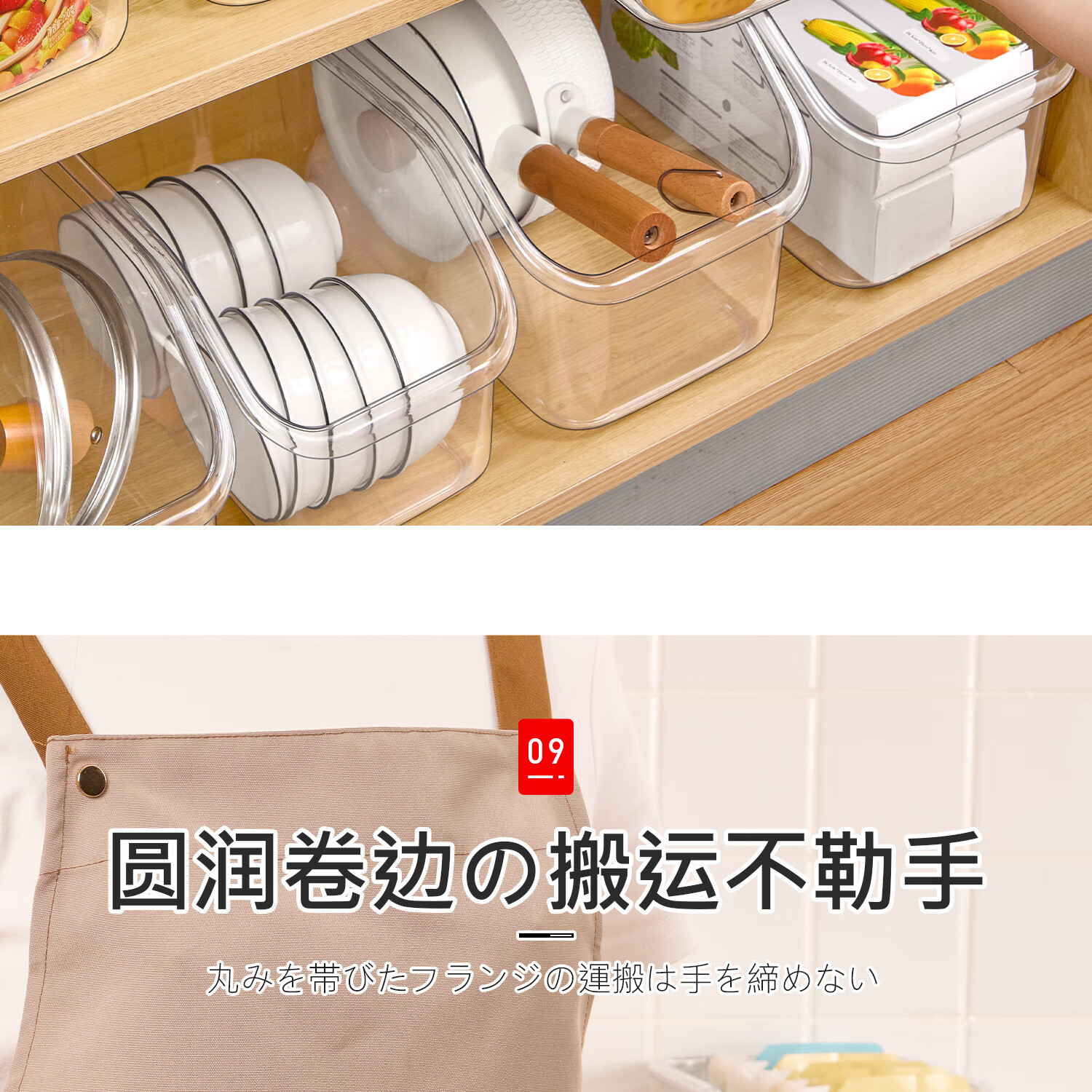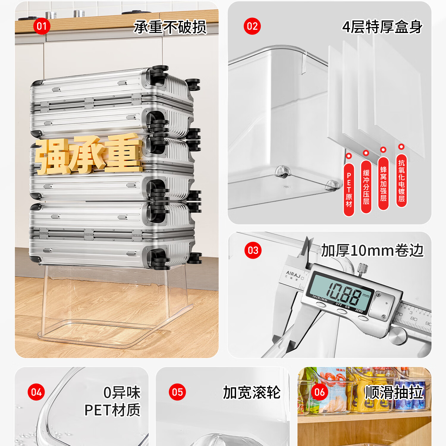 吱凡日本透明收纳盒带轮厨房储物盒加厚橱柜收纳筐杂物置物桌面整理盒 透明-高款大号6个装