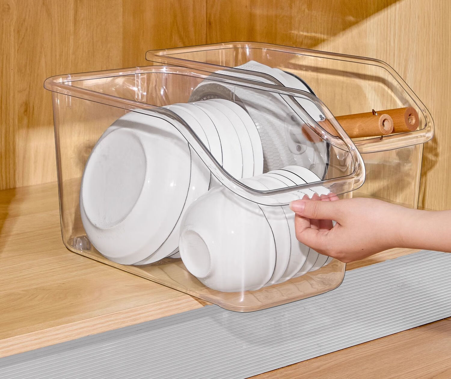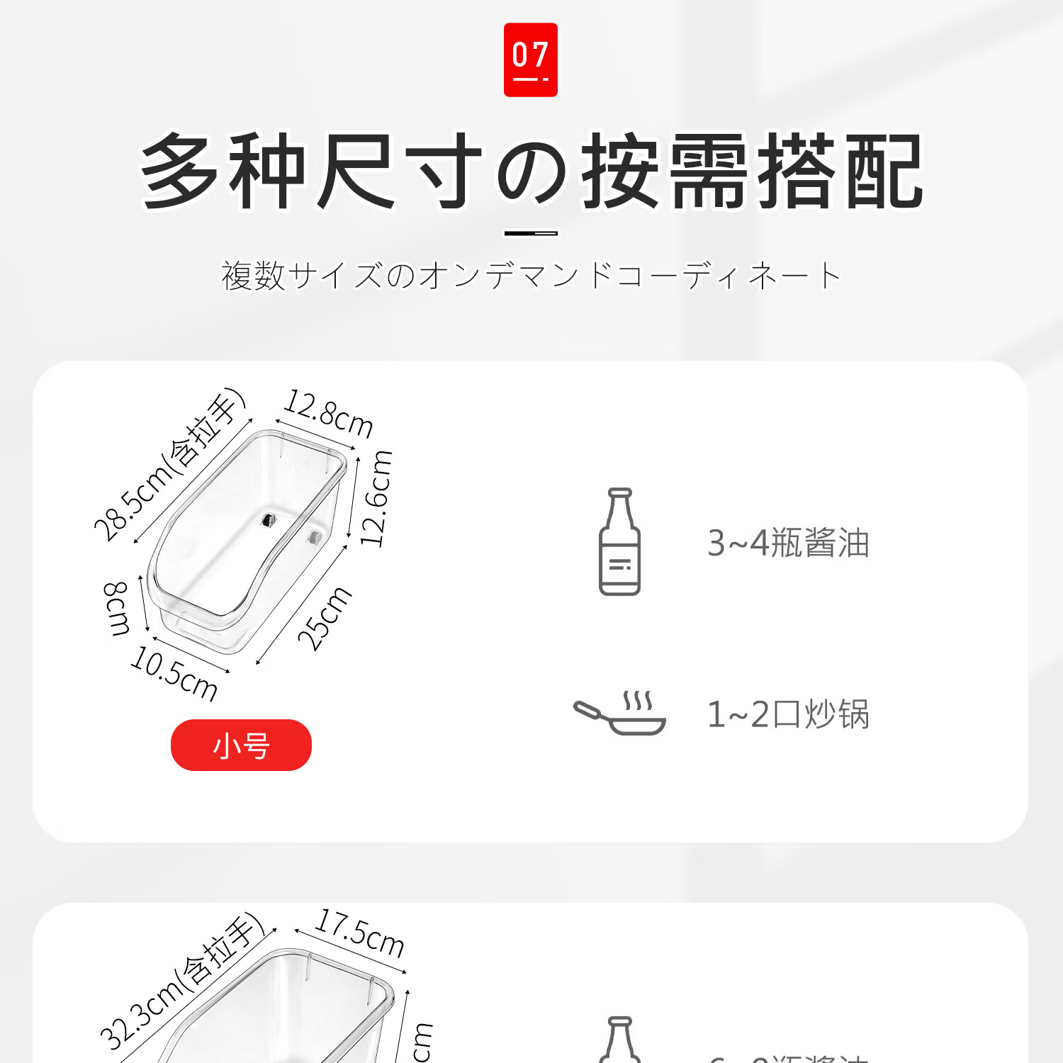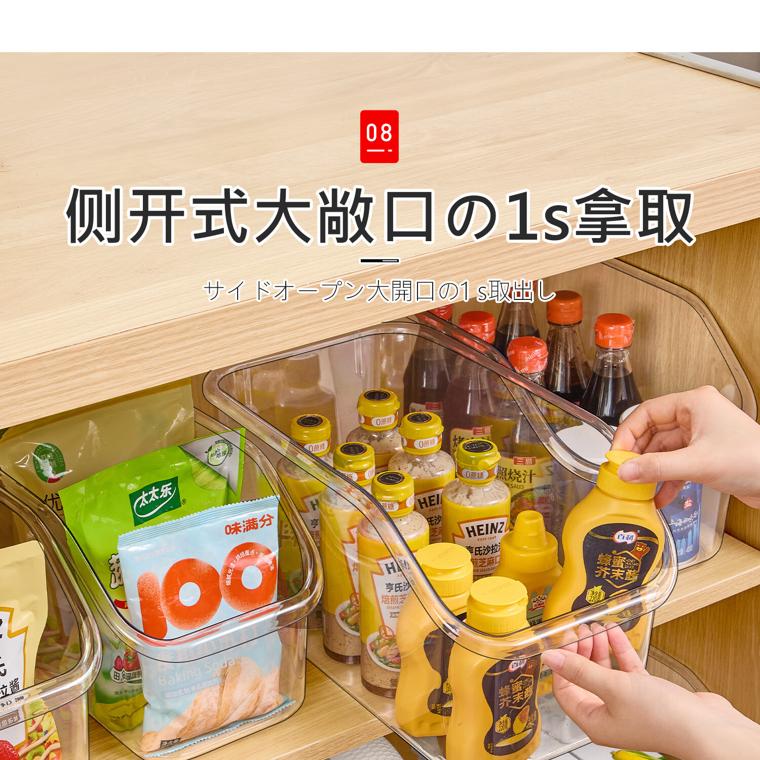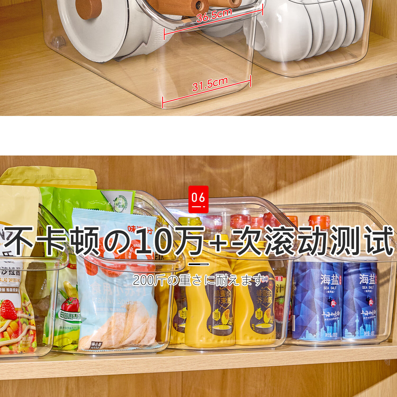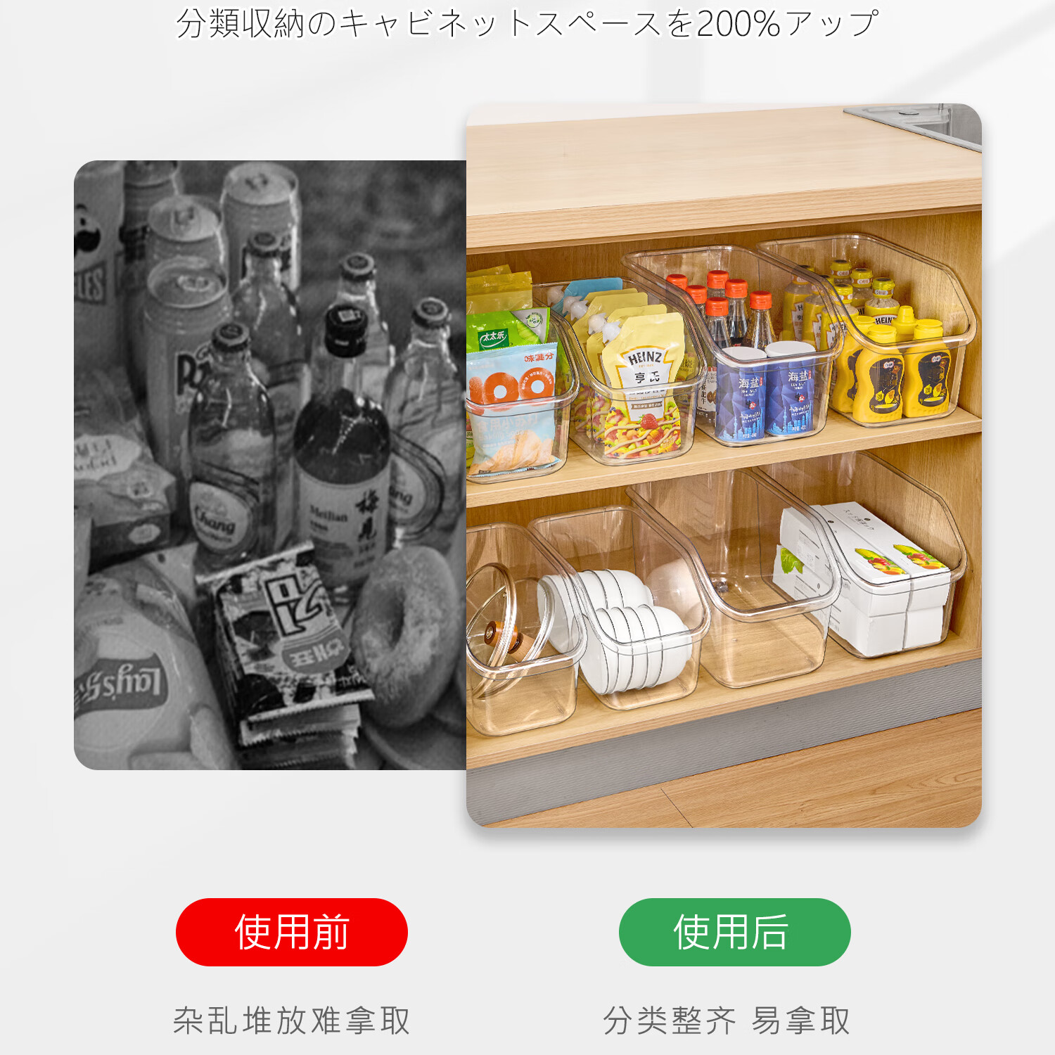 吱凡日本透明收纳盒带轮厨房储物盒加厚橱柜收纳筐杂物置物桌面整理盒 透明-高款大号6个装