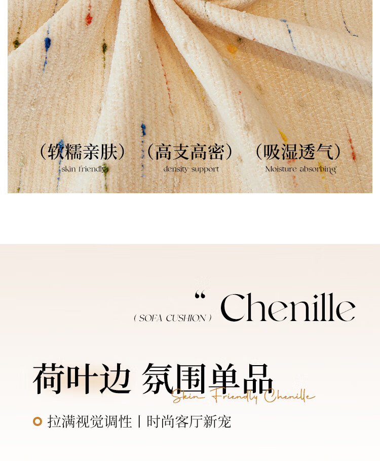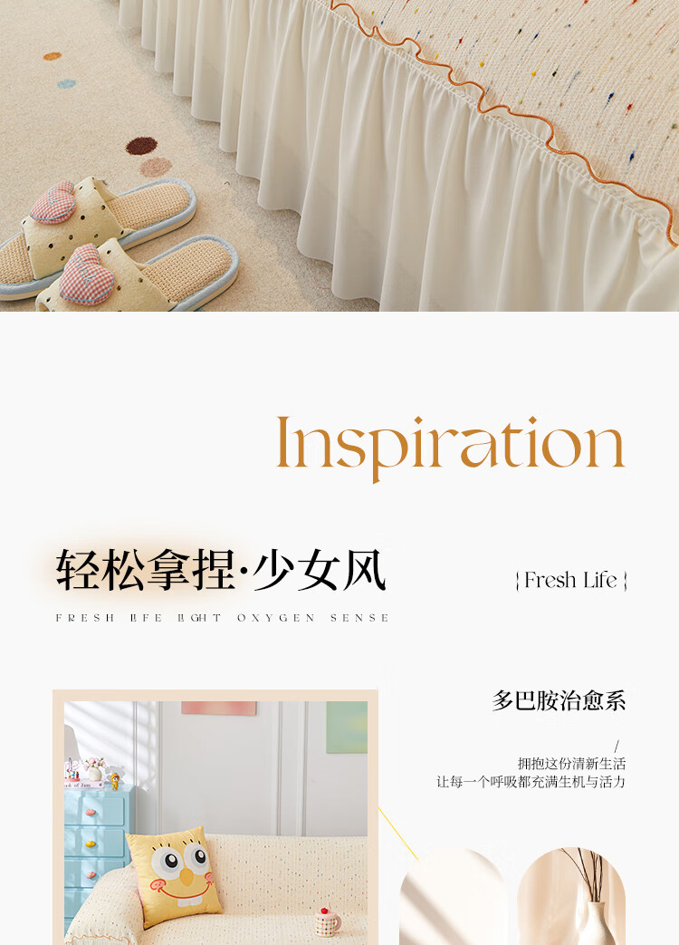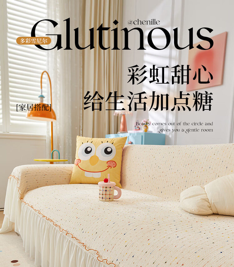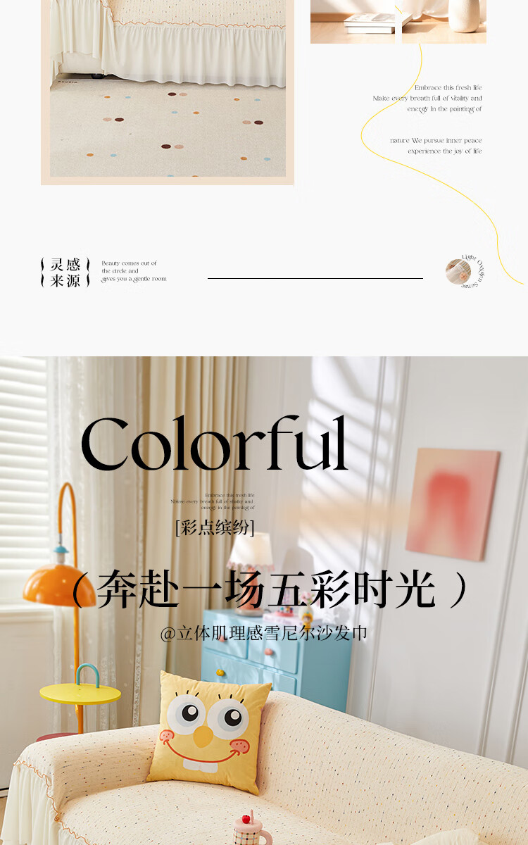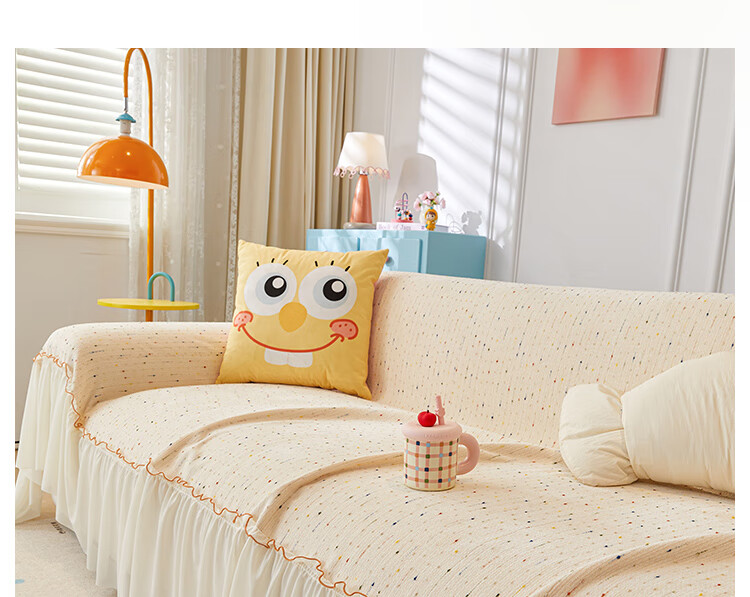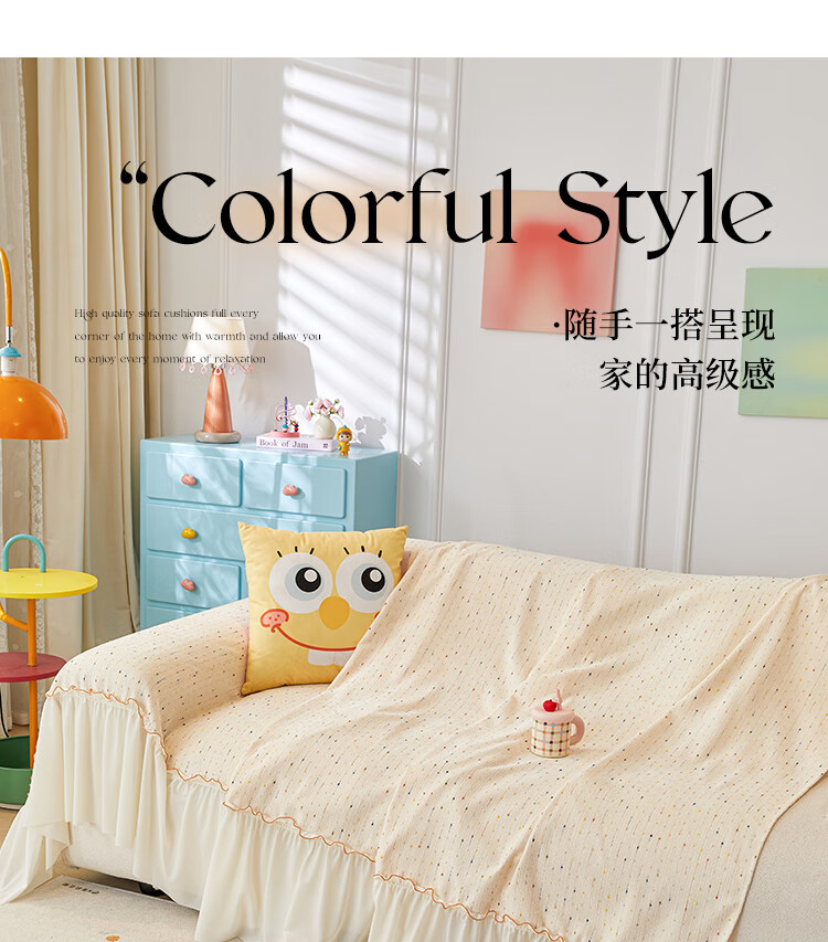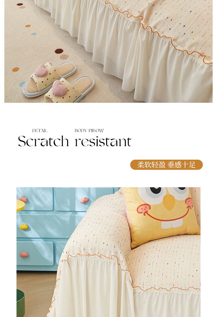 金拾美月多巴胺奶油风沙发盖布巾防猫抓不粘毛2025新款沙发垫套四季通用 彩点缤纷裙边-米白 180cm*130cm (适用于单人位/脚踏)
