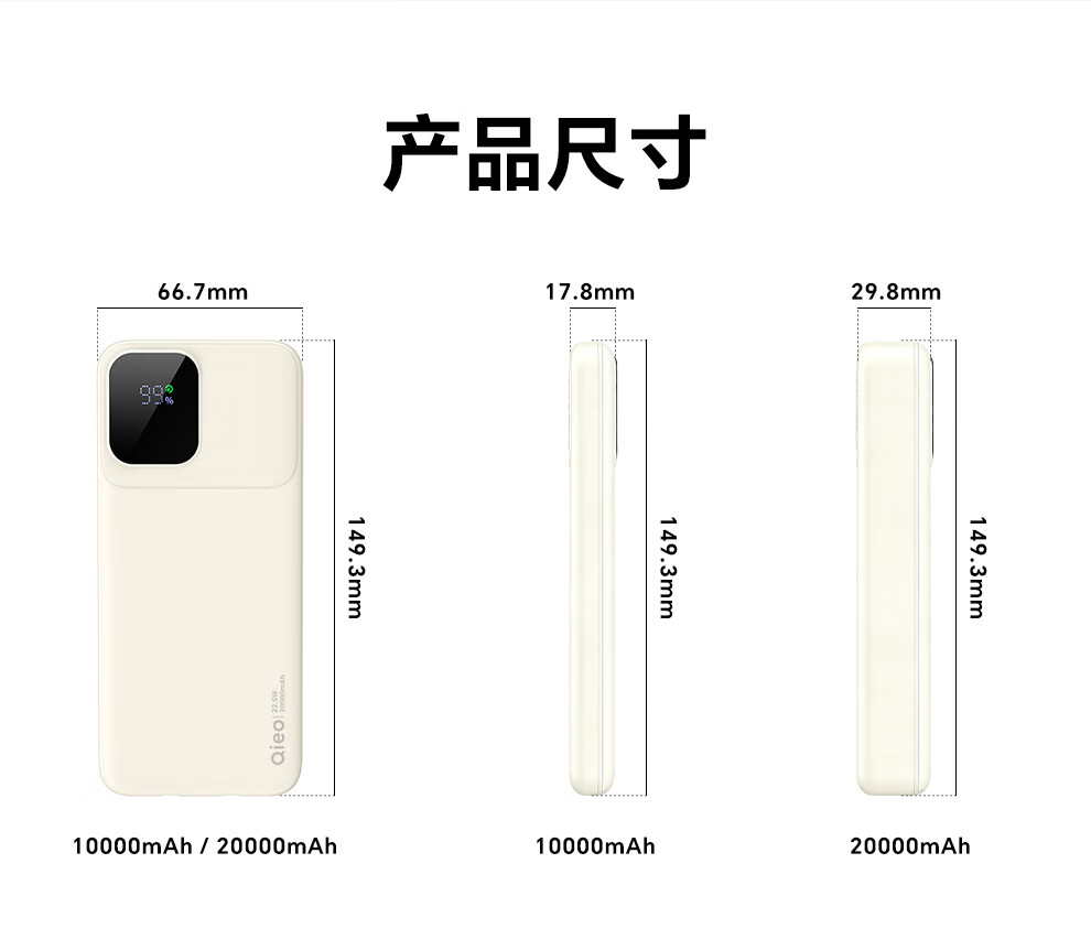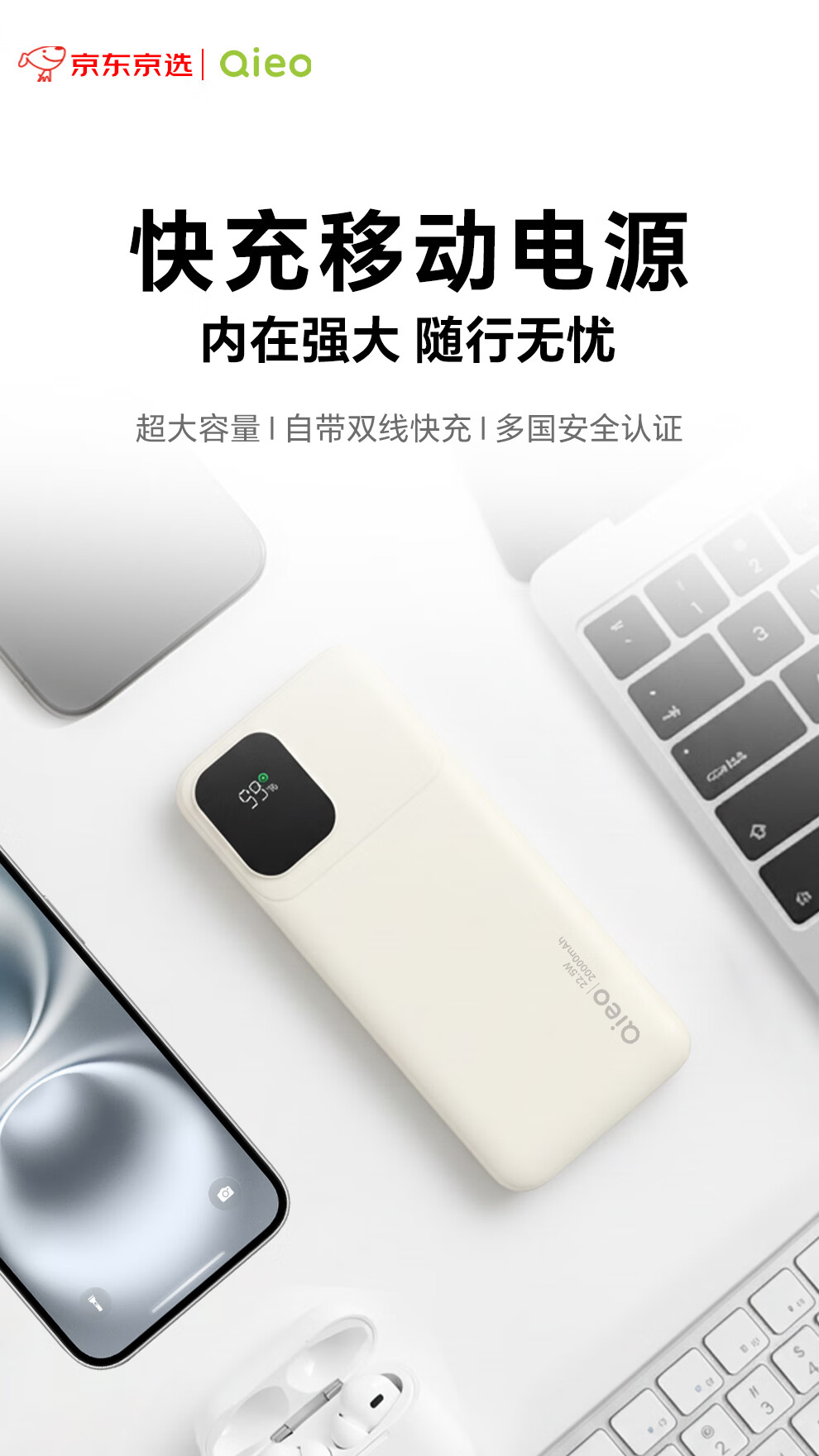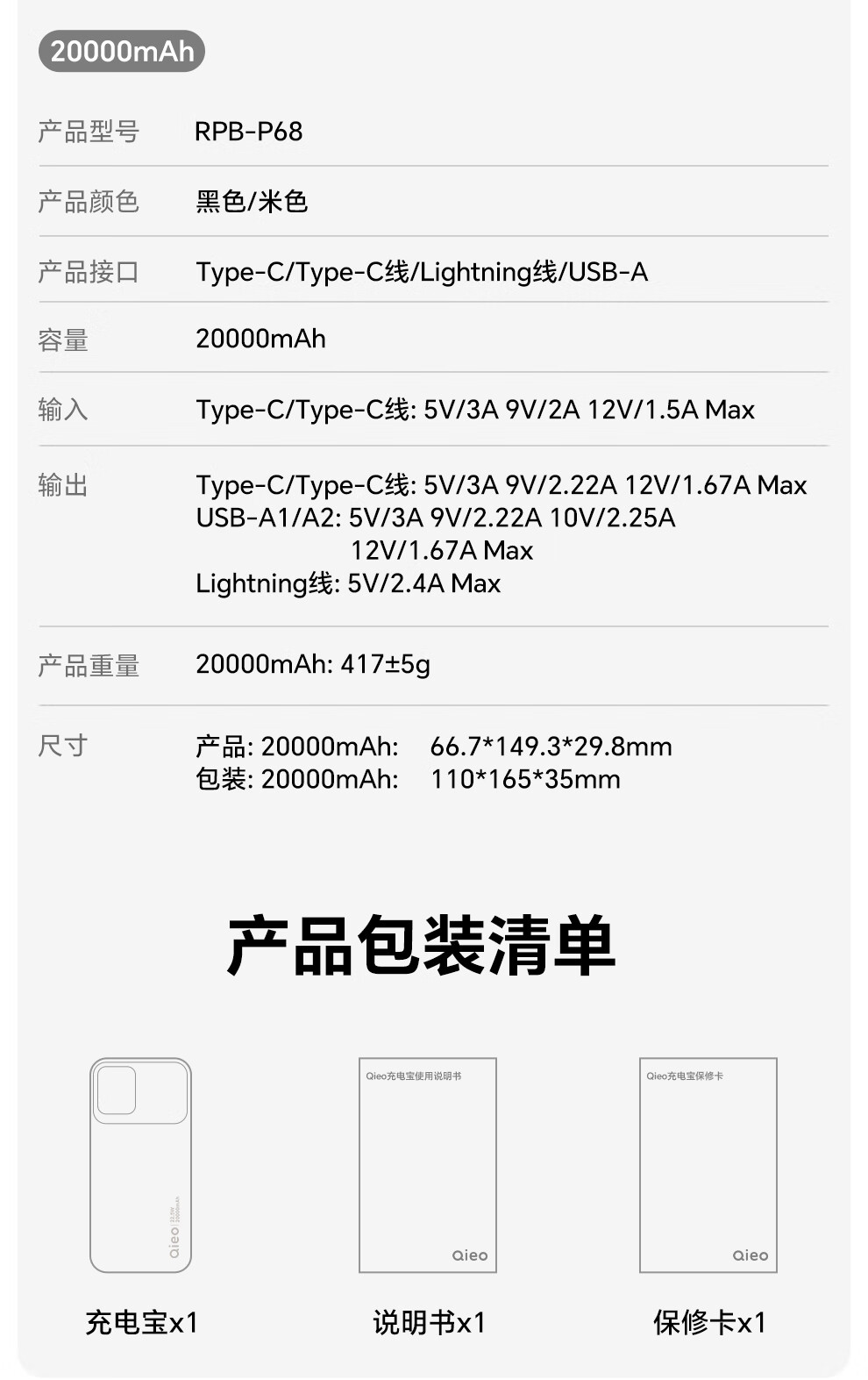 Qieo【新3c认证丨百万热销】充电宝20000毫安 可上飞机自带双线轻薄大容量 超级快充小米华为苹果手机 新3C【2万毫安|超级快充】标准版 【新国家3C认证|最快今日达】
